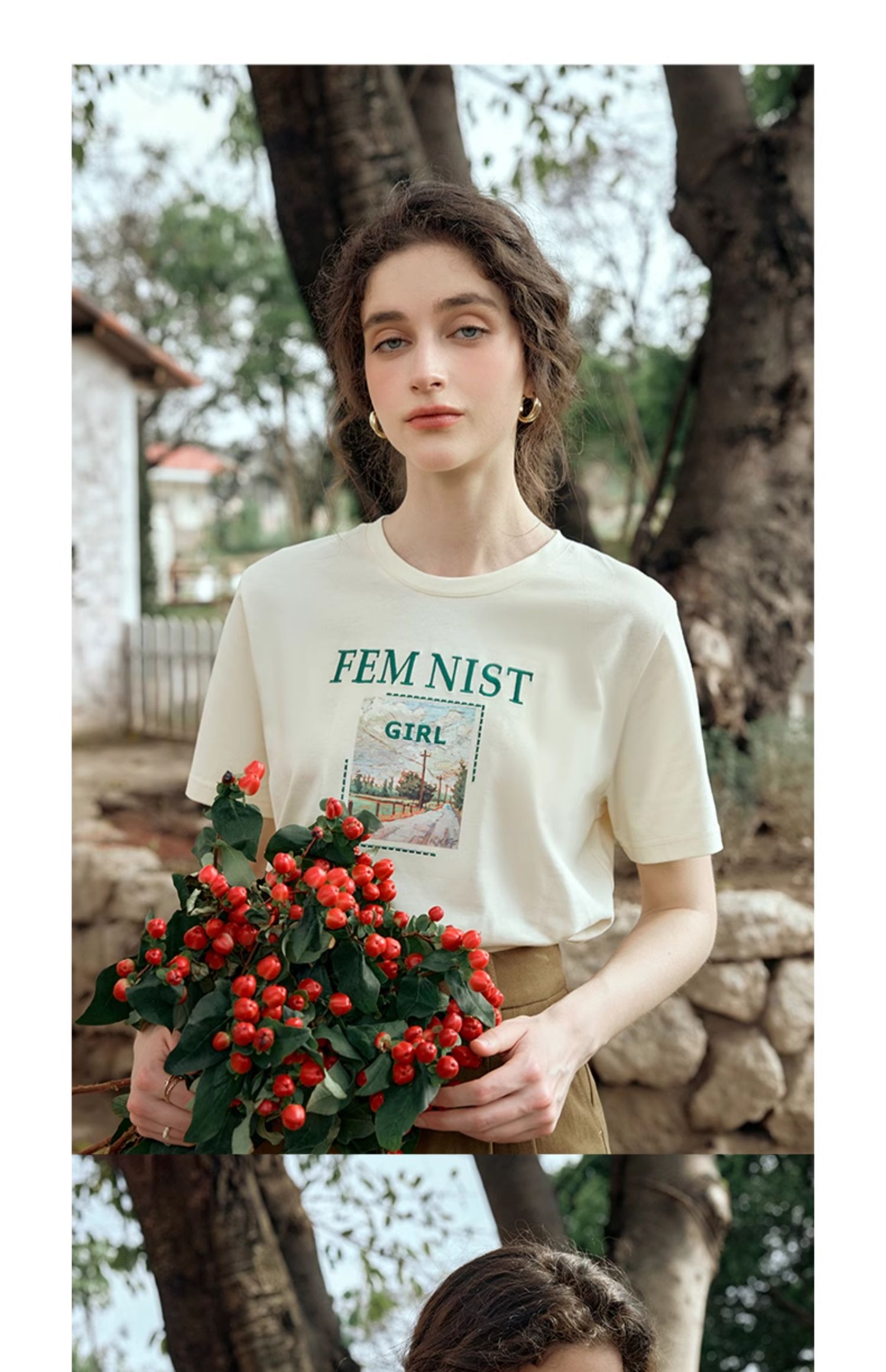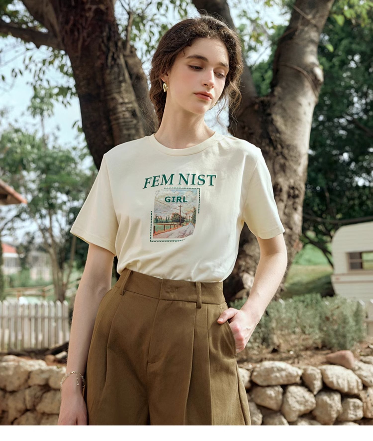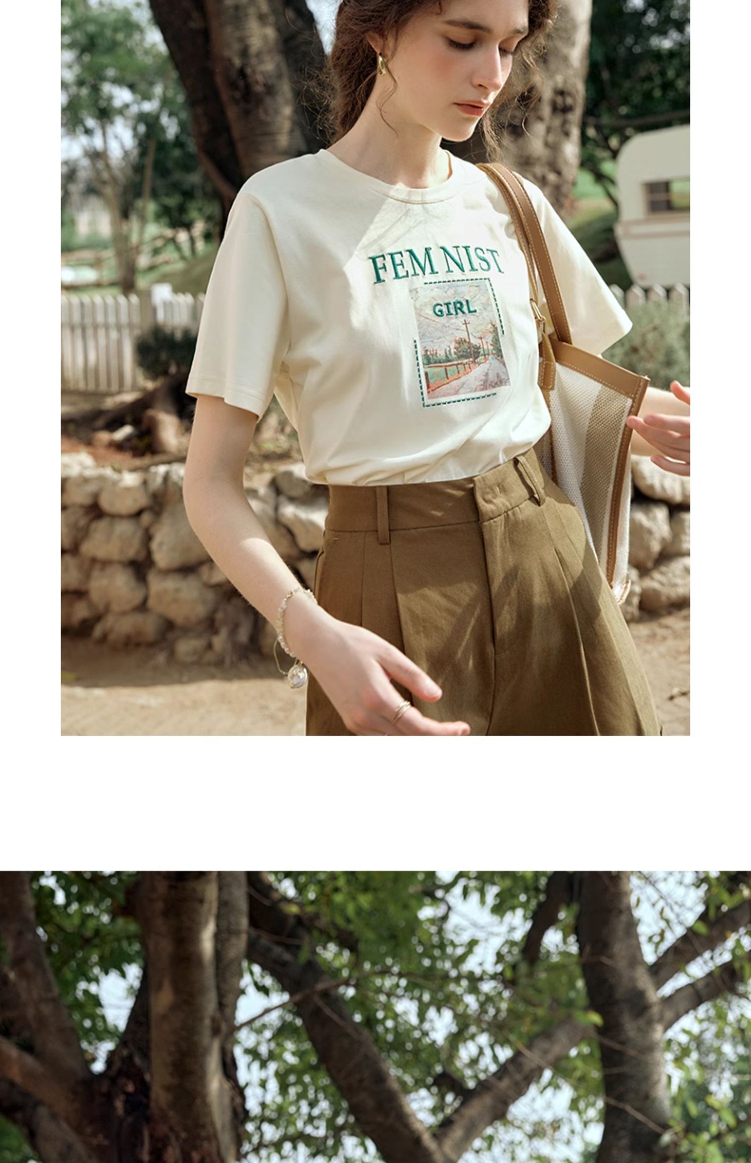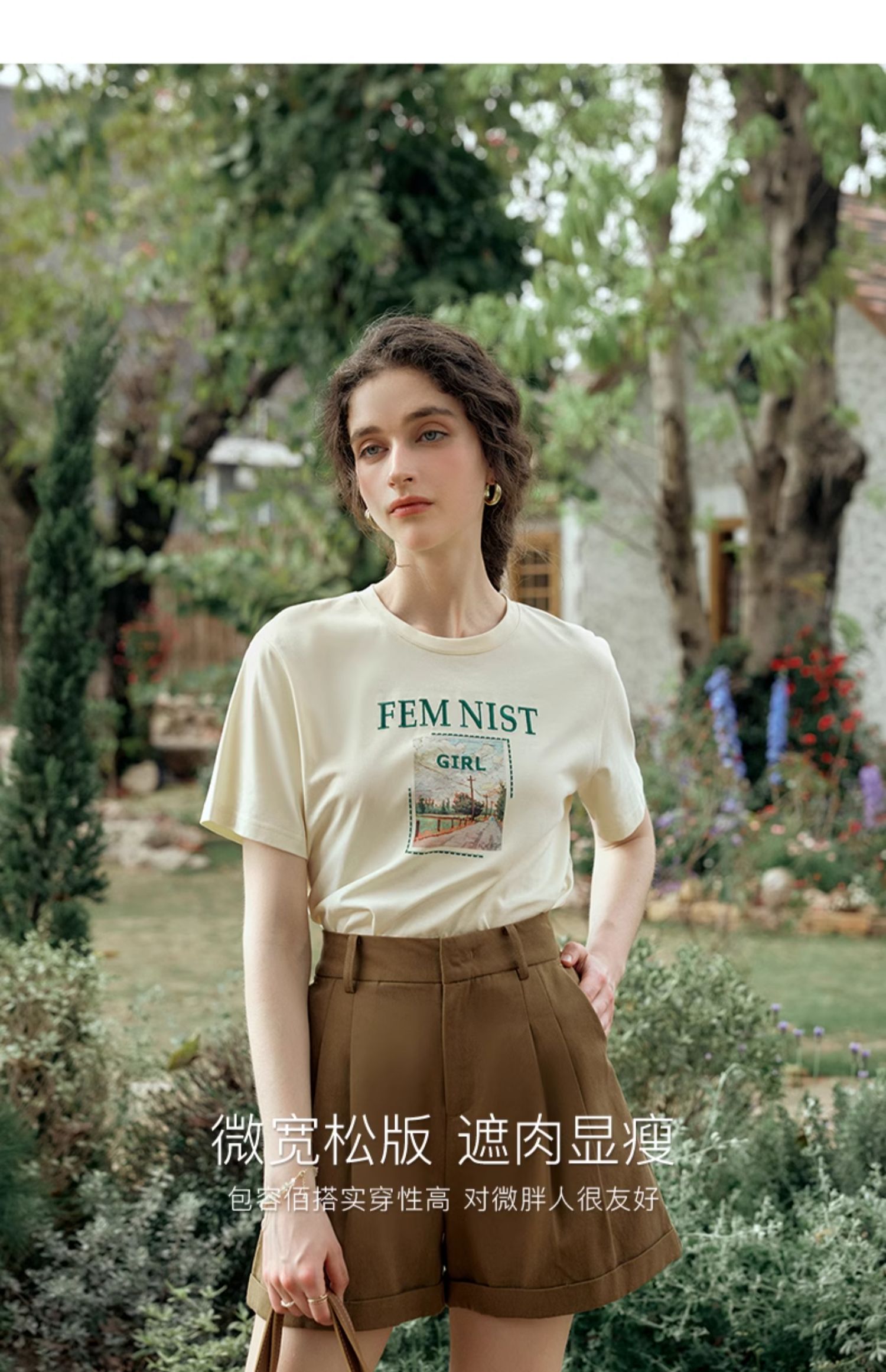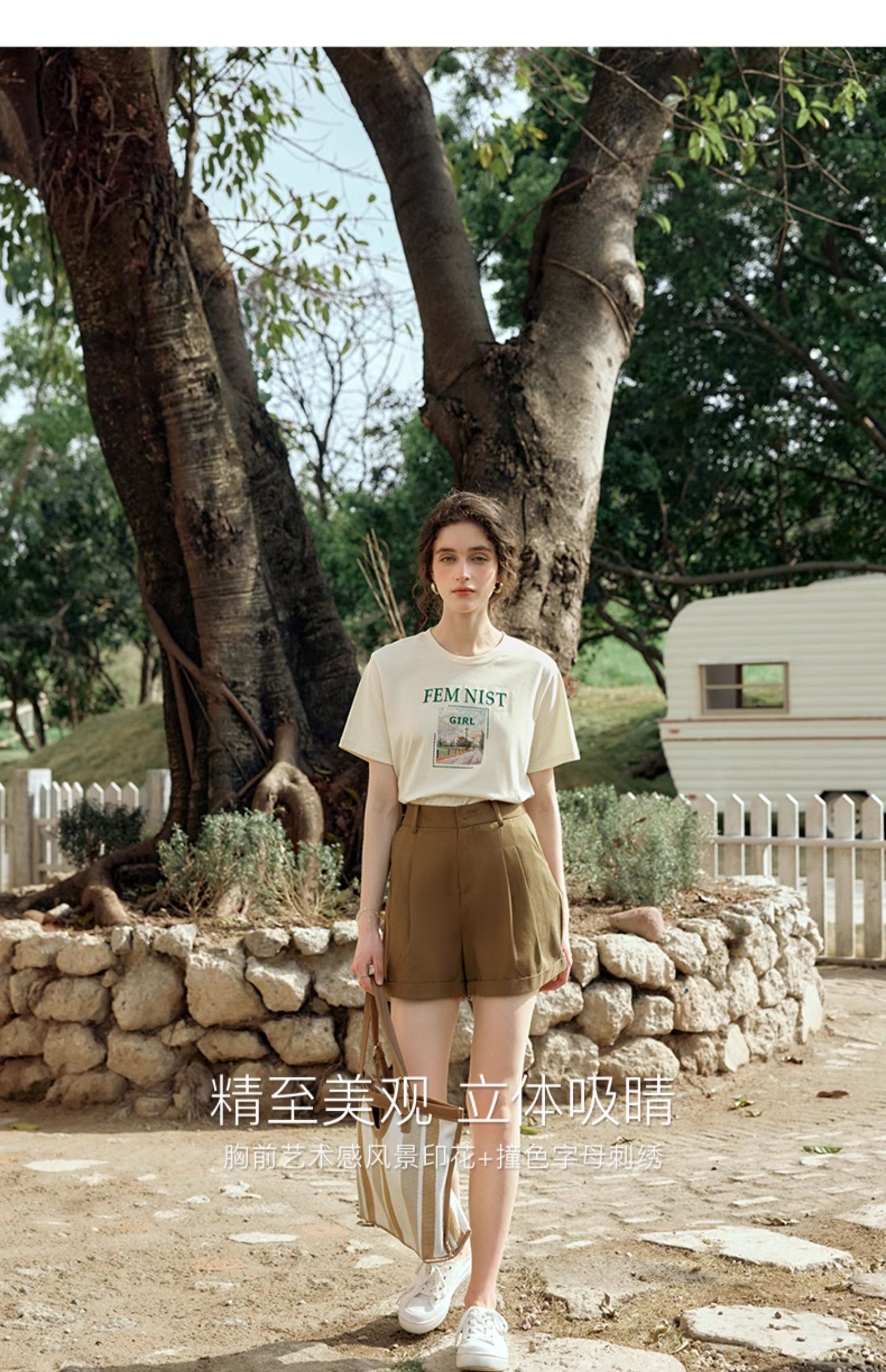 OLrain欧芮儿法式短袖T恤女夏季2024年新款宽松圆领刺绣趣味短袖
