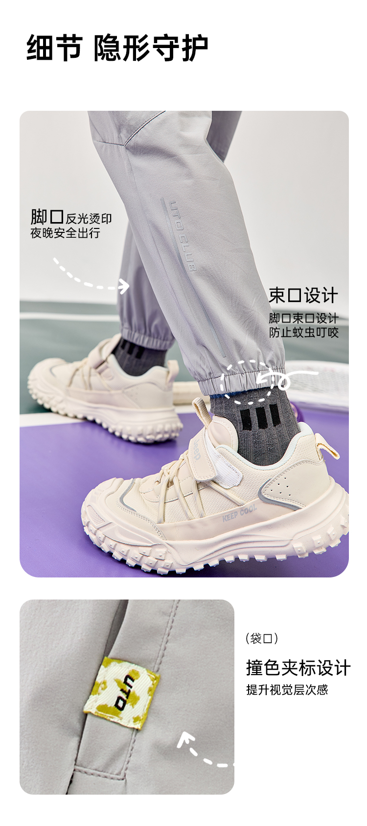 UTO儿童运动速干防蚊裤