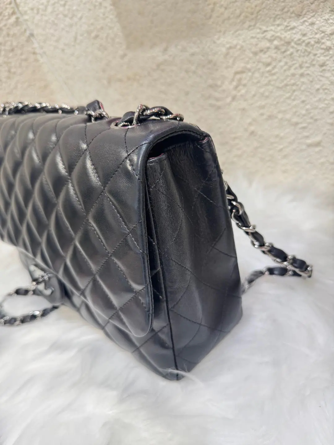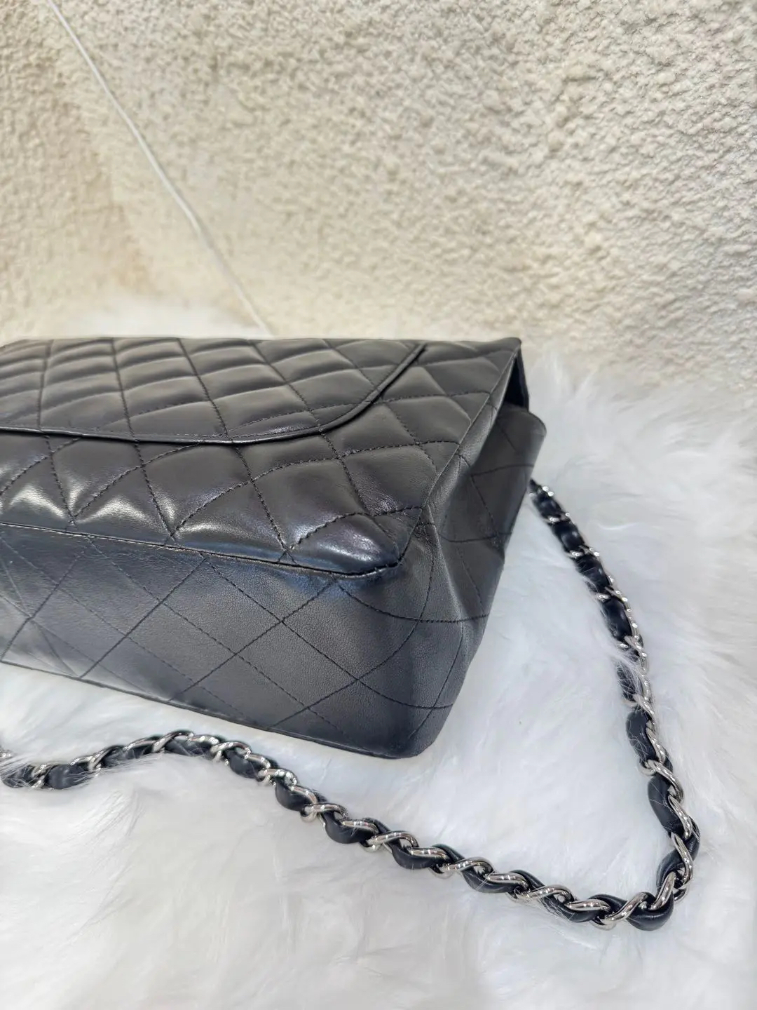 【商品详情】正品二手 Chanel cf jumbo 黑银 羊皮 斜挎包 🐚95新 30x20 镭射10开。边角轻微使用磨擦感。整体保存很好 性价比巨高