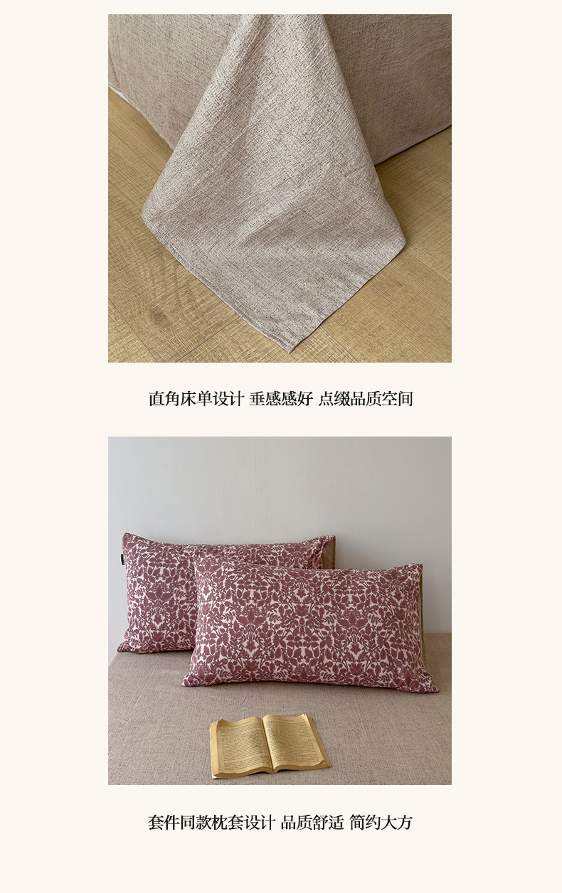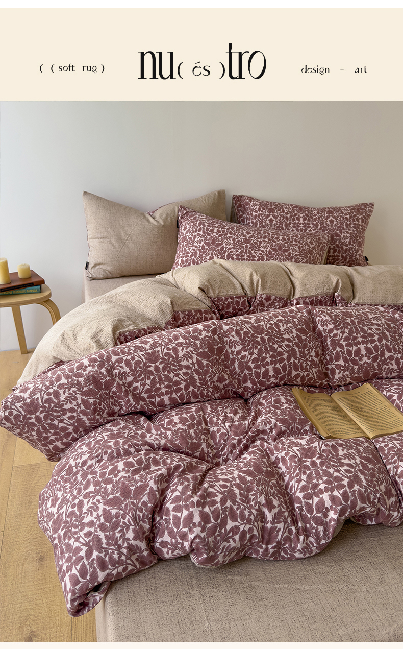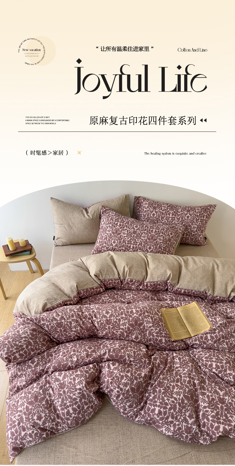 【品牌直发】加倍生活A类加厚高克重原麻皱皱纱印花四件套 新品复古风套件