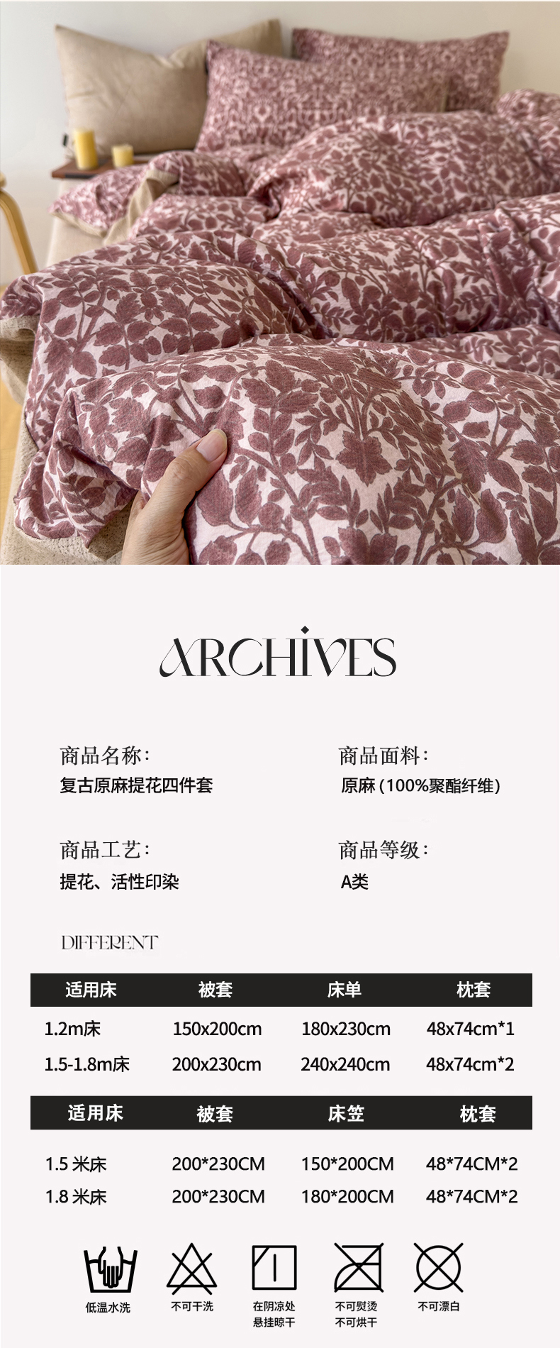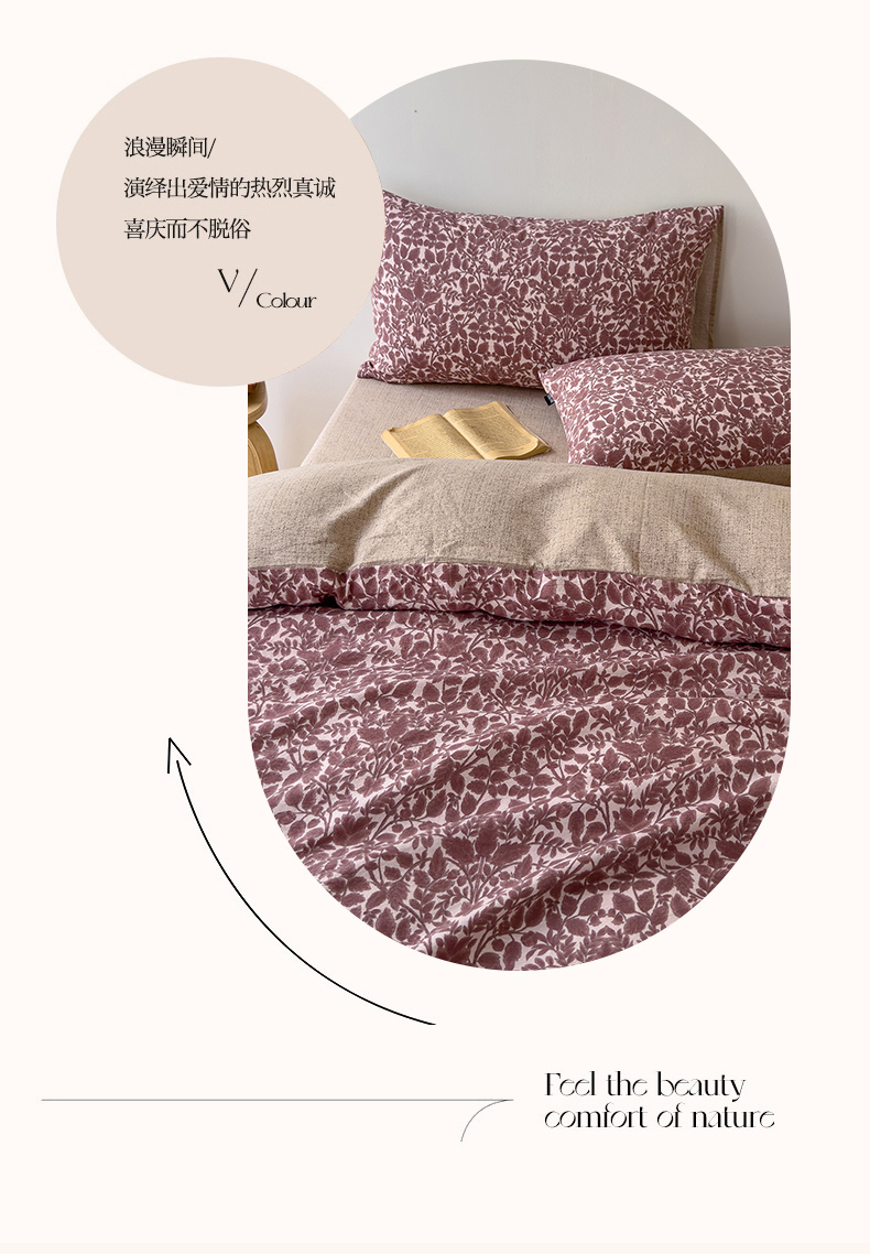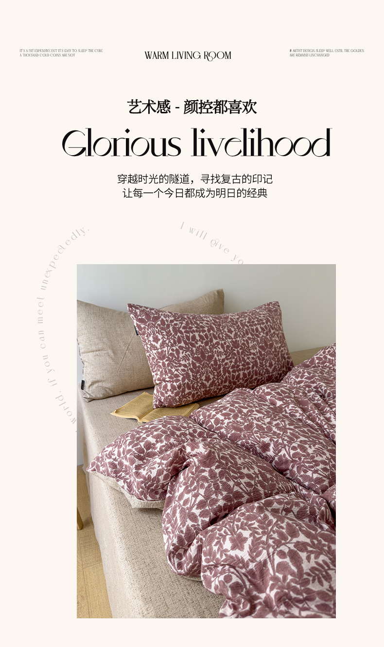【品牌直发】加倍生活A类加厚高克重原麻皱皱纱印花四件套 新品复古风套件