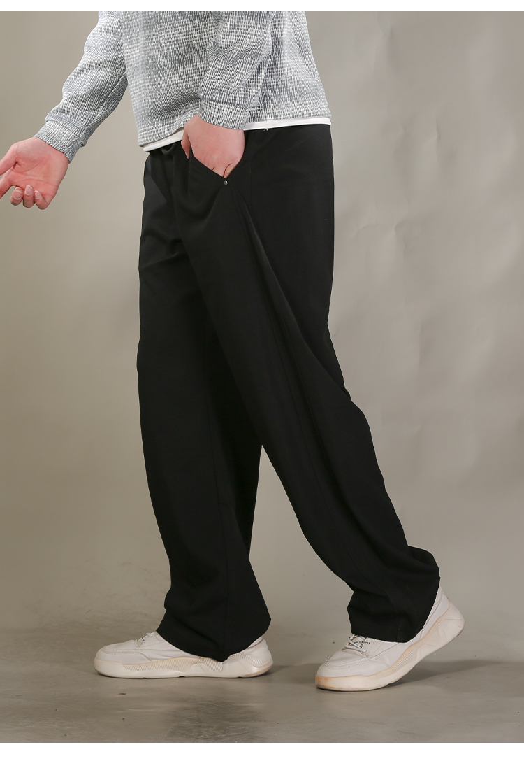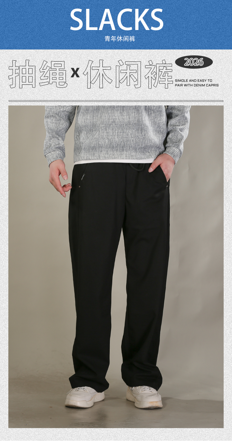 DRONKOO 2026 抽绳松紧腰口袋同色钉扣两侧压线薄卫裤长裤