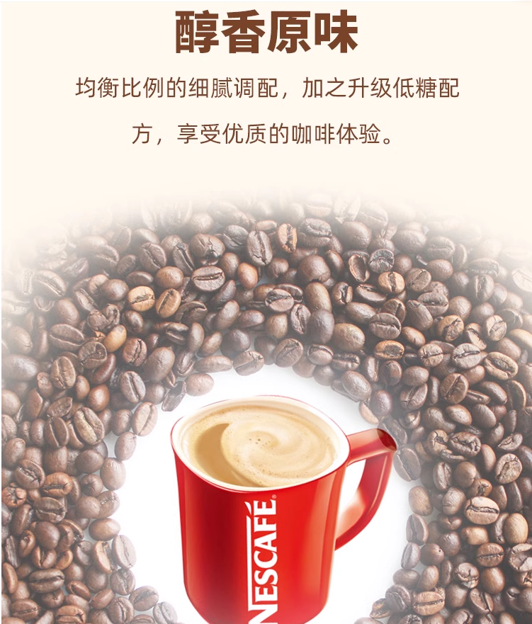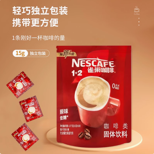 雀巢咖啡 1+2 醇香原味 低糖三合一 固体饮料 方包速溶咖啡