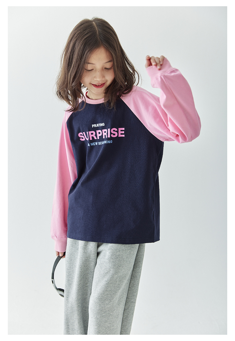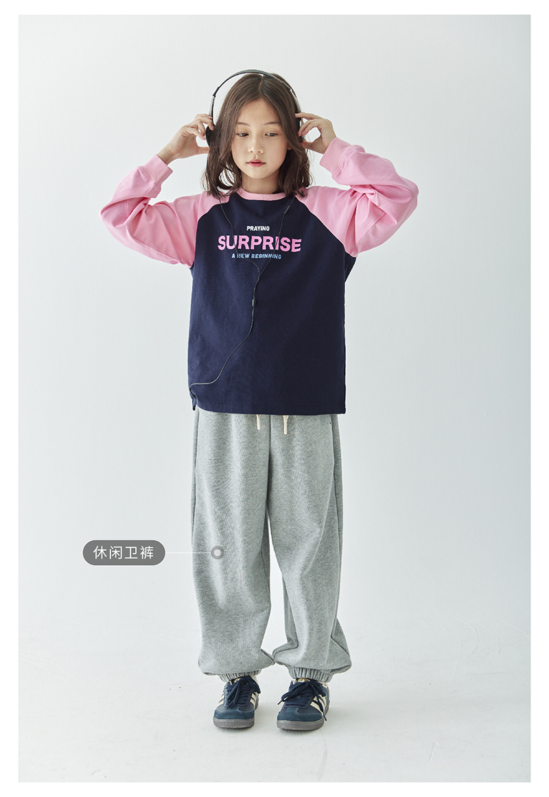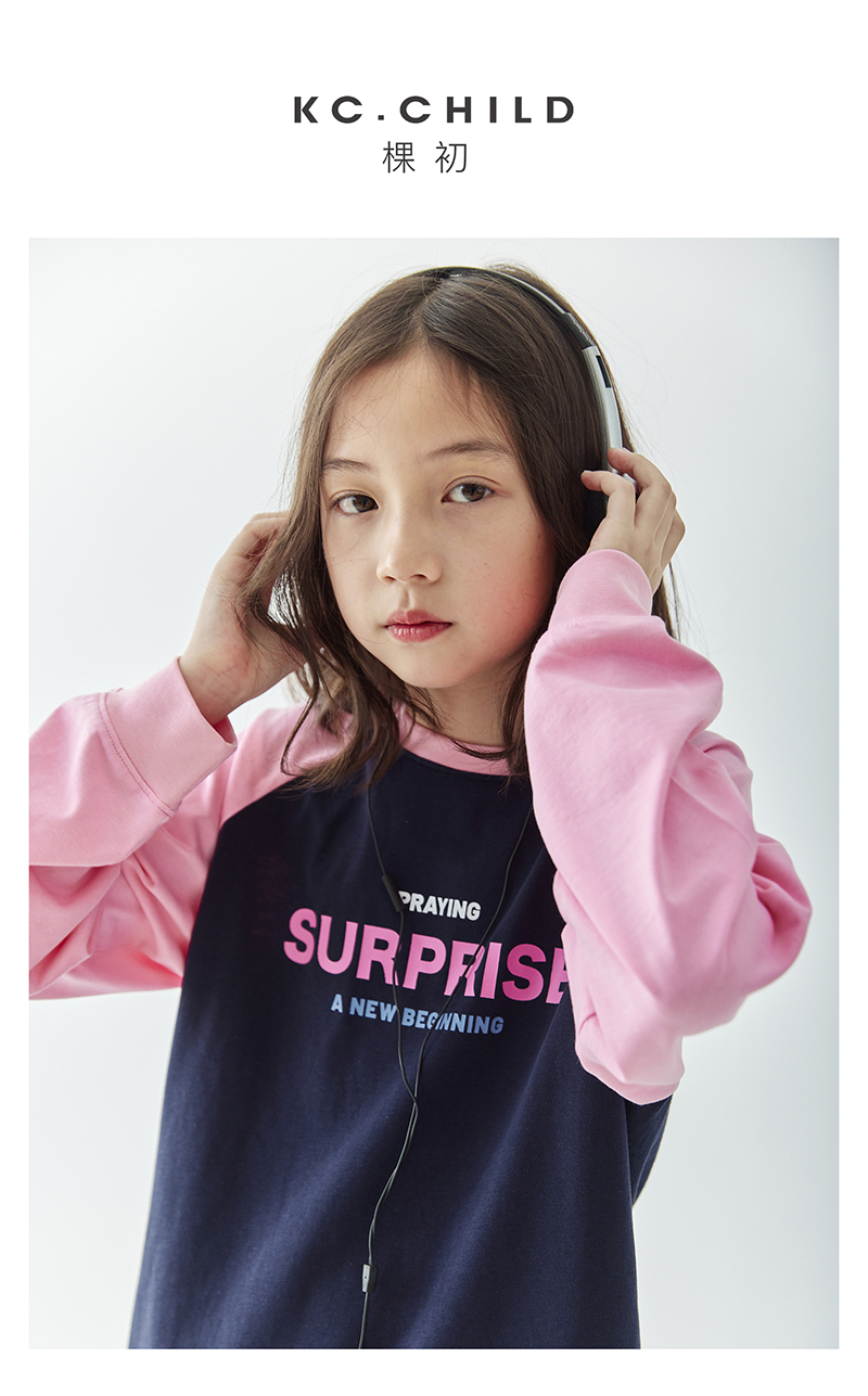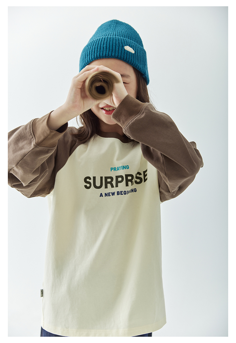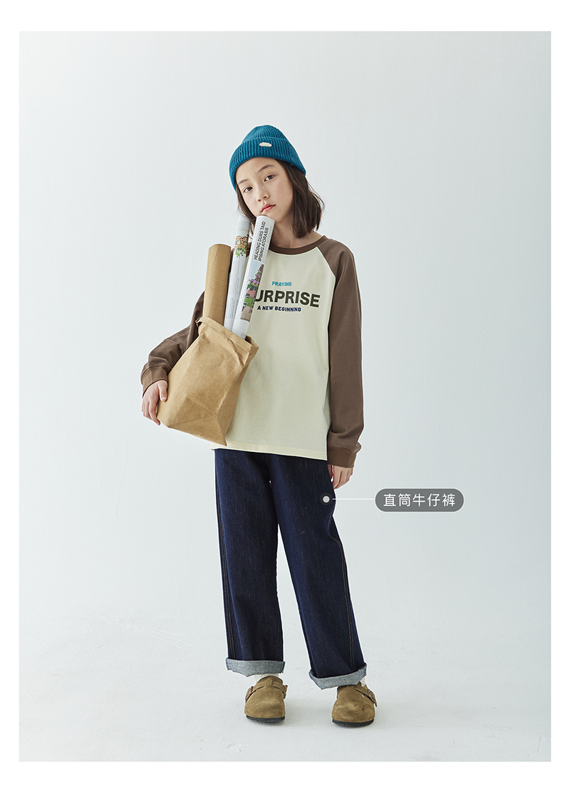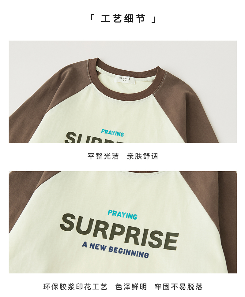 棵初新款秋季上衣复古美式学院风儿童俏皮元气撞色插肩长袖T恤
