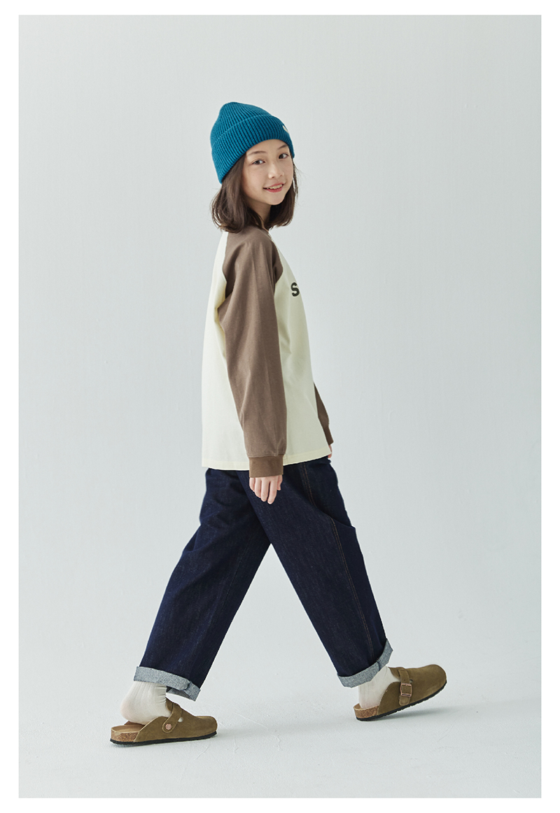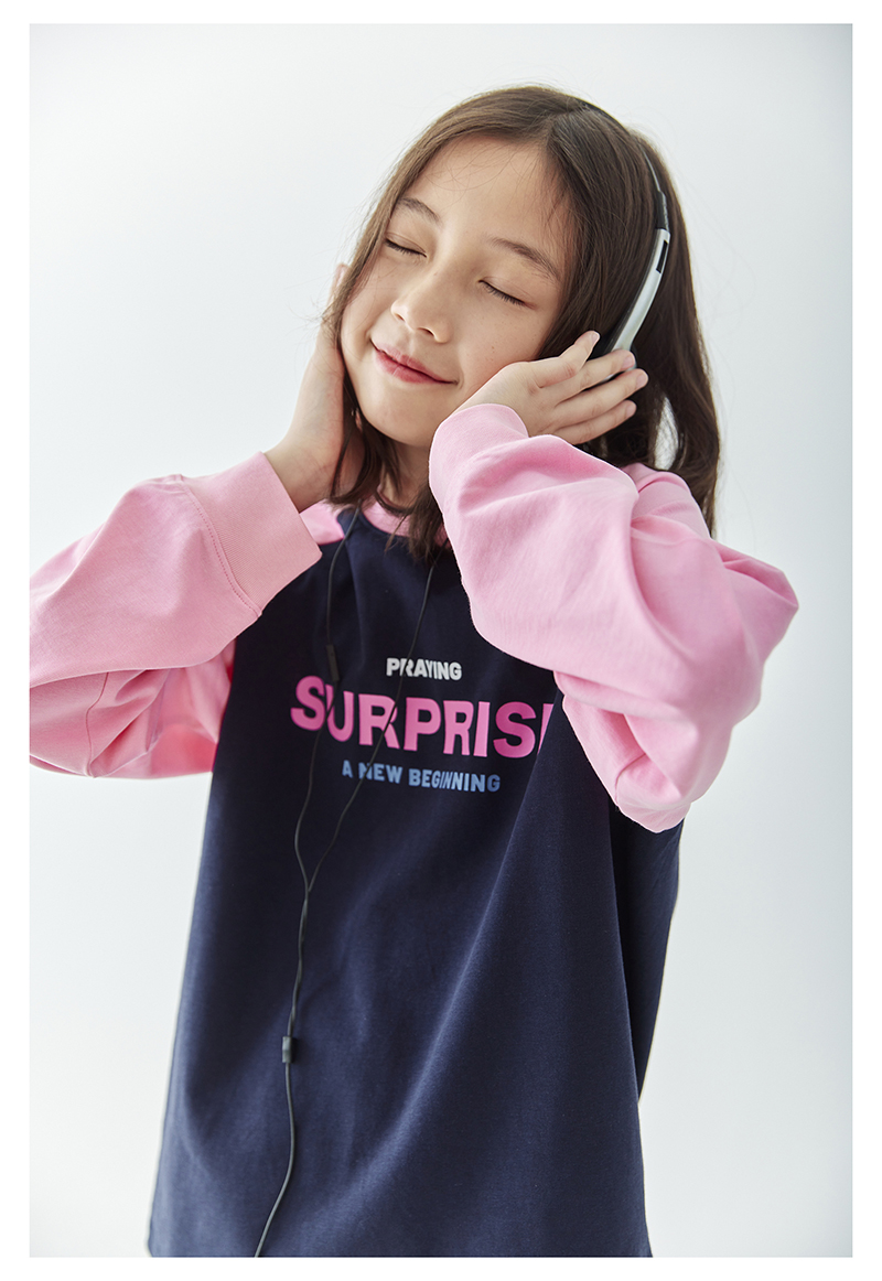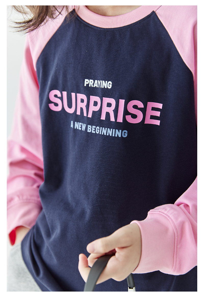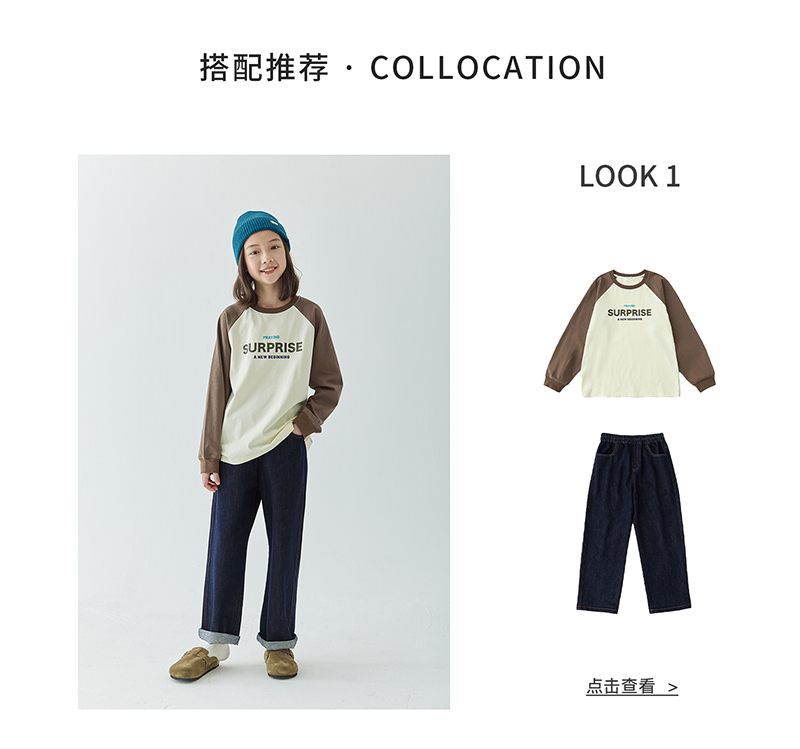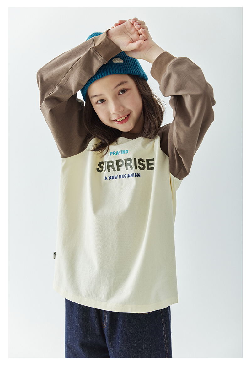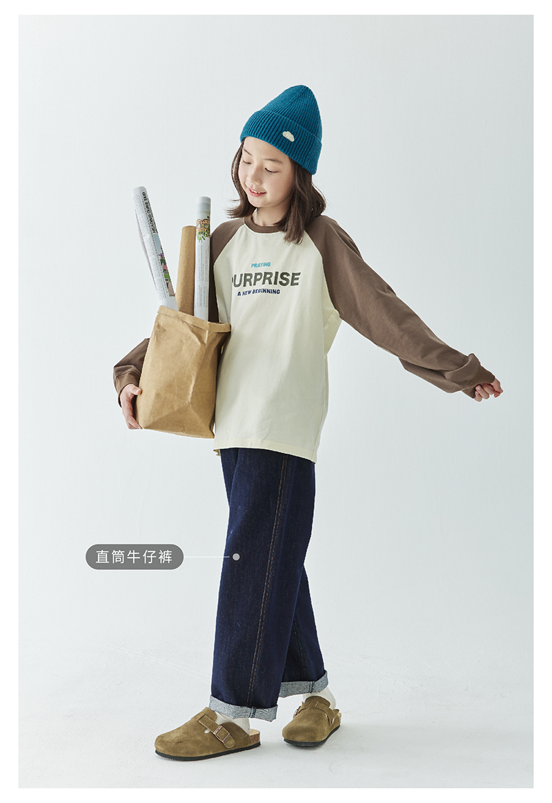 棵初新款秋季上衣复古美式学院风儿童俏皮元气撞色插肩长袖T恤