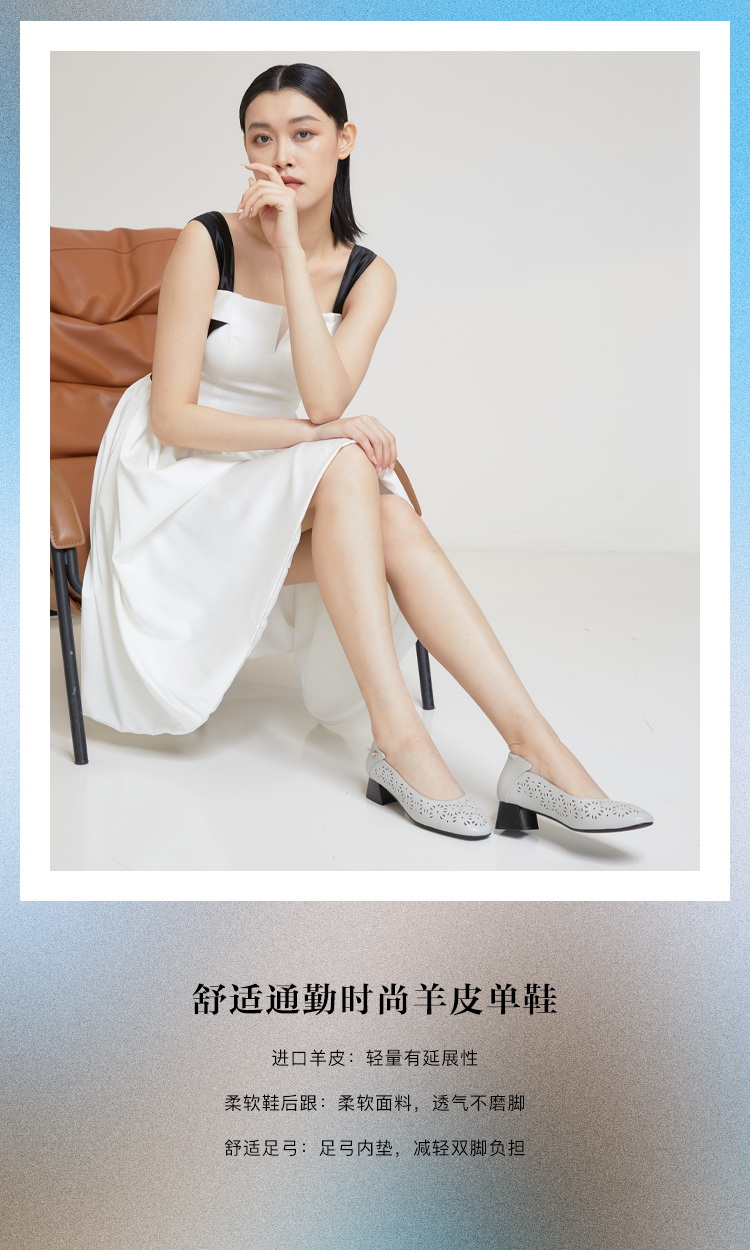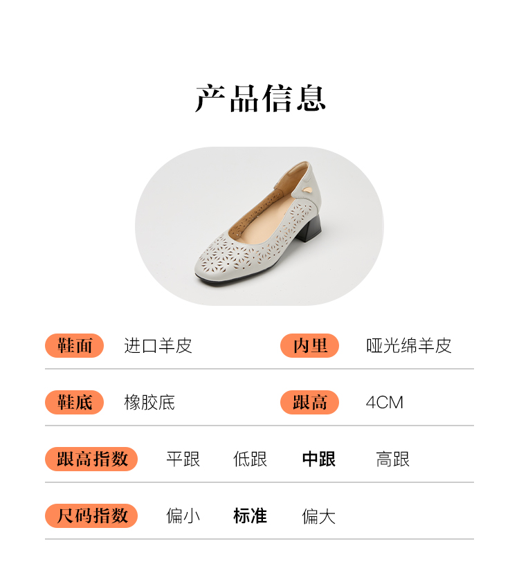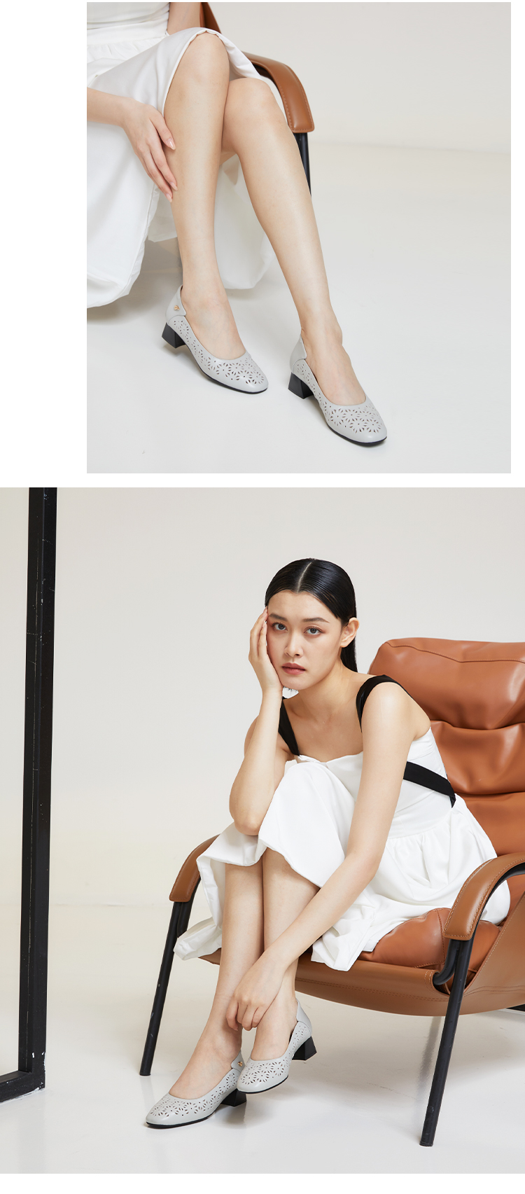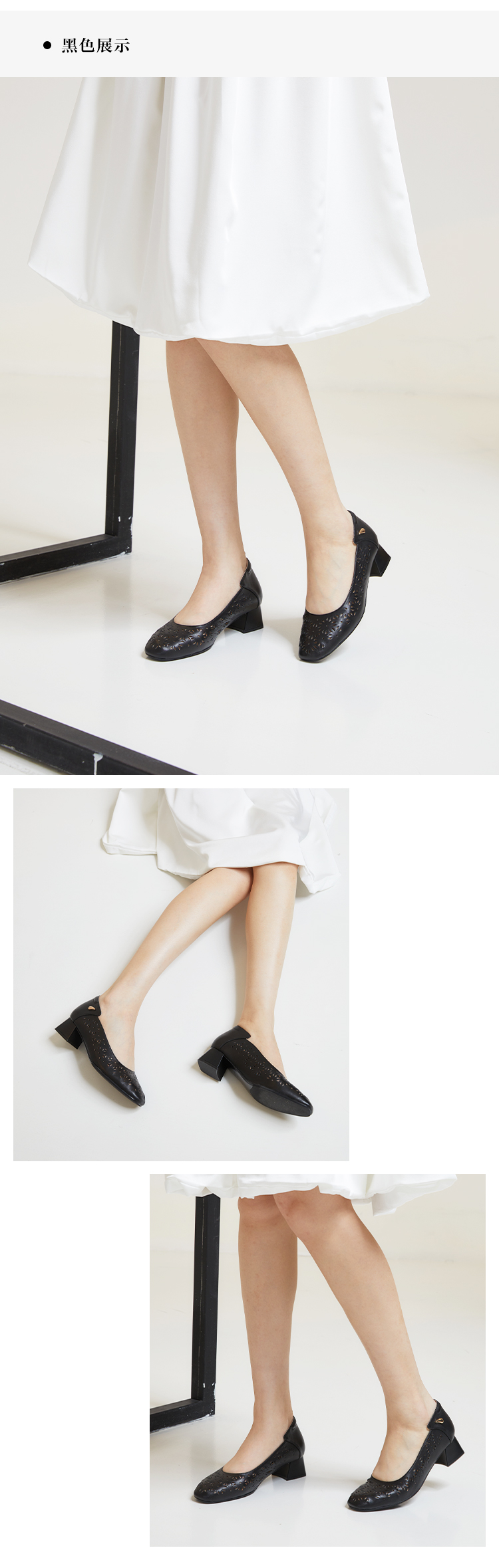 ARCHCONTACT安启美奈花纹镂空粗跟单鞋【52737】