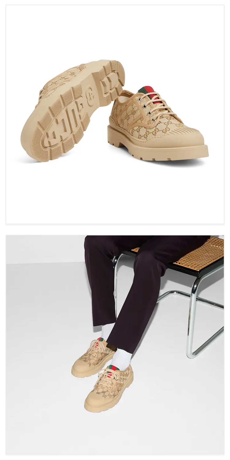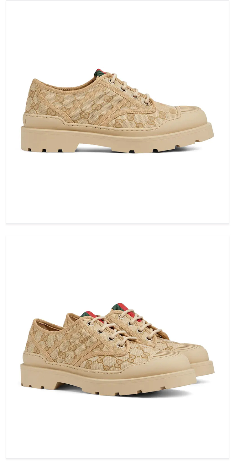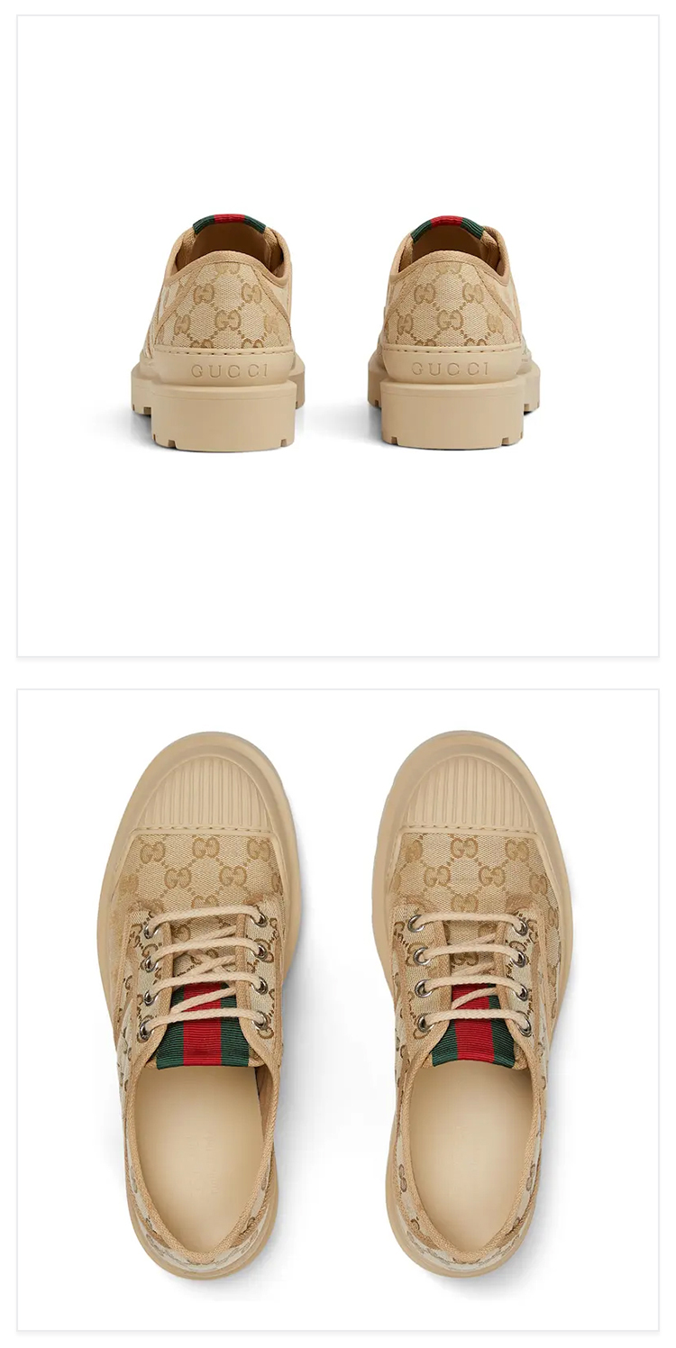 GUCCI 古驰 男士 GG 帆布织带条纹系带休闲鞋 浅棕色 812195 FAD2I 9641