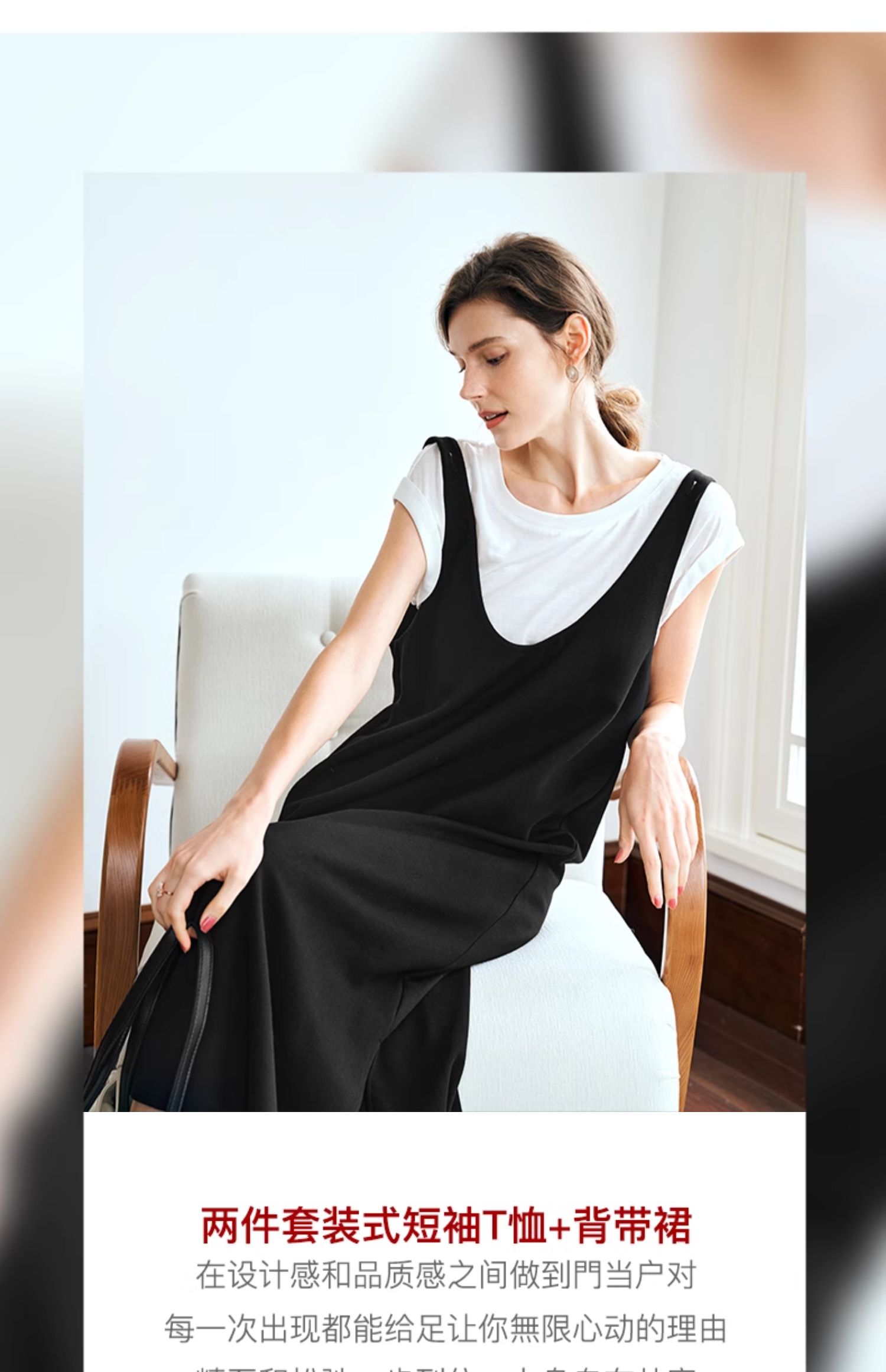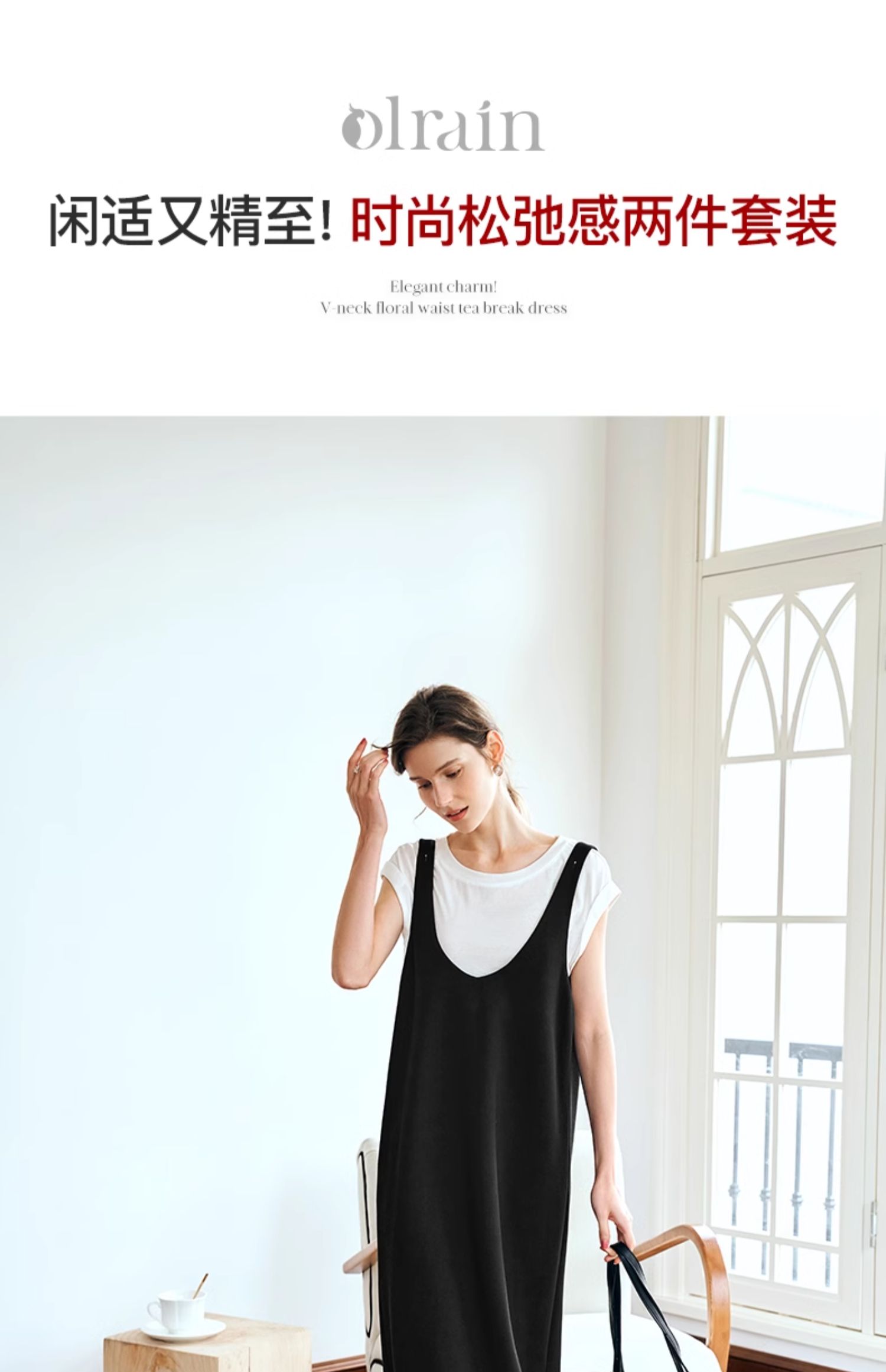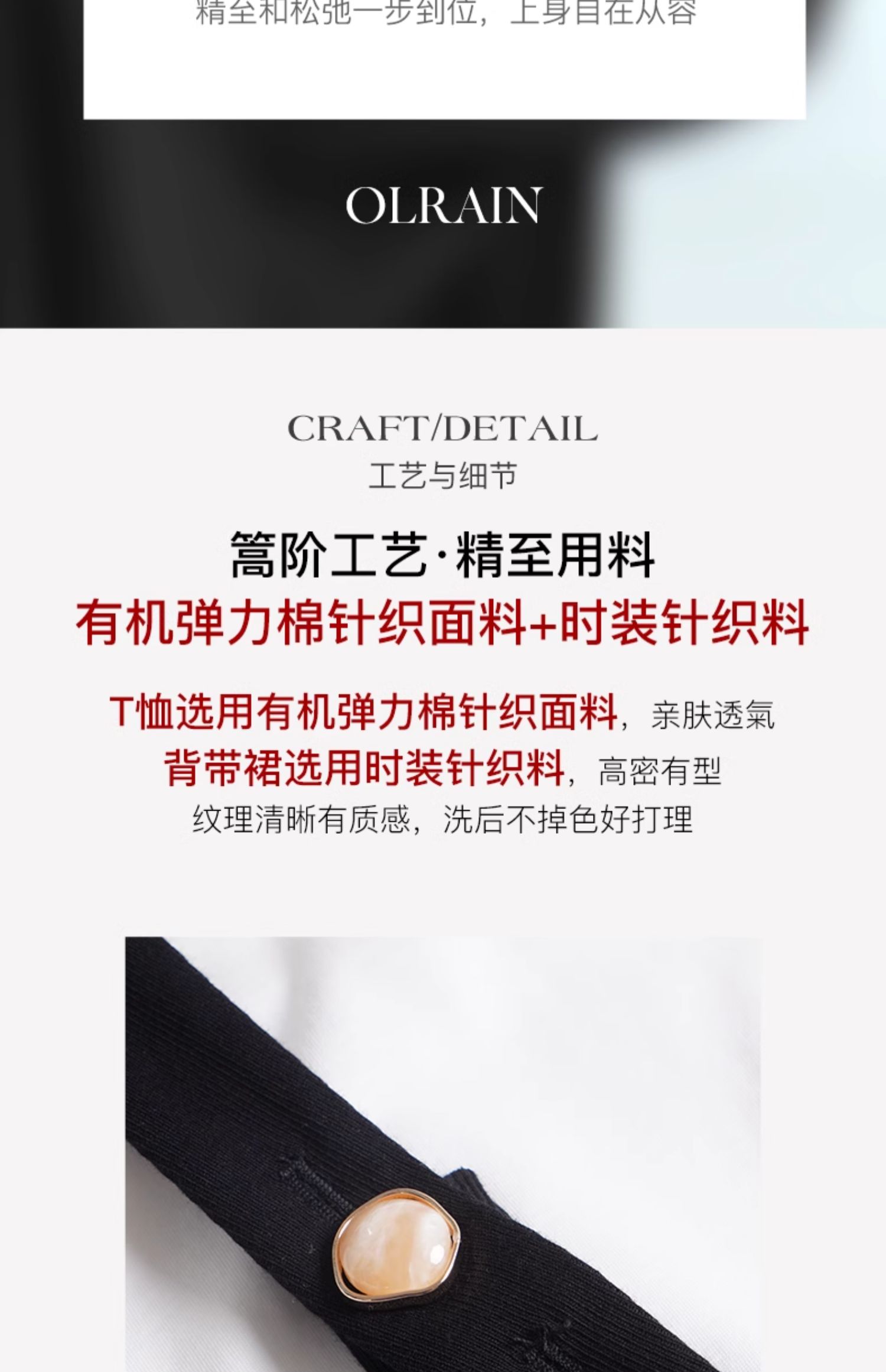 OLrain欧芮儿休闲时尚套装女夏2024新款松弛感白T恤背带裙两件套