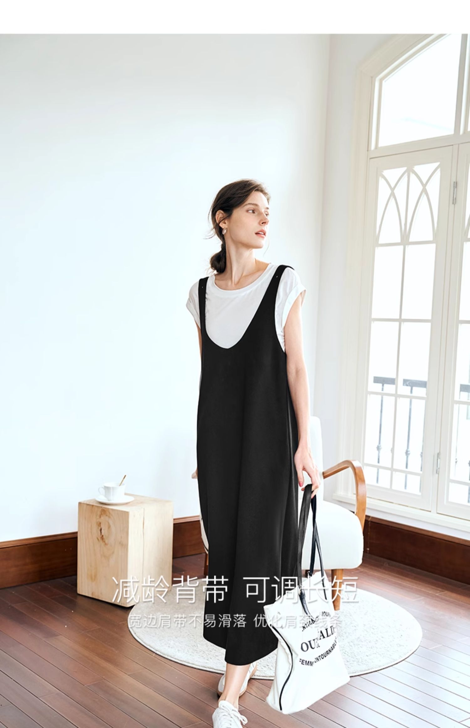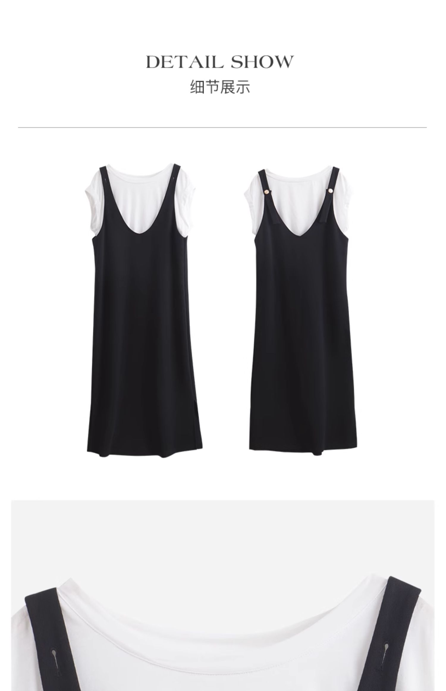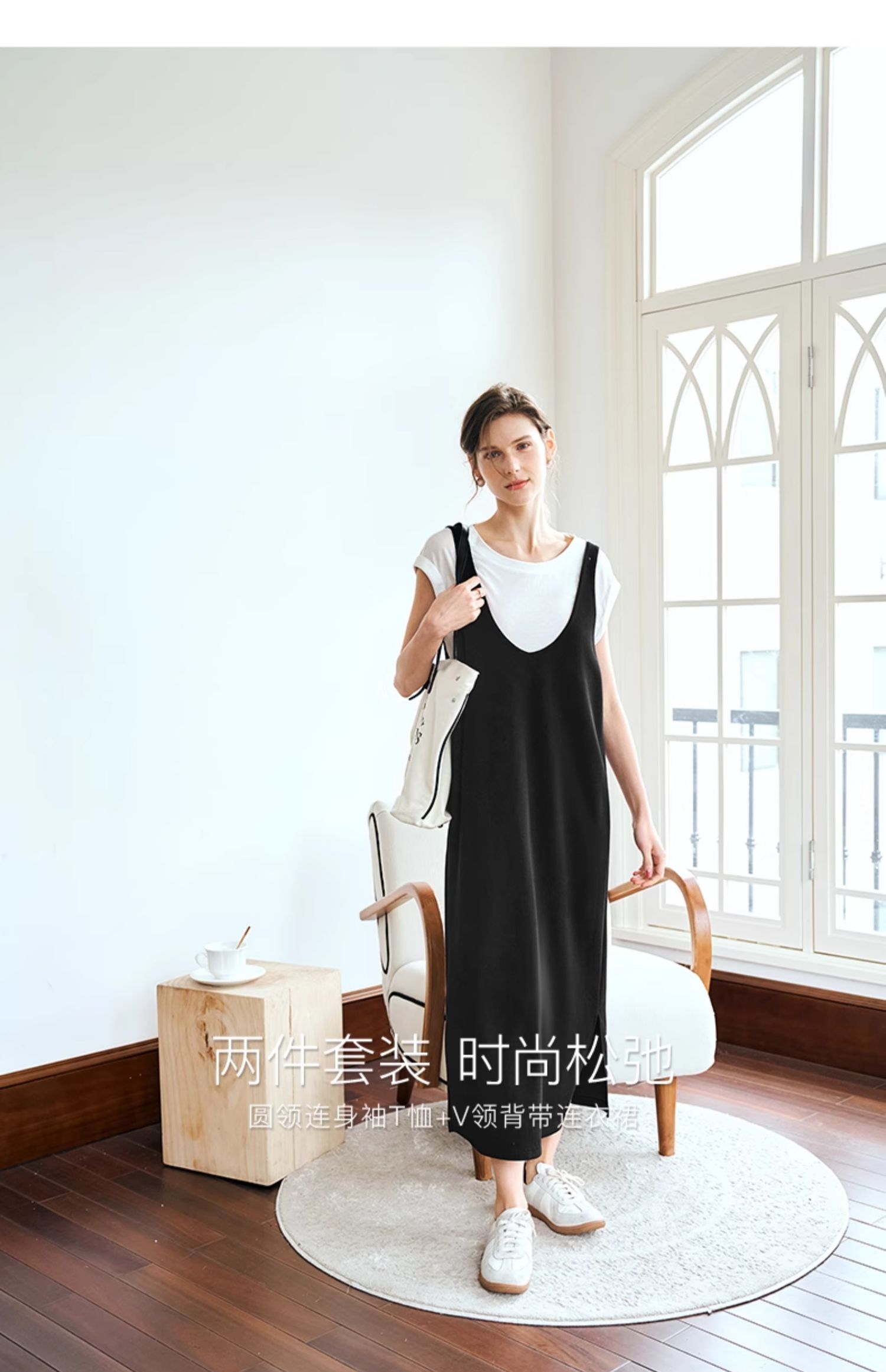 OLrain欧芮儿休闲时尚套装女夏2024新款松弛感白T恤背带裙两件套