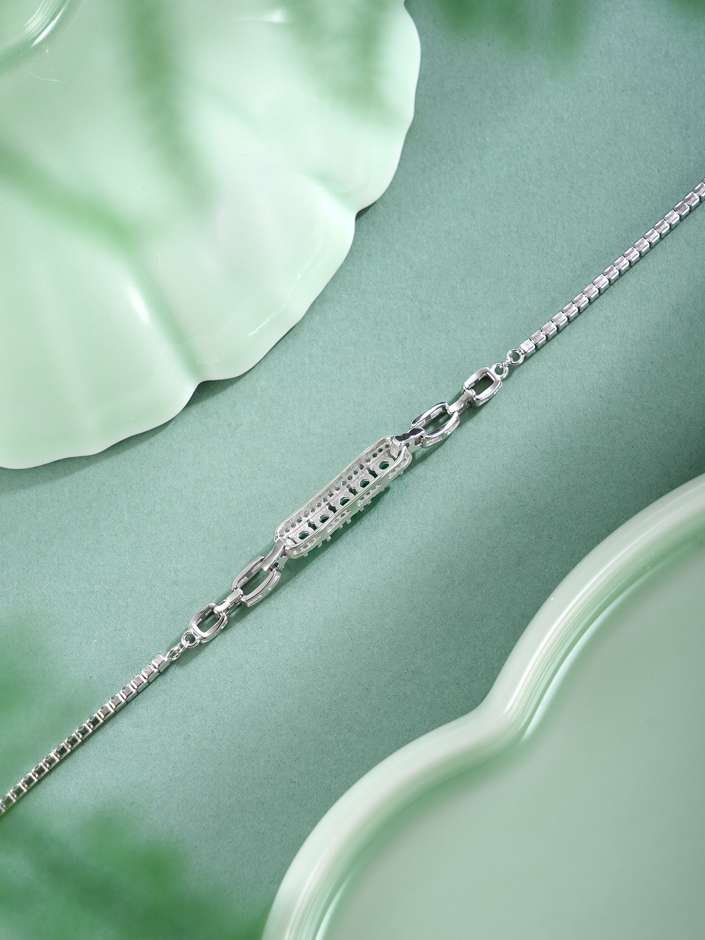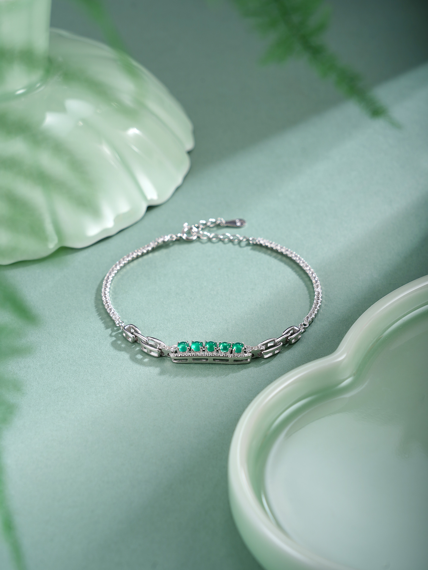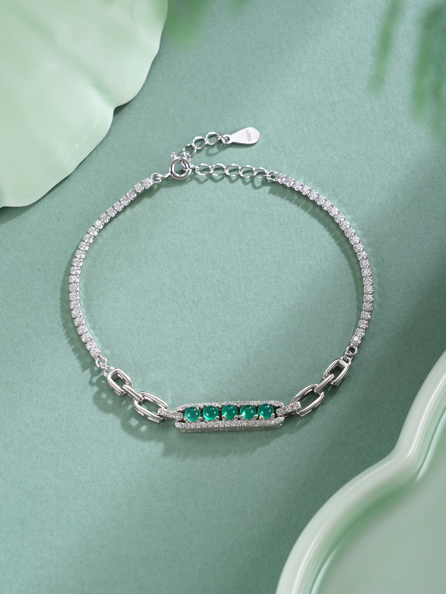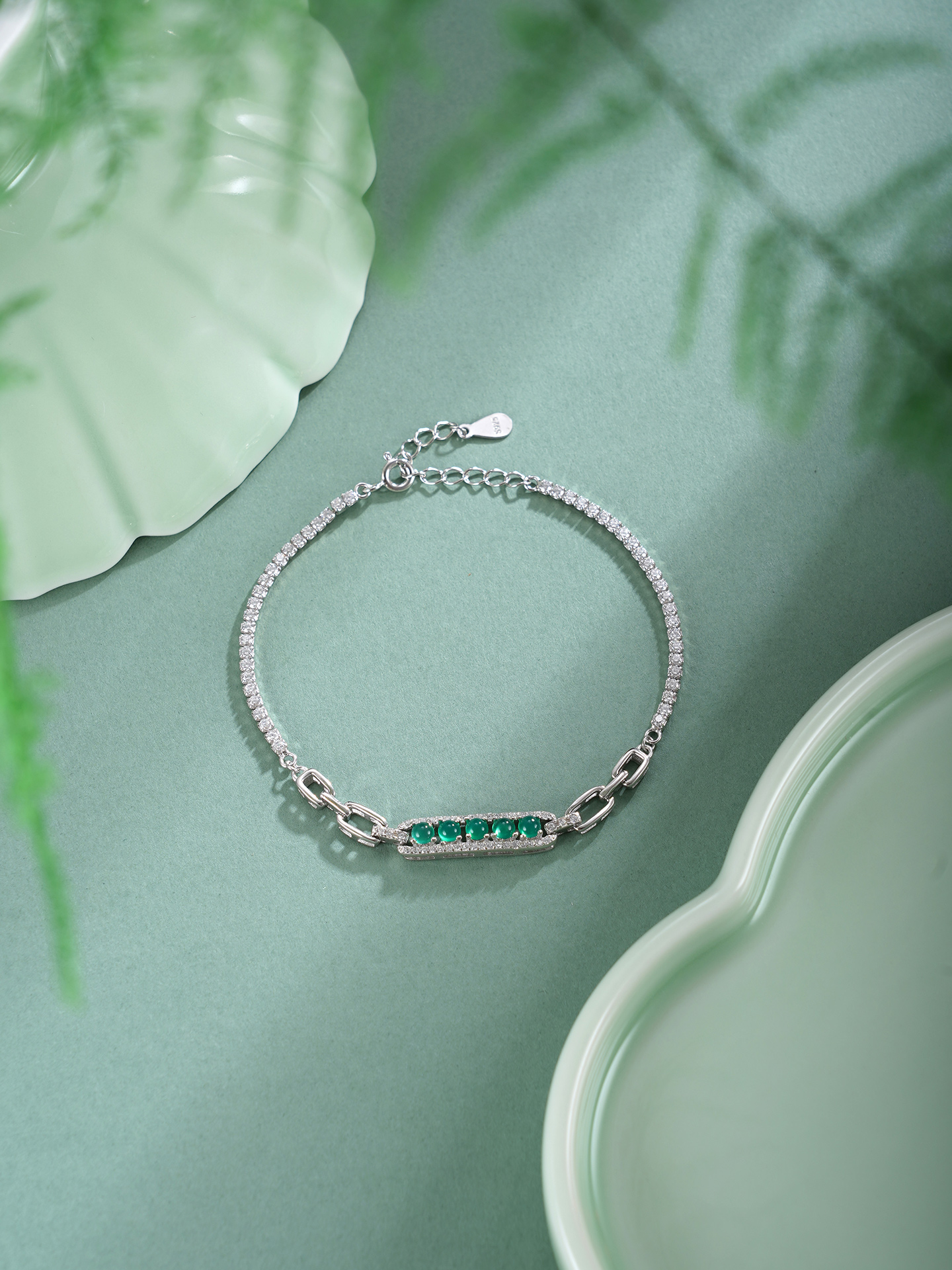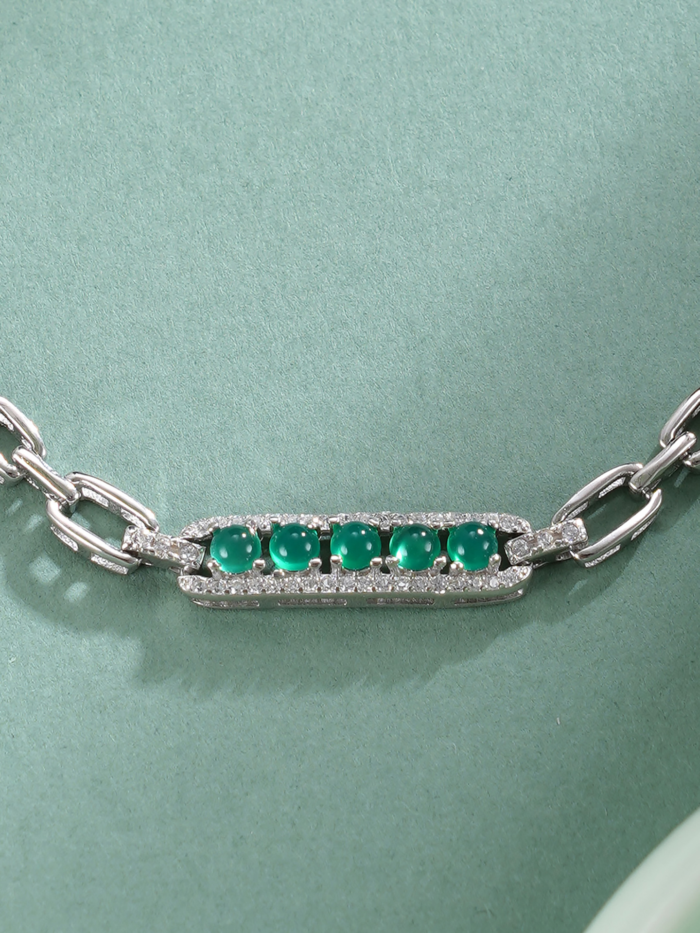【寓意】:纯银手链,点缀蛋面绿玉髓,搭配清冷锆石,整体冷艳通透,灵动婉转,散发出江南柔婉韵味。