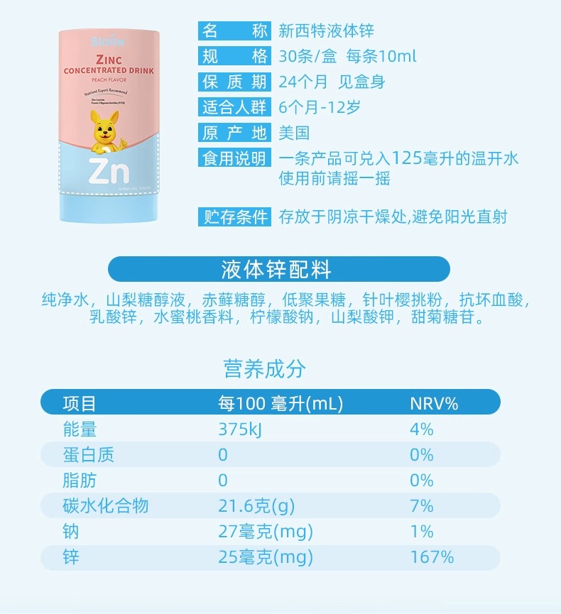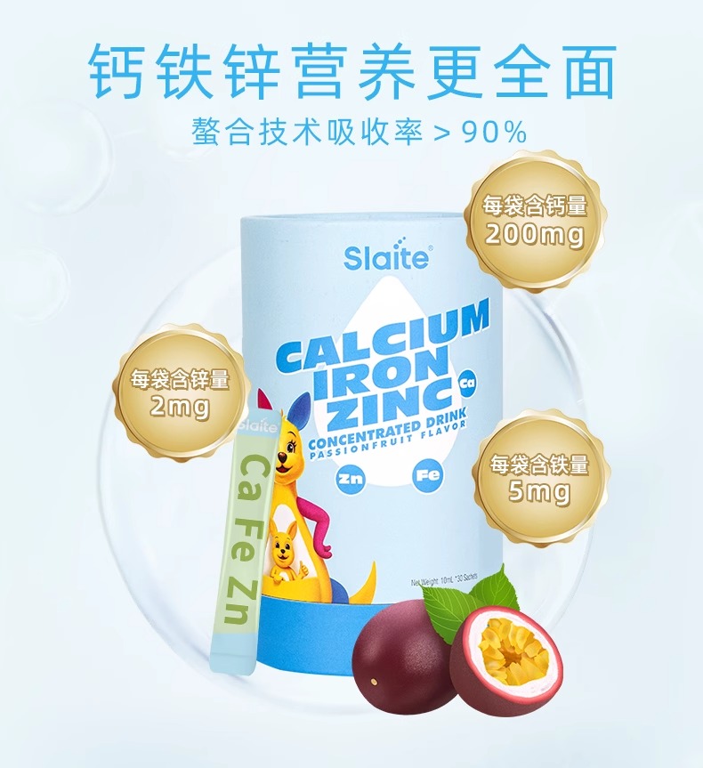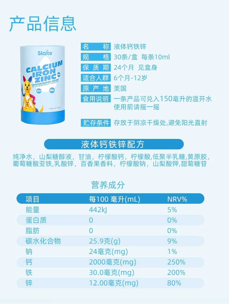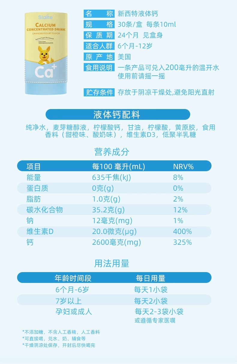 slaite新西特美国进口钙铁锌液体钙柠檬酸钙儿童钙宝宝营养包/xXT-350082