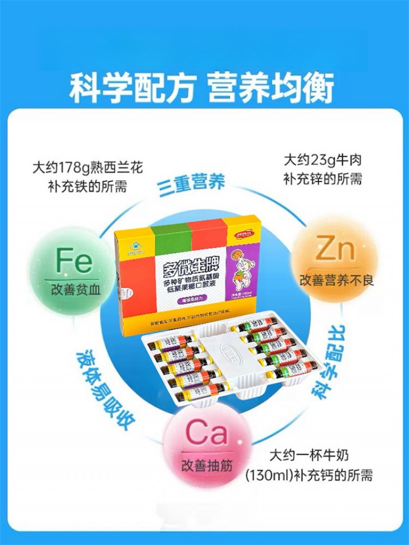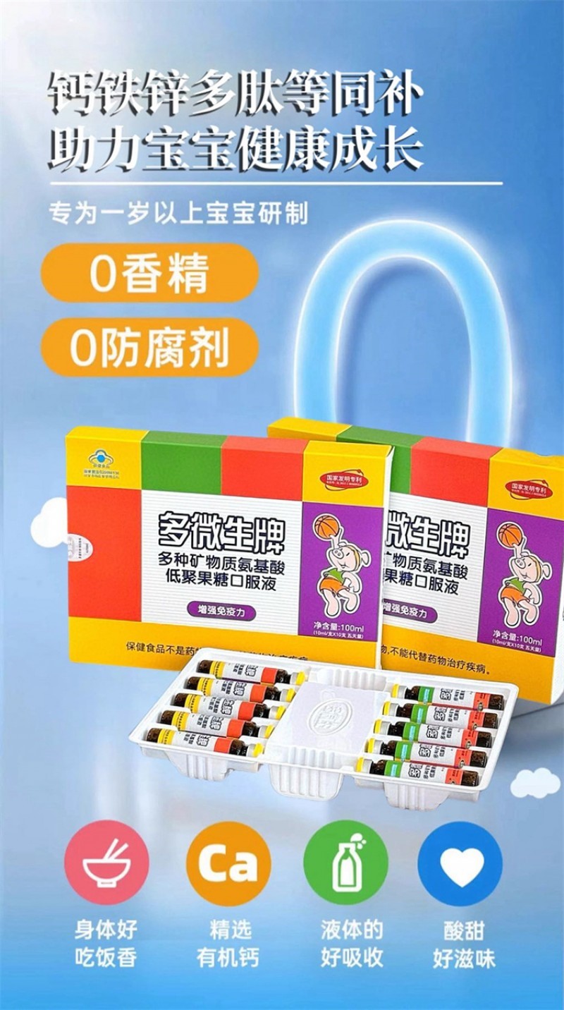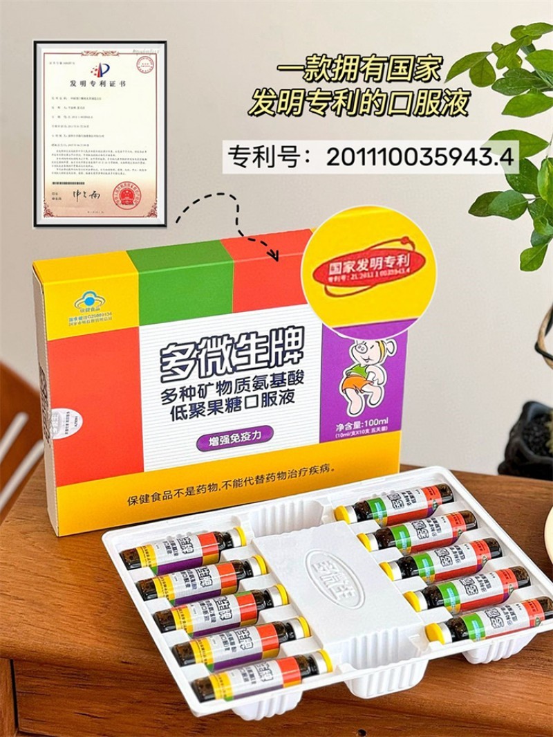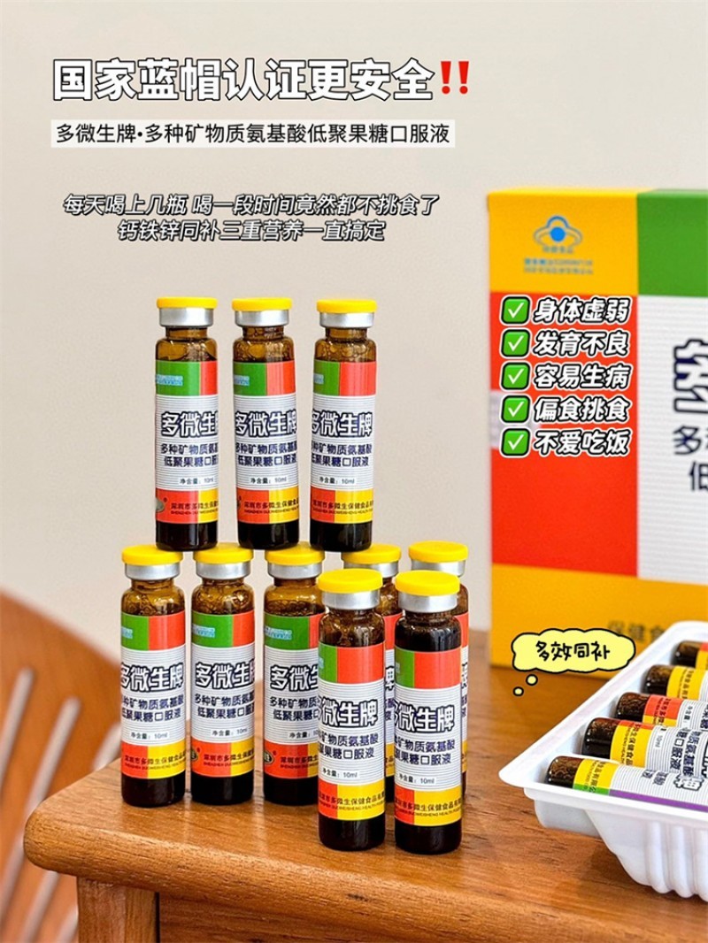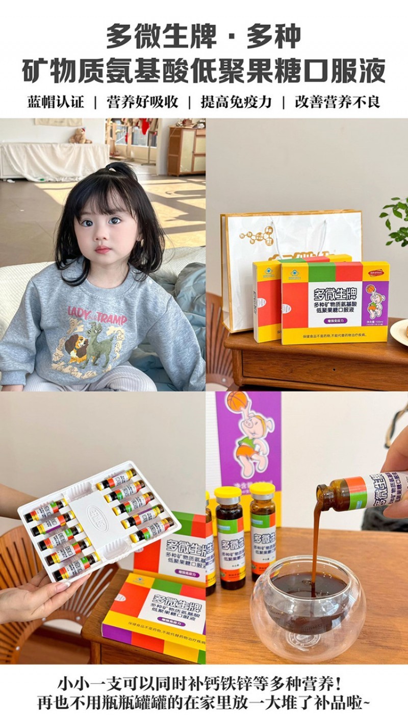 多微生牌多种矿物质氨基酸低聚果糖口服液10ML*10支*4盒装赠礼品袋