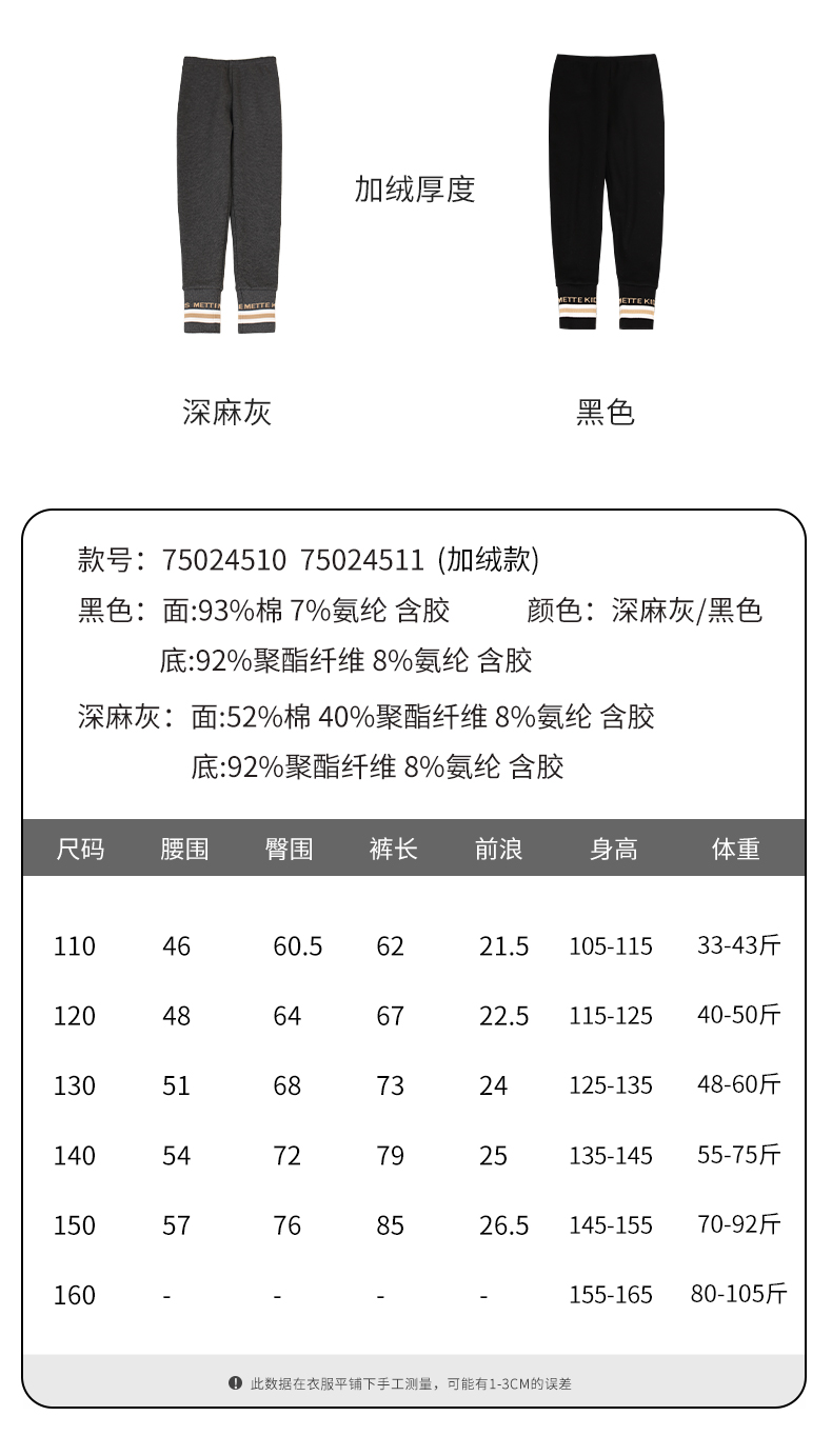 mettekids女童打底裤2022春秋新款秋装裤子儿童时尚运动修身长裤