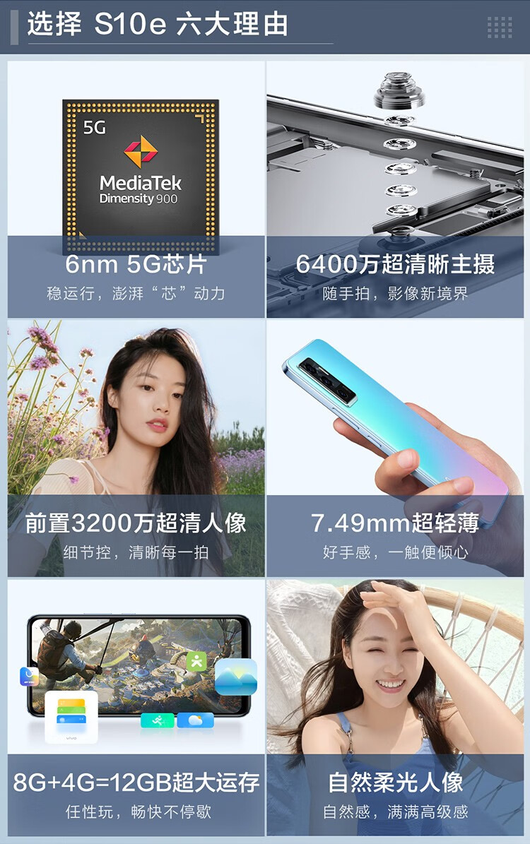 【至高省200】vivo S10e 5G手机 6400万超清影像 轻薄外观 高性能处理器