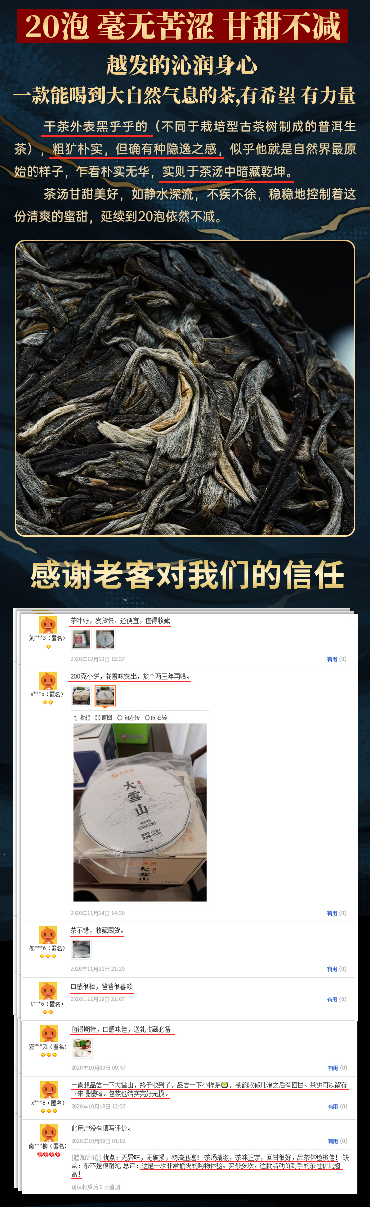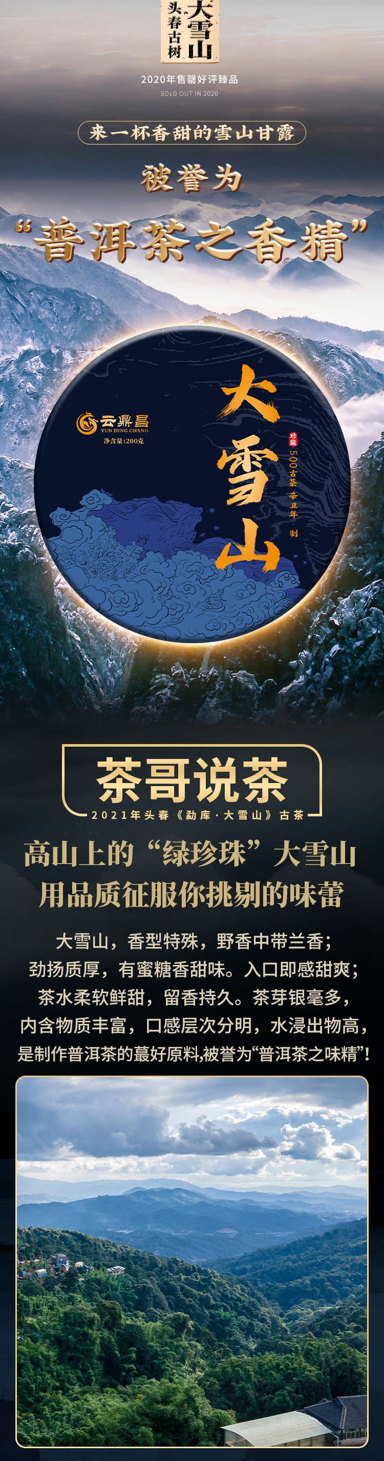 2021年大雪山普洱茶生茶临沧500年古茶云南茶叶饼茶200g
