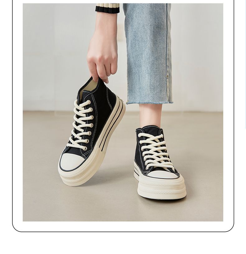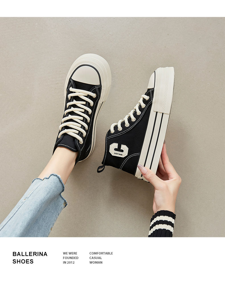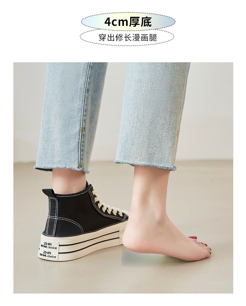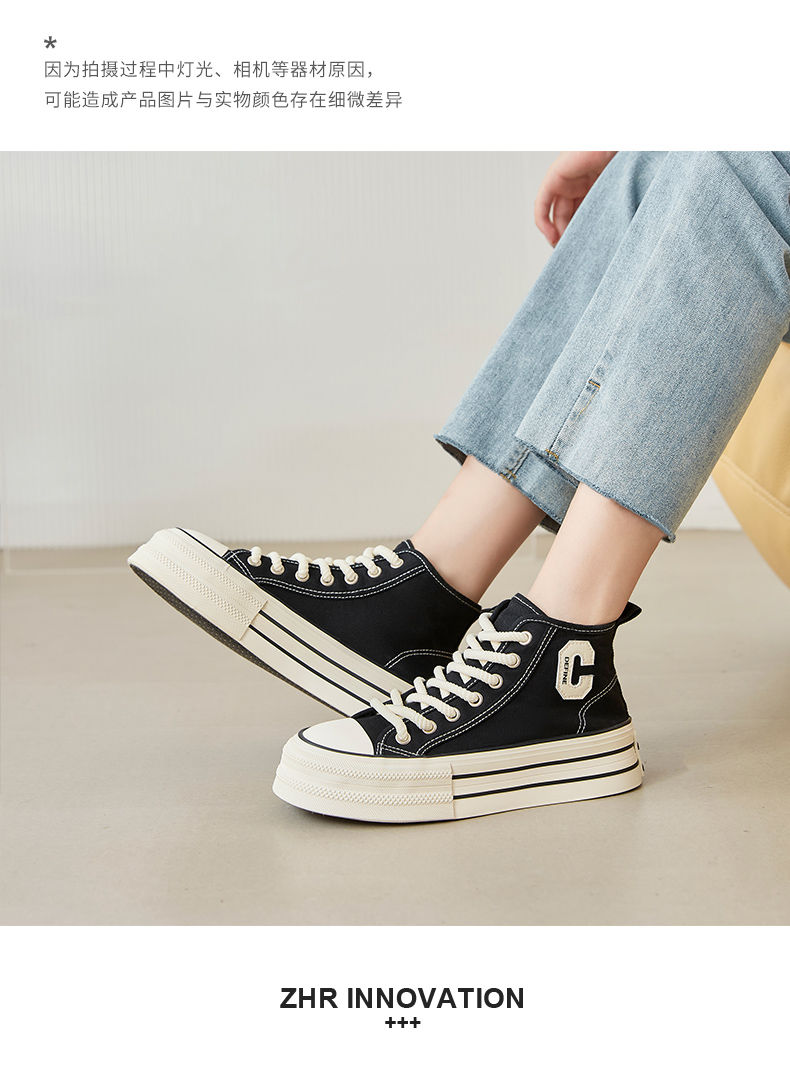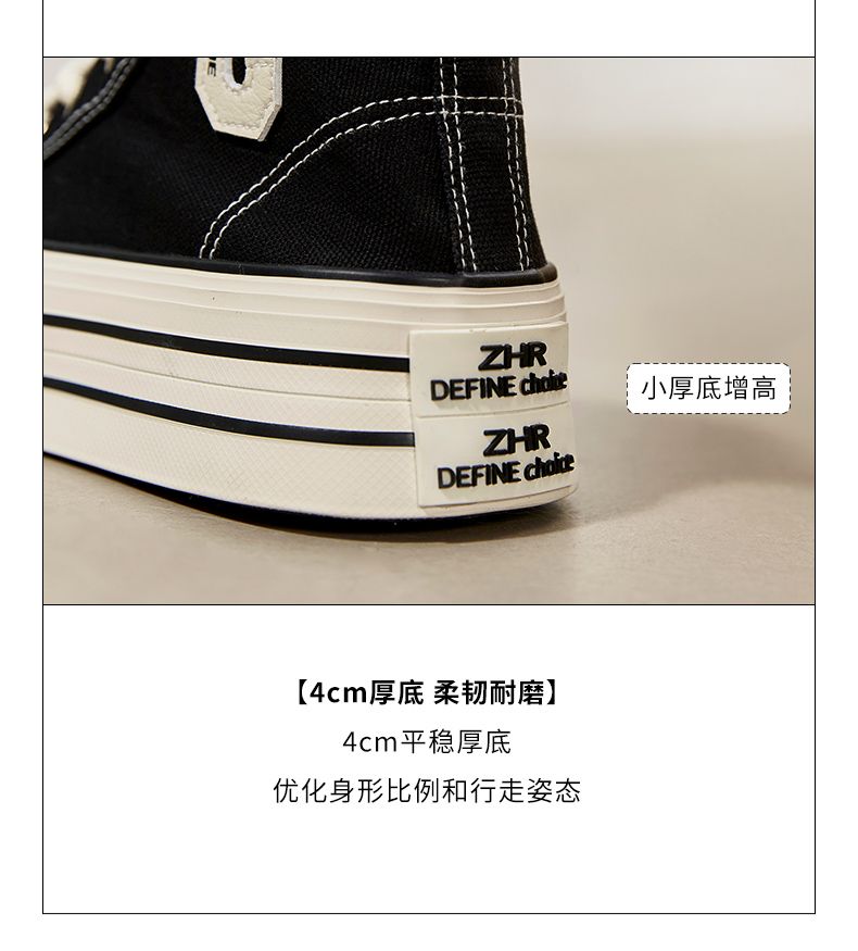 ZHR高帮帆布鞋女鞋2023秋季新款鞋子ins百搭小白鞋厚底百搭板鞋女