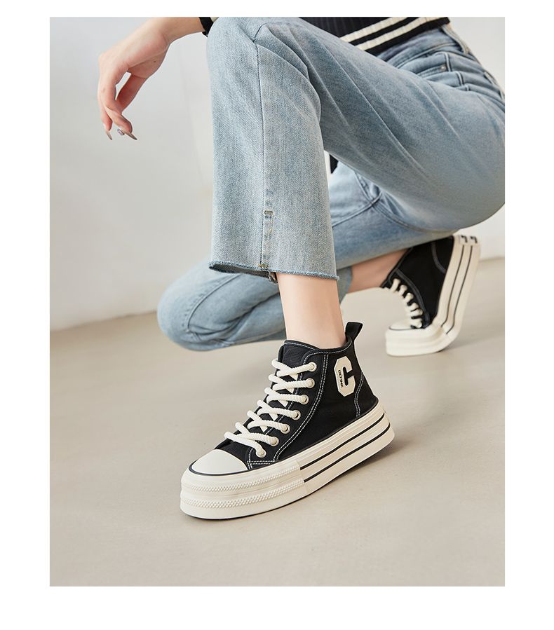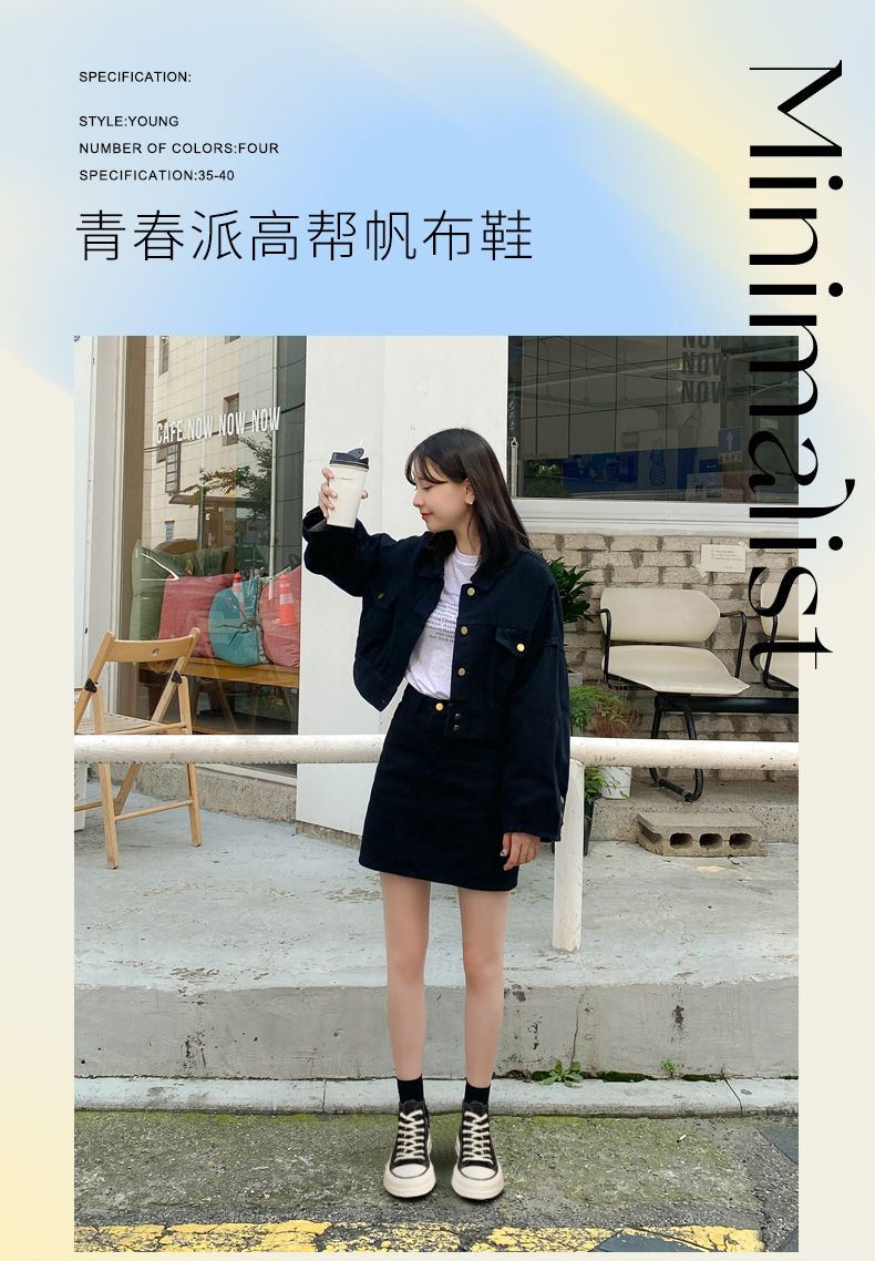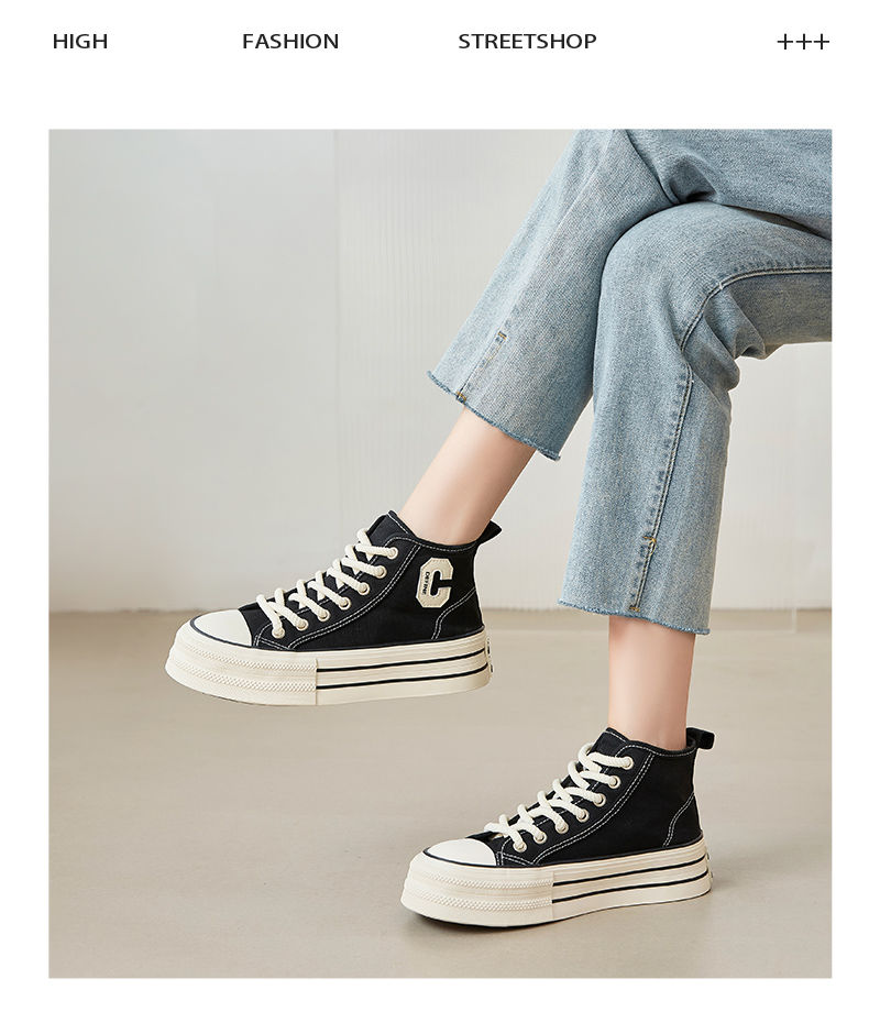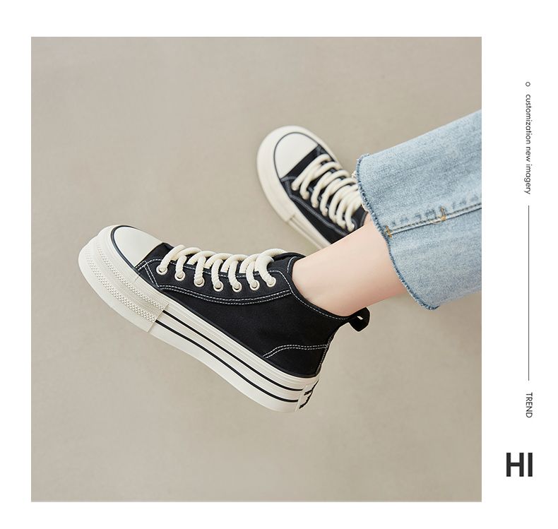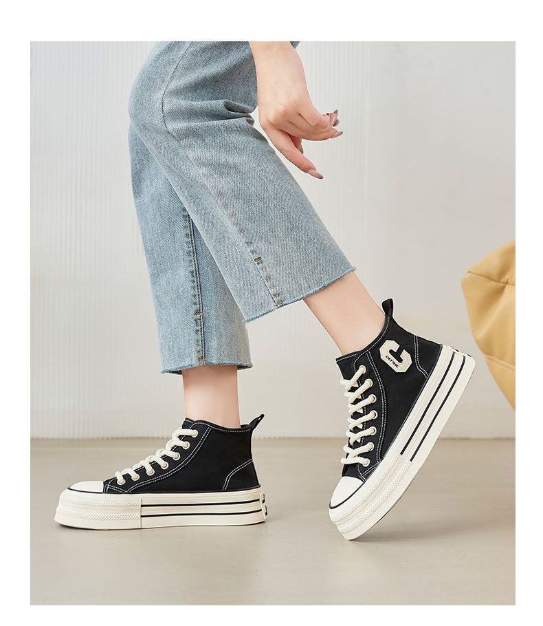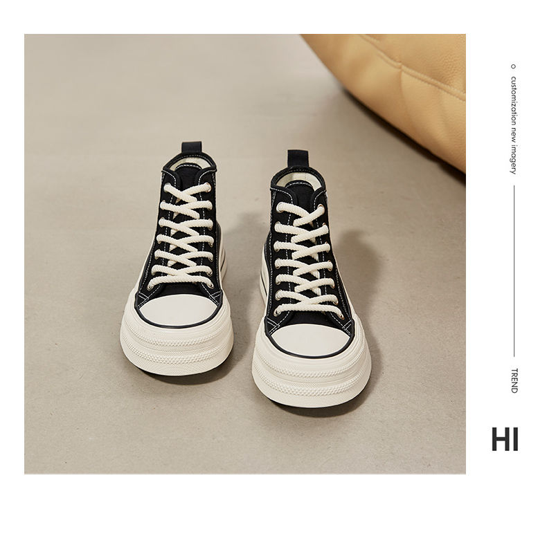 ZHR高帮帆布鞋女鞋2023秋季新款鞋子ins百搭小白鞋厚底百搭板鞋女