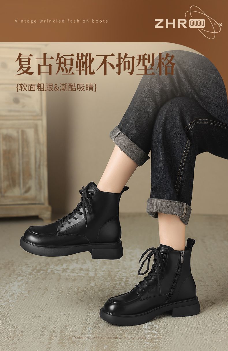 ZHR则则时尚甜酷经典马丁靴短靴2024新款冬季加绒百搭靴子女鞋潮