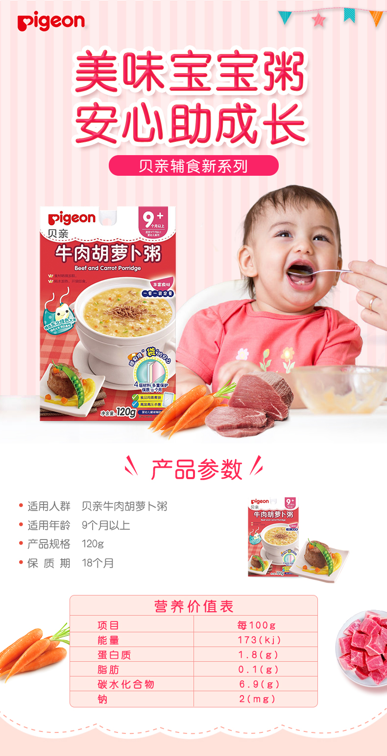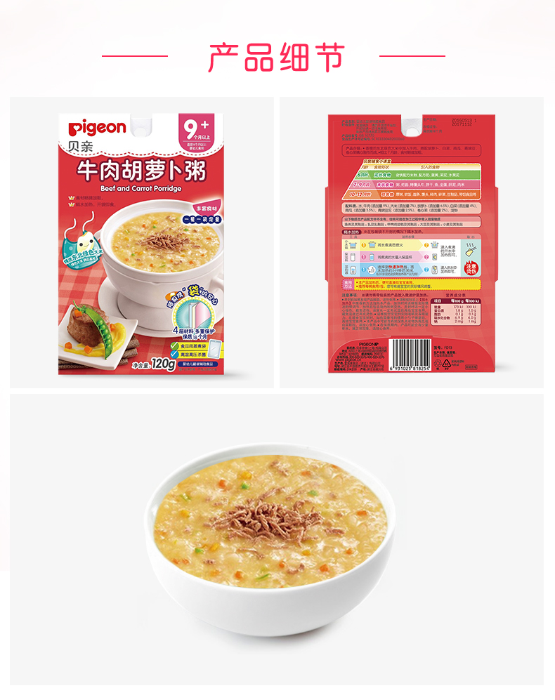 Pigeon贝亲宝宝牛肉胡萝卜即食粥120g(9-36个月)[FPLFD13]