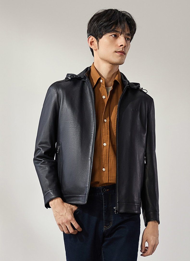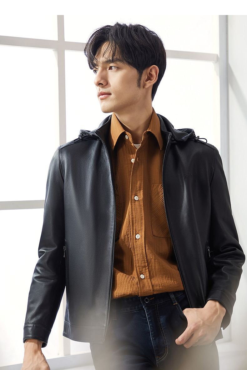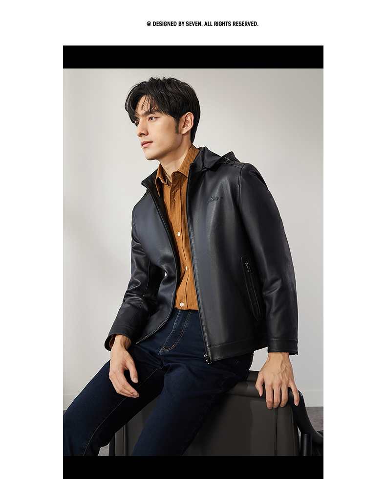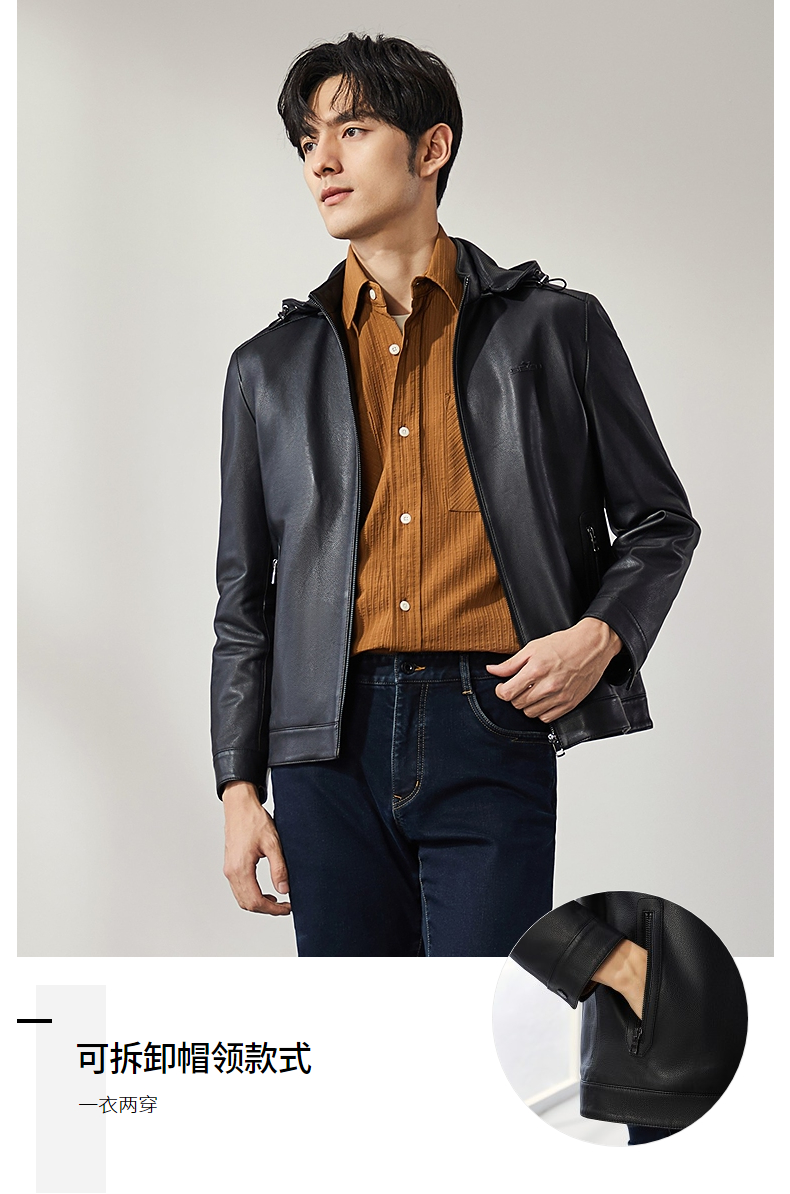 【绵羊皮】柒牌真皮皮衣男士2024秋冬新款商务百搭可脱卸帽领外套 127J70400