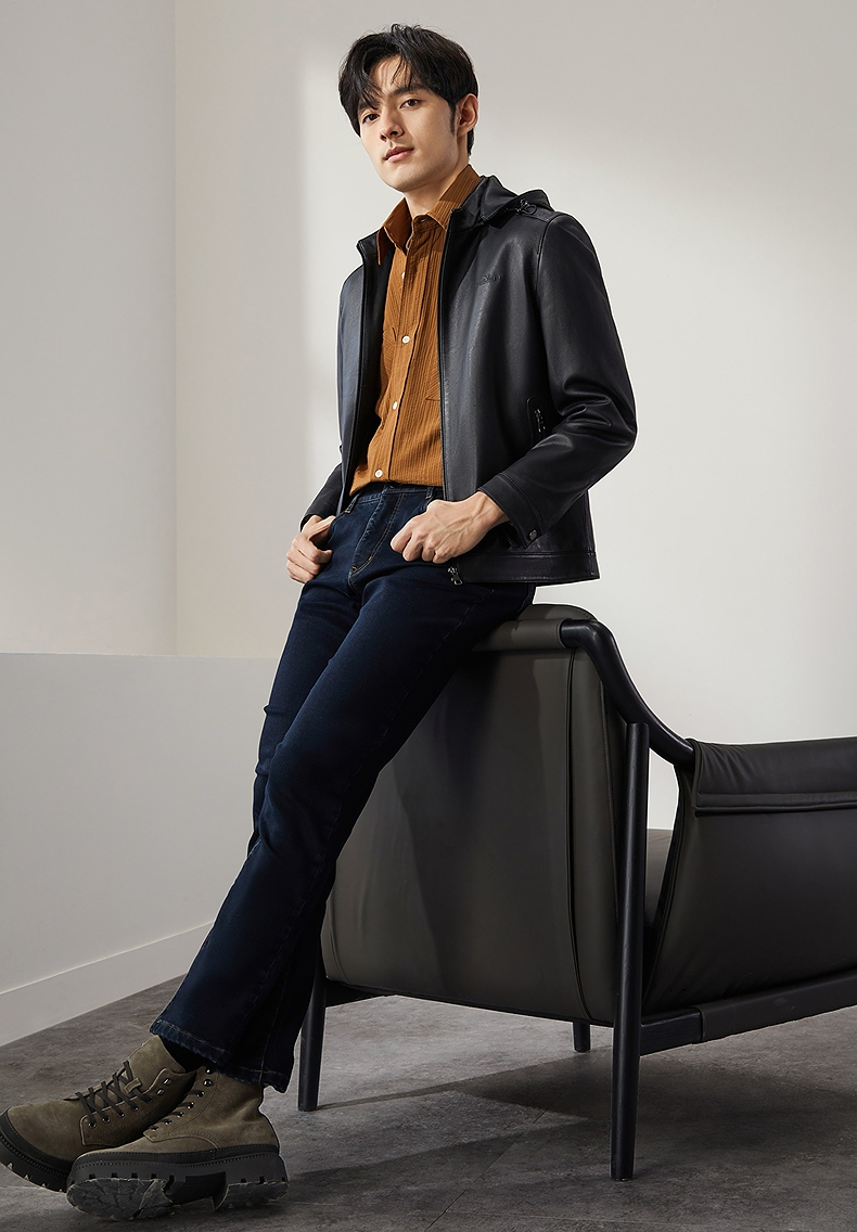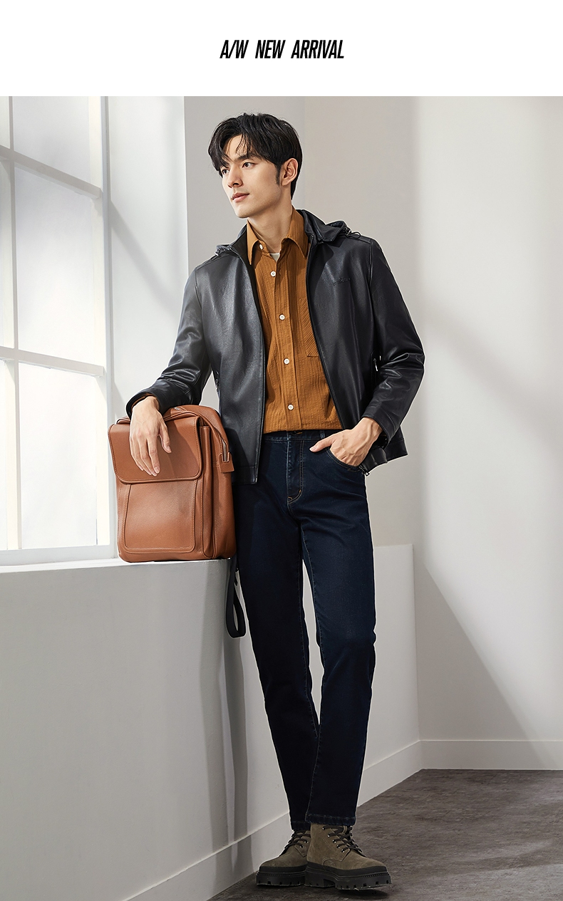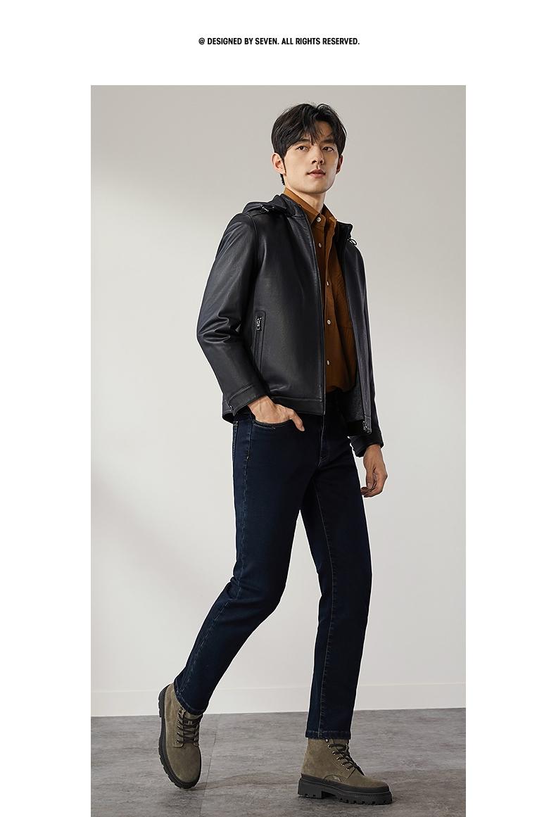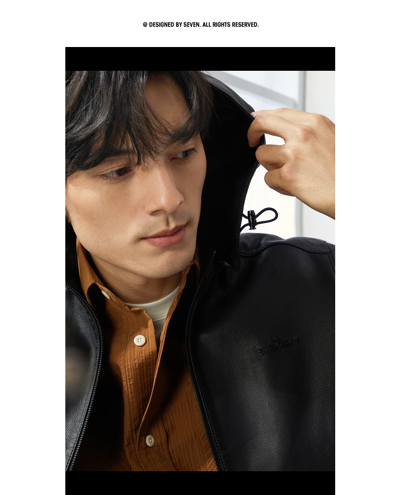 【绵羊皮】柒牌真皮皮衣男士2024秋冬新款商务百搭可脱卸帽领外套 127J70400