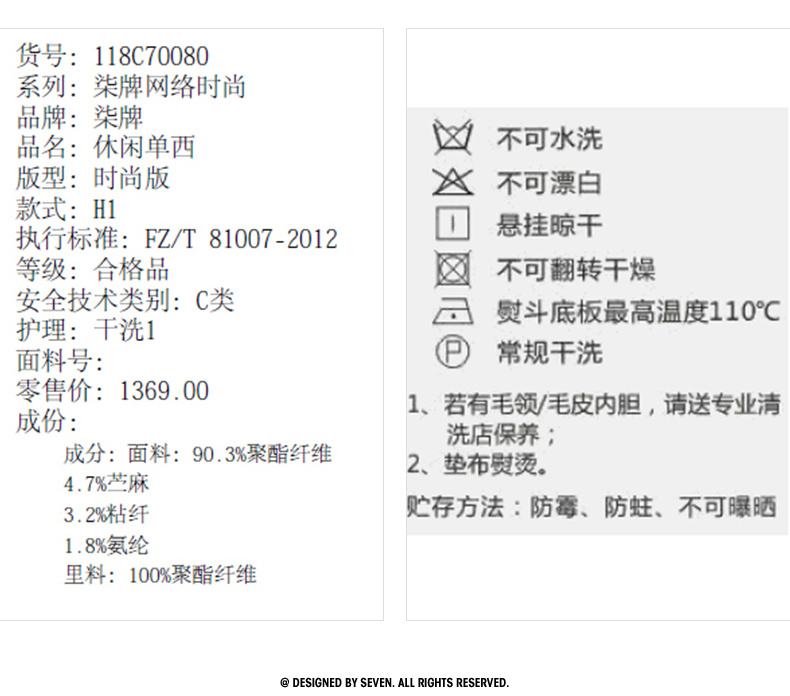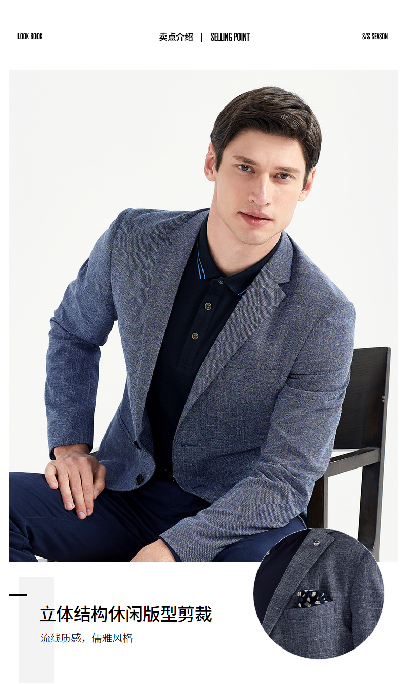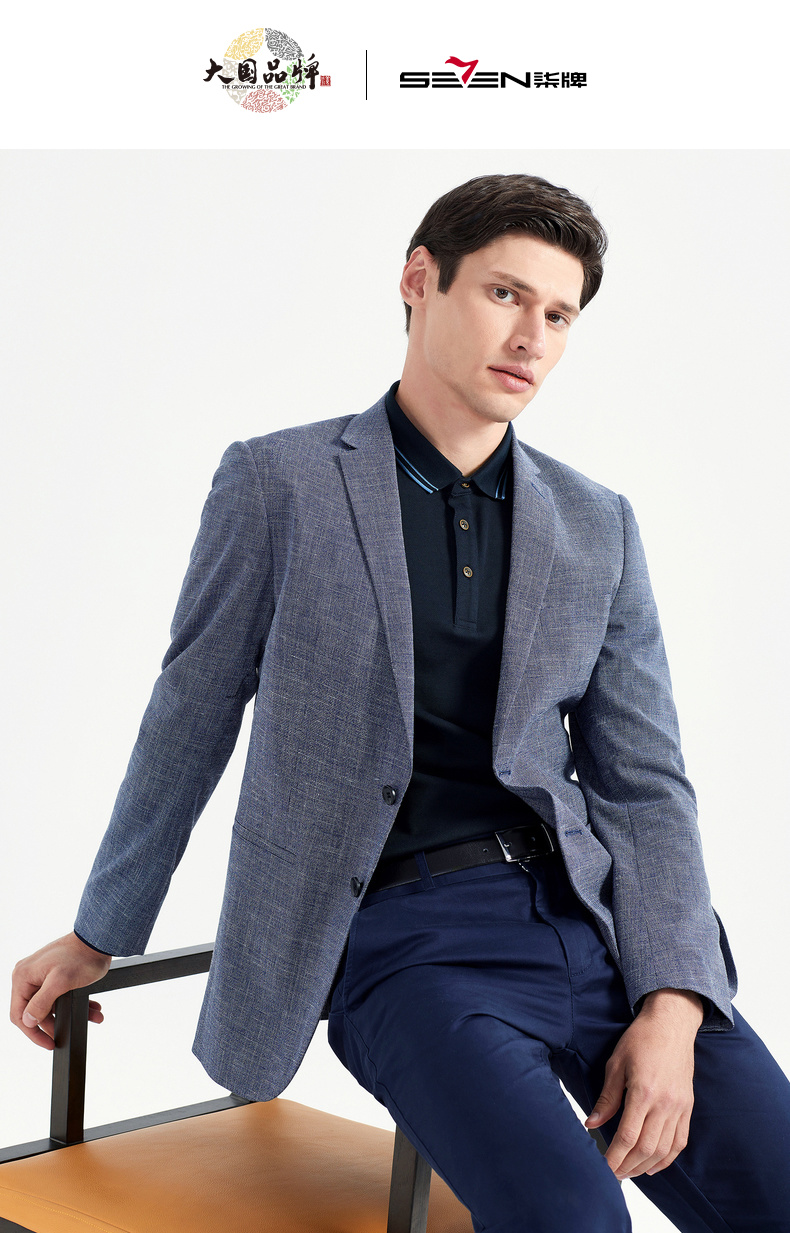 【特价】柒牌男装春季新款单西商务休闲男士西装修身版型复古纹理 118C70080