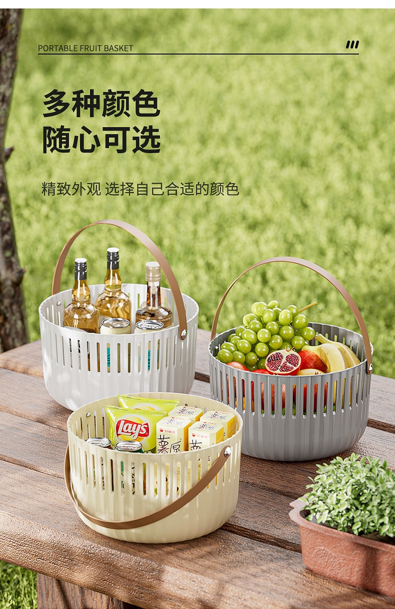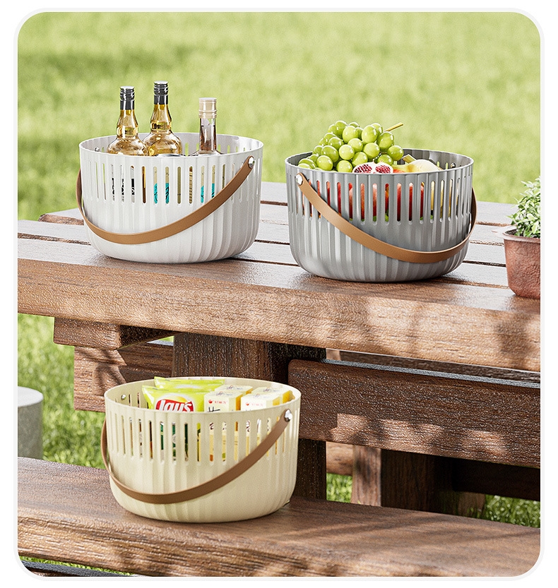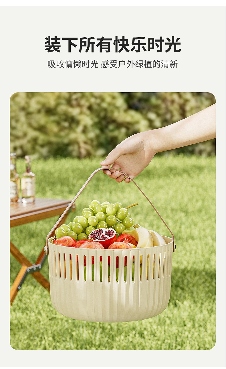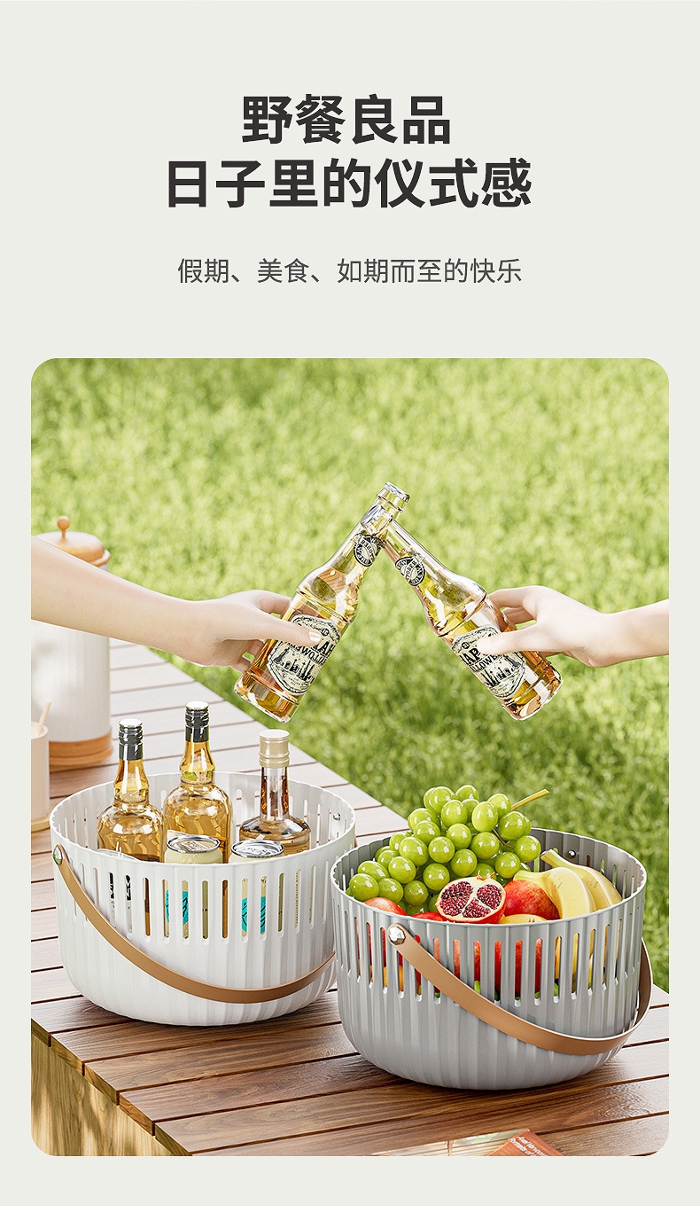 【露营季】简约露营餐具皮革拉手收纳篮 户外春游野餐篮便当食品储存小提篮