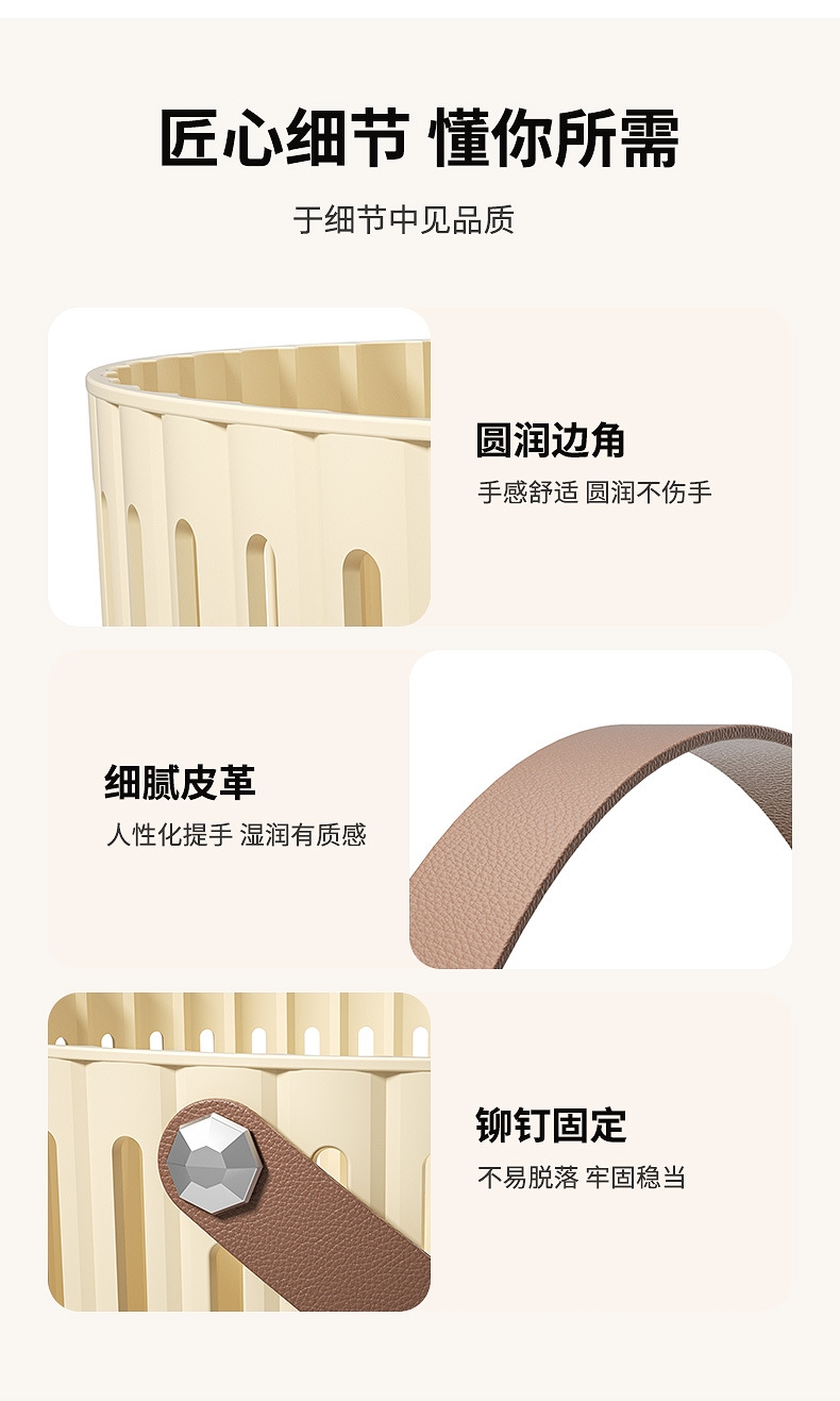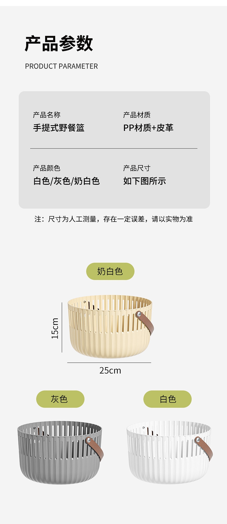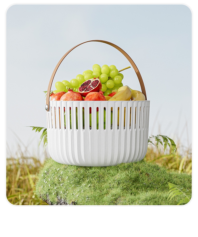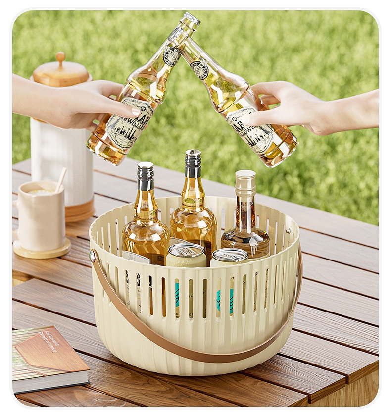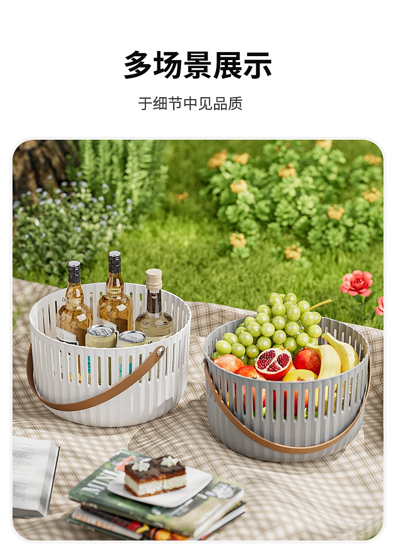 【露营季】简约露营餐具皮革拉手收纳篮 户外春游野餐篮便当食品储存小提篮