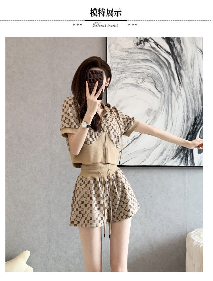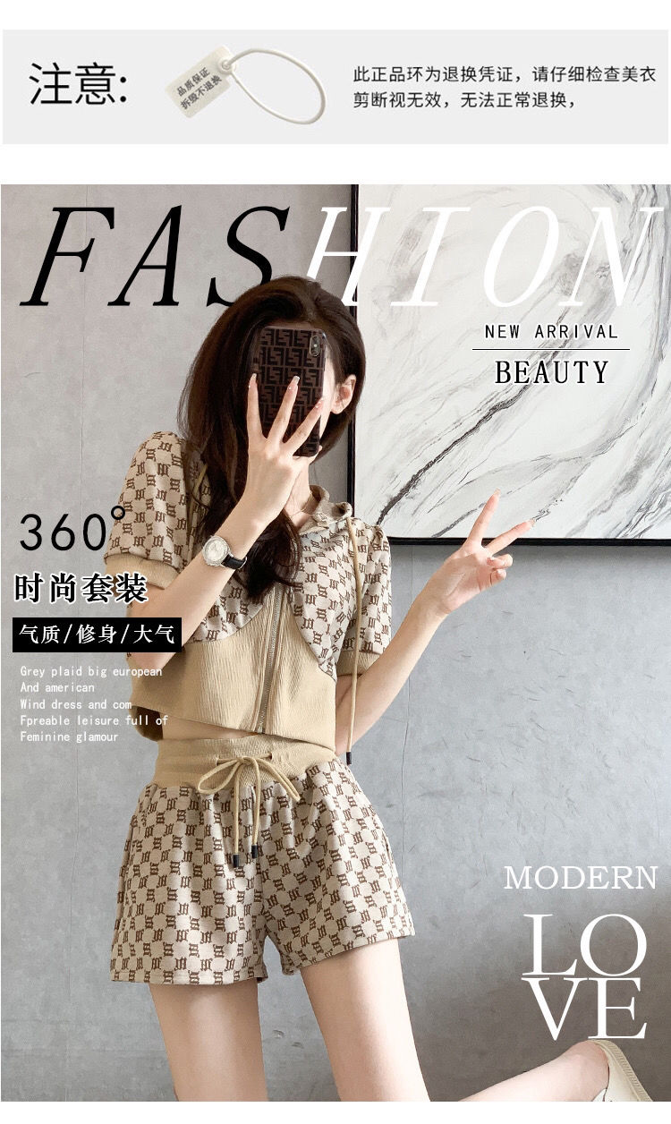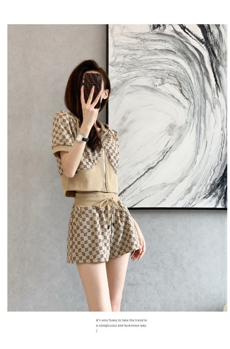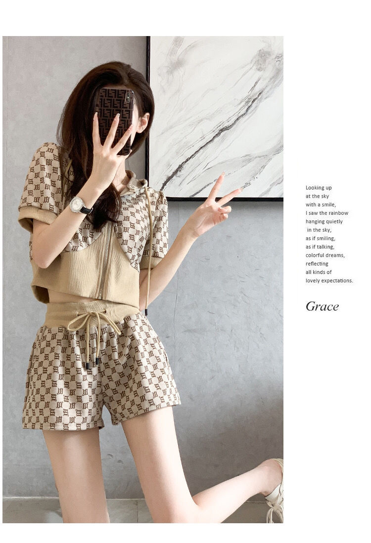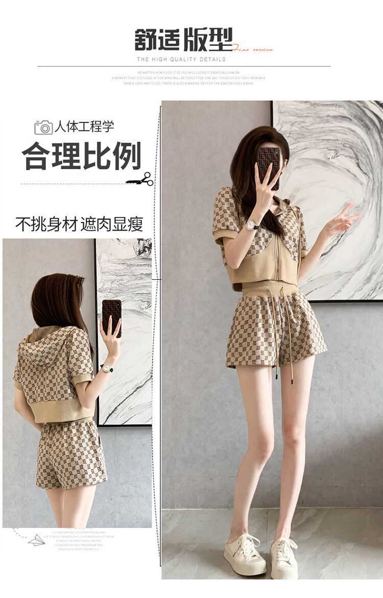 黛唯梵2022年夏季新款韩版名媛高端轻奢小香风套装女显瘦短袖短裤两件套国庆清明出游