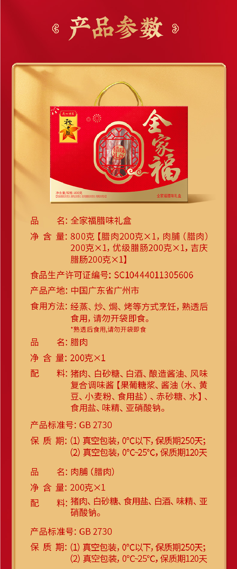 广州酒家 全家福腊味礼盒广式风味腊肠腊肉秋之风礼包节日伴手礼