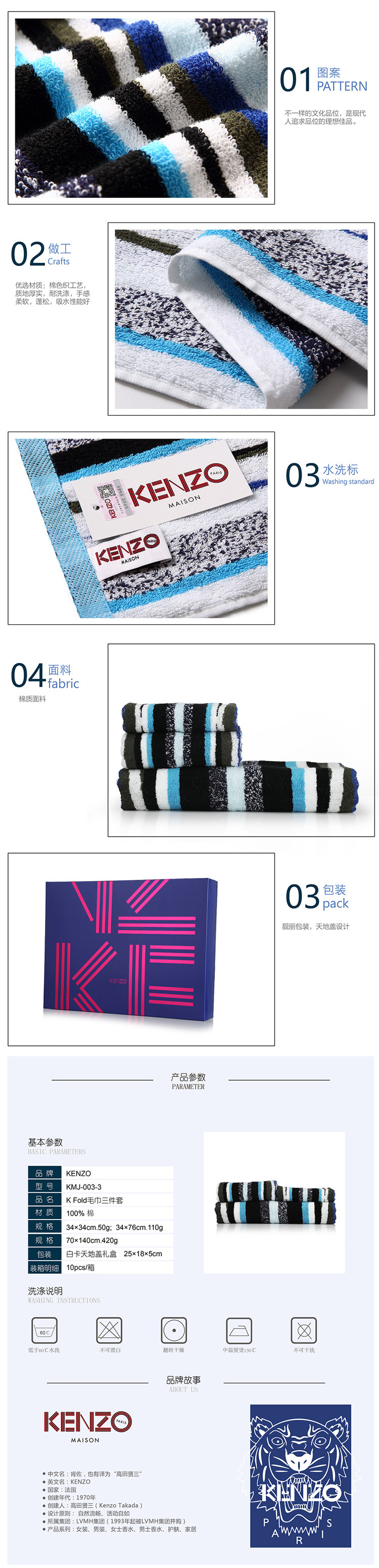 KENZO/高田贤三 K Fold毛浴巾三件套浴巾 毛巾 方巾