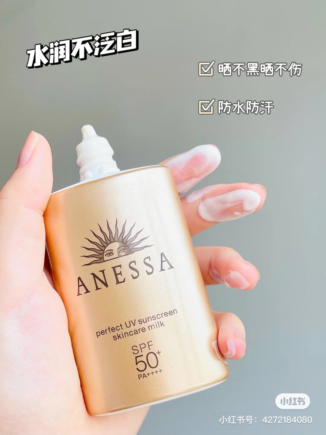 新版安耐晒金瓶60毫升,使用了新技术AquaBooster,遇水能形成更好的防晒膜,不需要卸妆,洗面奶轻松解决,加强了防水抗汗性能,超级防晒防汗SPF50+/PA++++有效防晒、防晒黑!保护受损肌肤,远离紫外线!