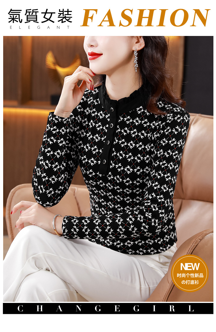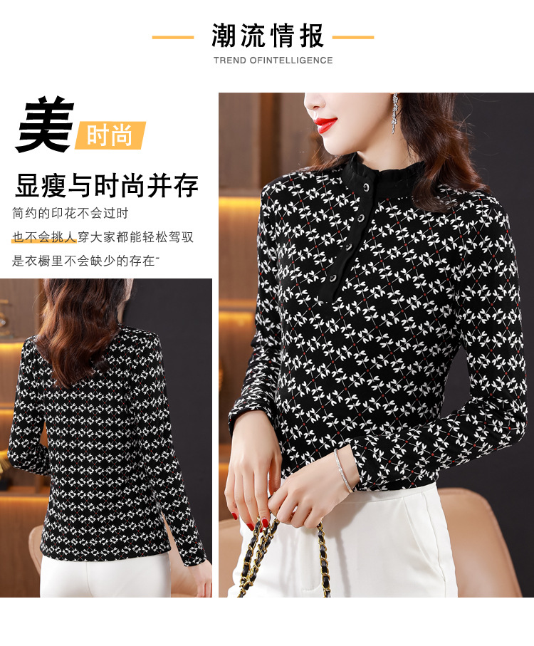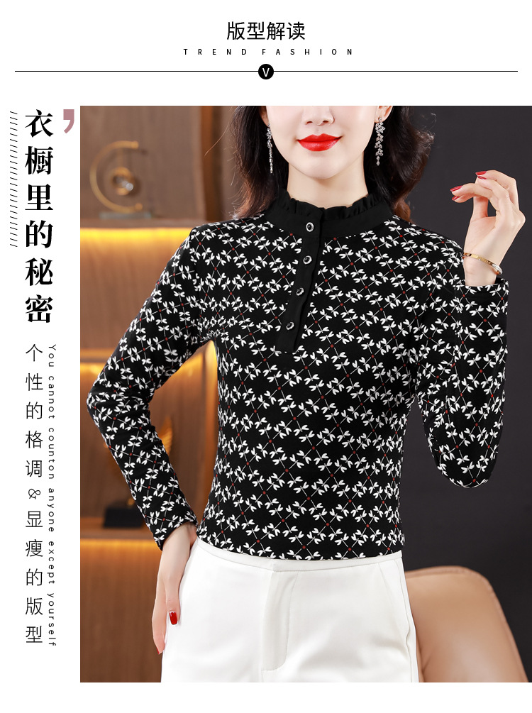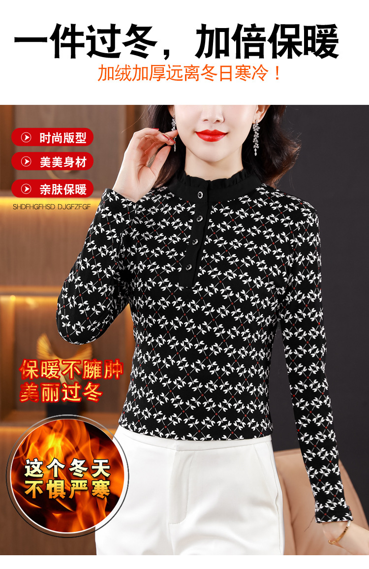加绒加厚网纱打底衫冬装立领内搭套头上衣T恤小衫KQL-765G962