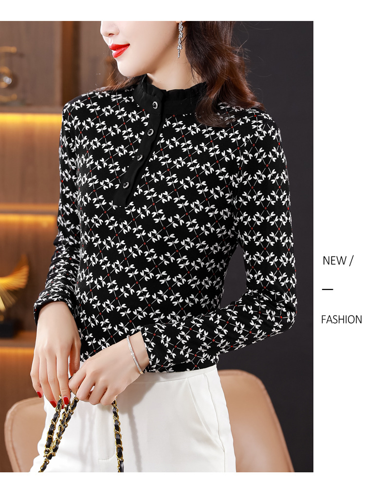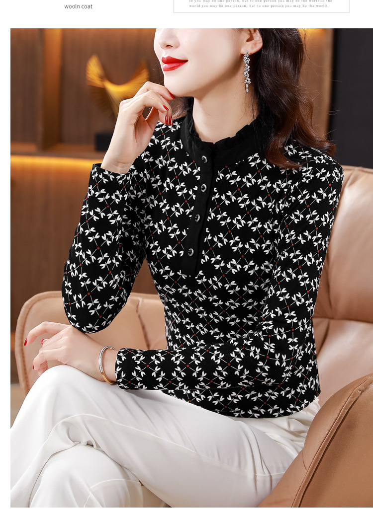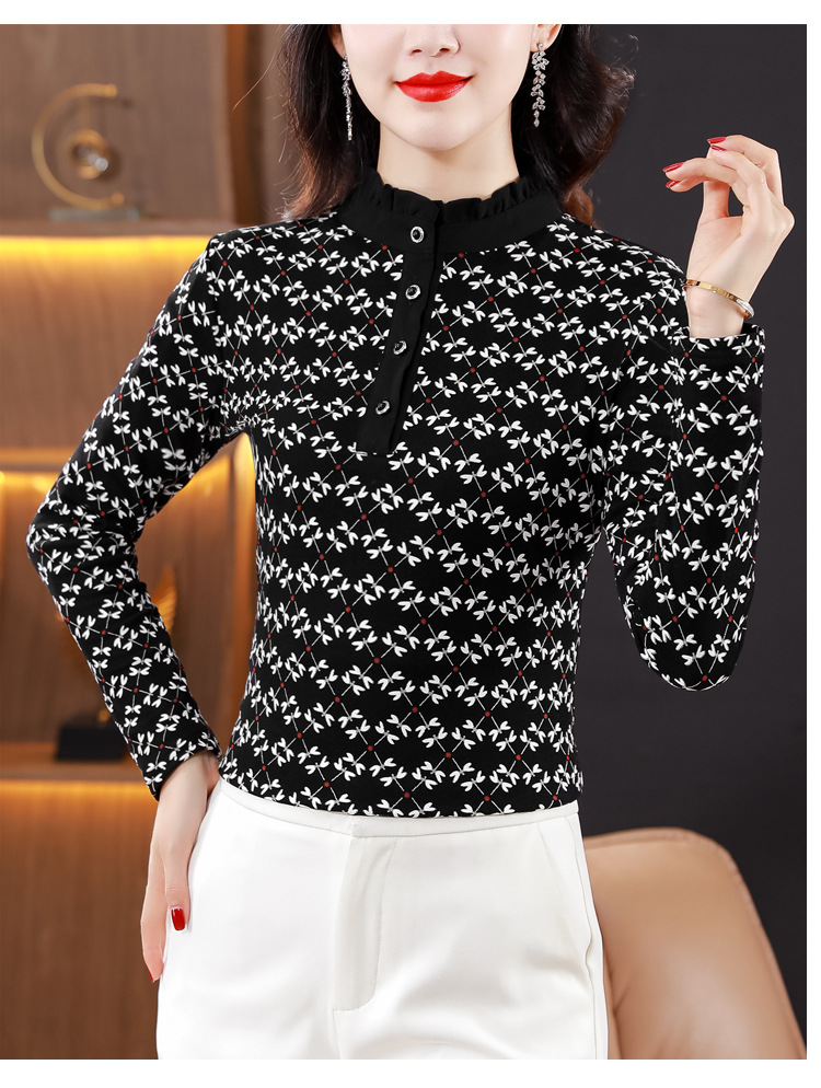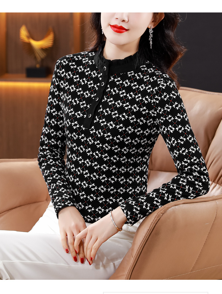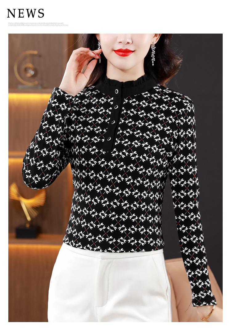 加绒加厚网纱打底衫冬装立领内搭套头上衣T恤小衫KQL-765G962
