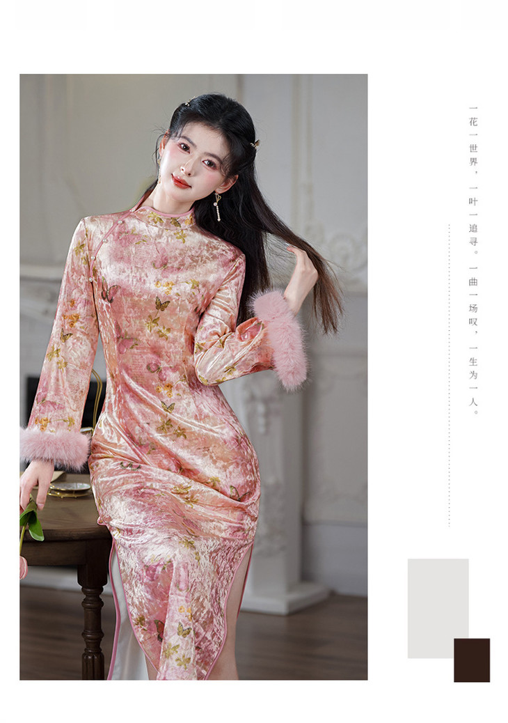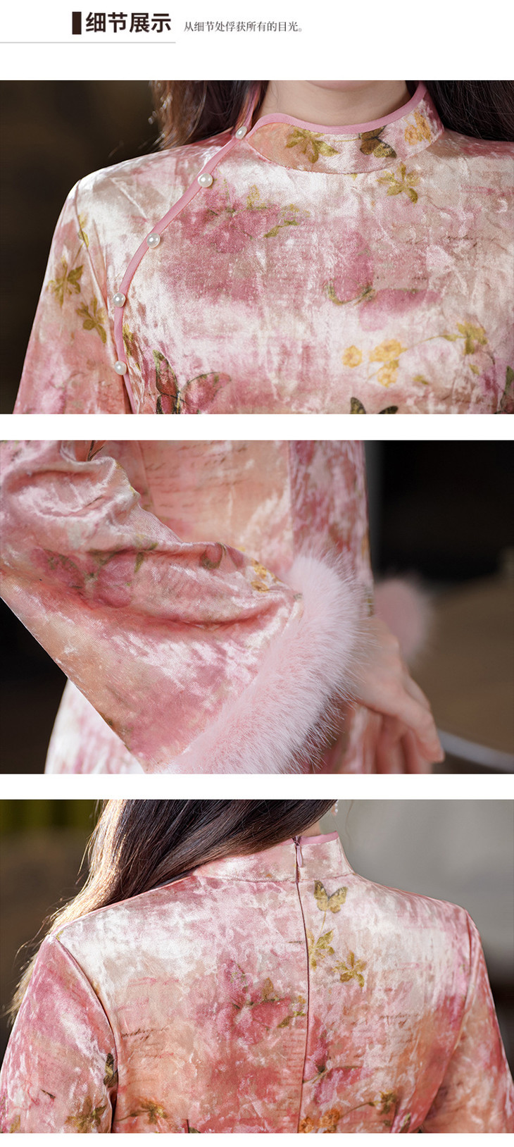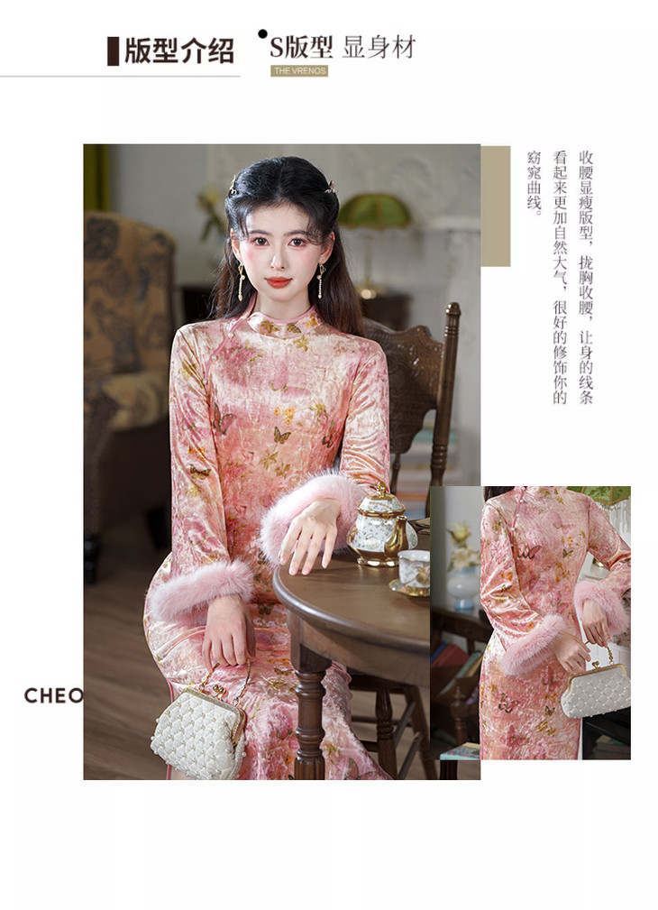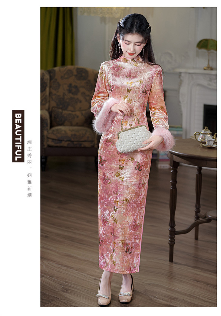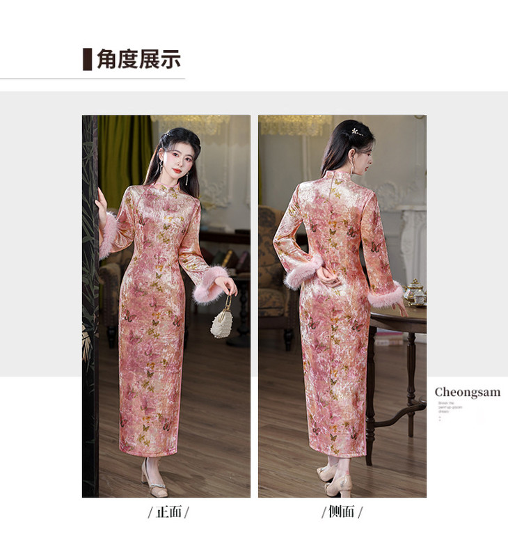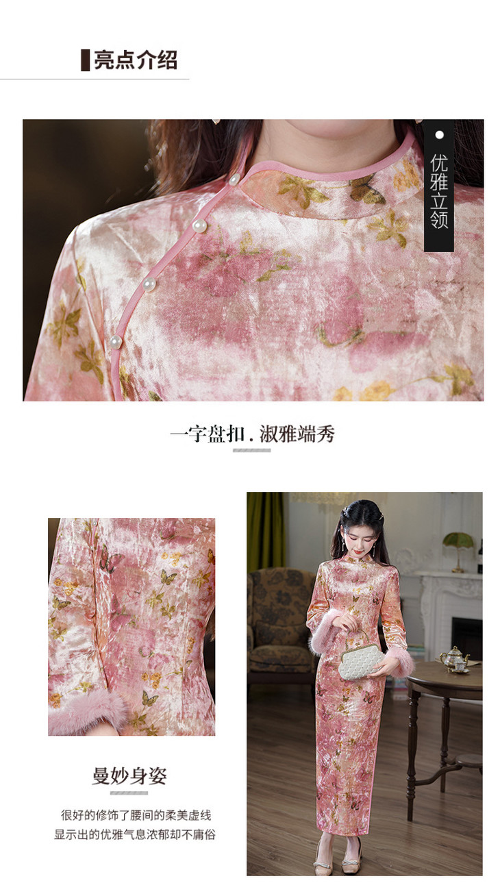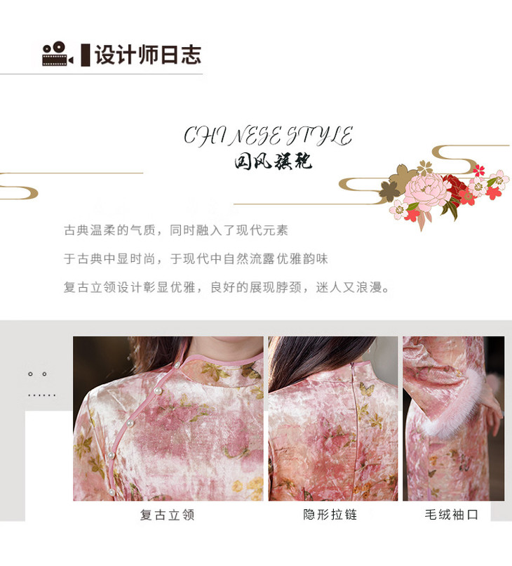 冬款丝绒复合超柔大袖旗袍TMY7941