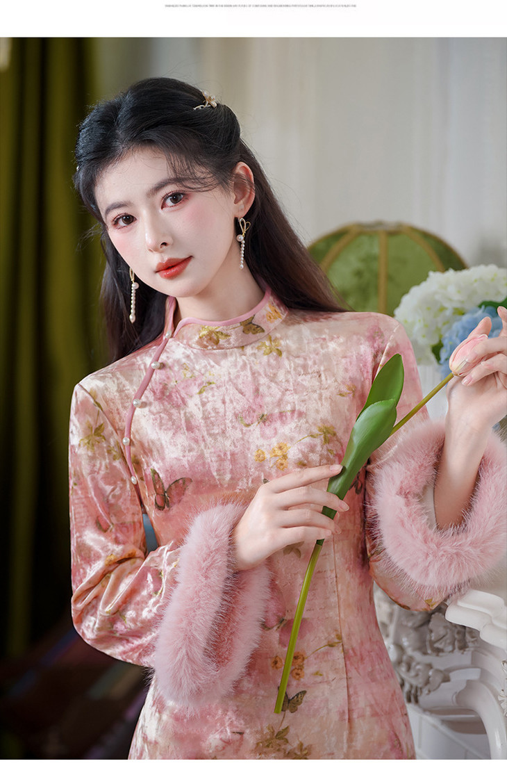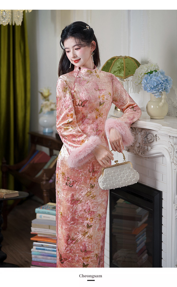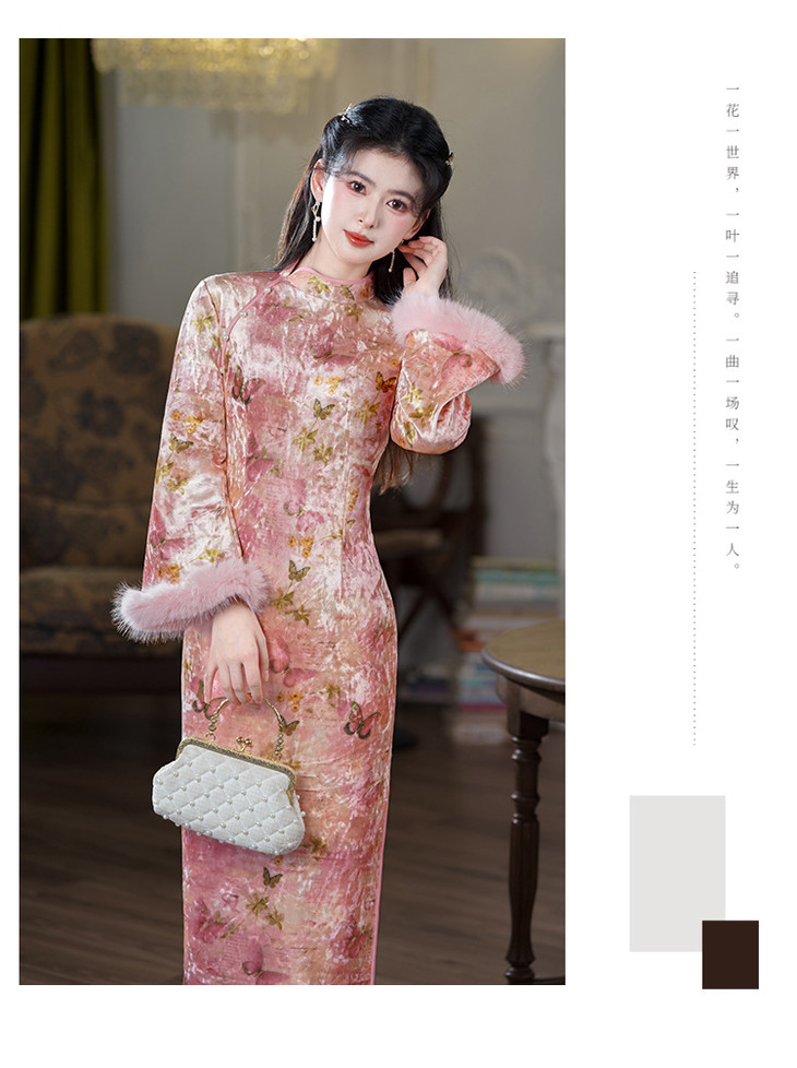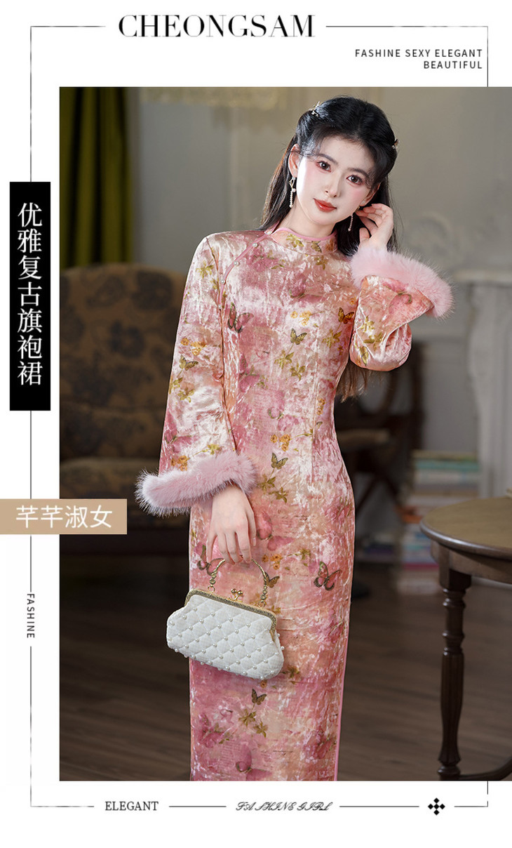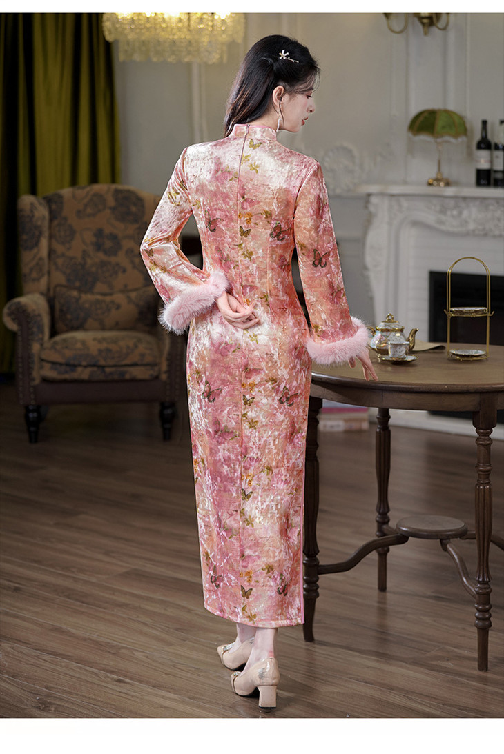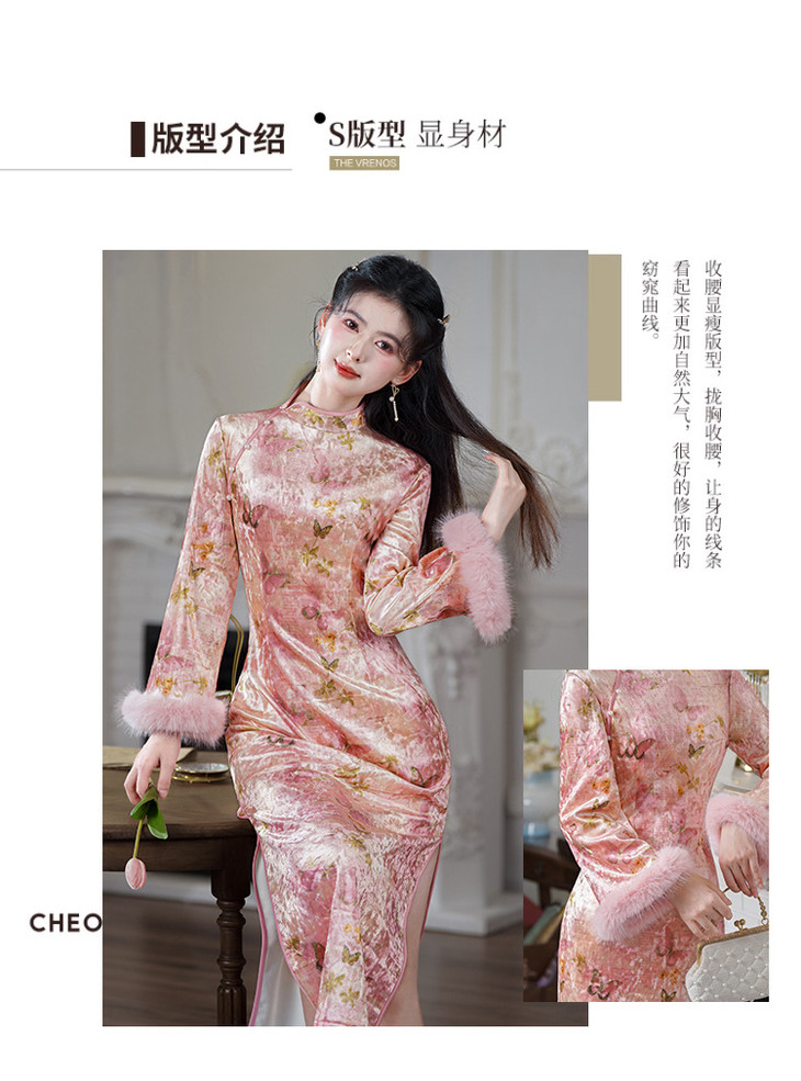 冬款丝绒复合超柔大袖旗袍TMY7941