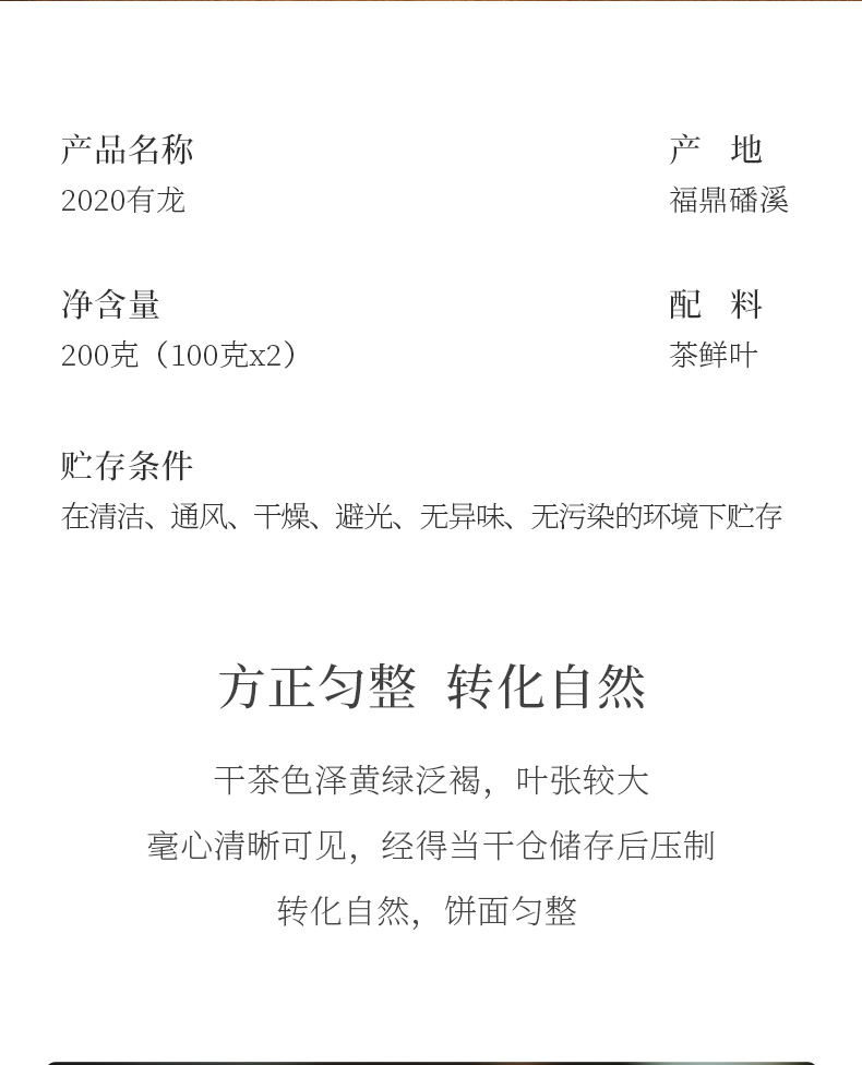 有龙 福鼎白茶寿眉茶叶2020四年陈老白茶生肖茶礼盒装
