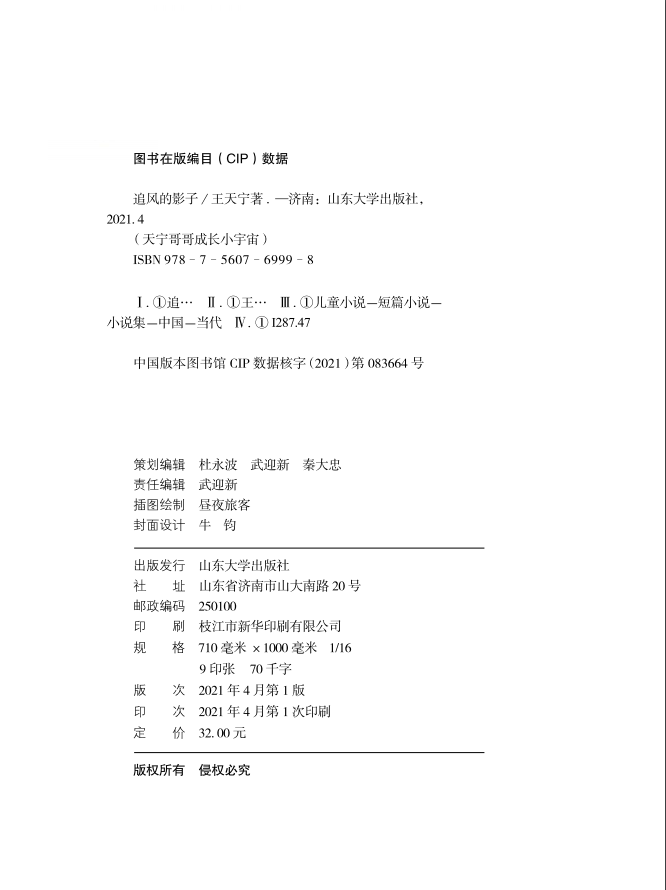 追风的影子 王天宁著 天宁哥哥成长小宇宙正版图书 山东大学出版社 中小学生课外书读物书籍 fb