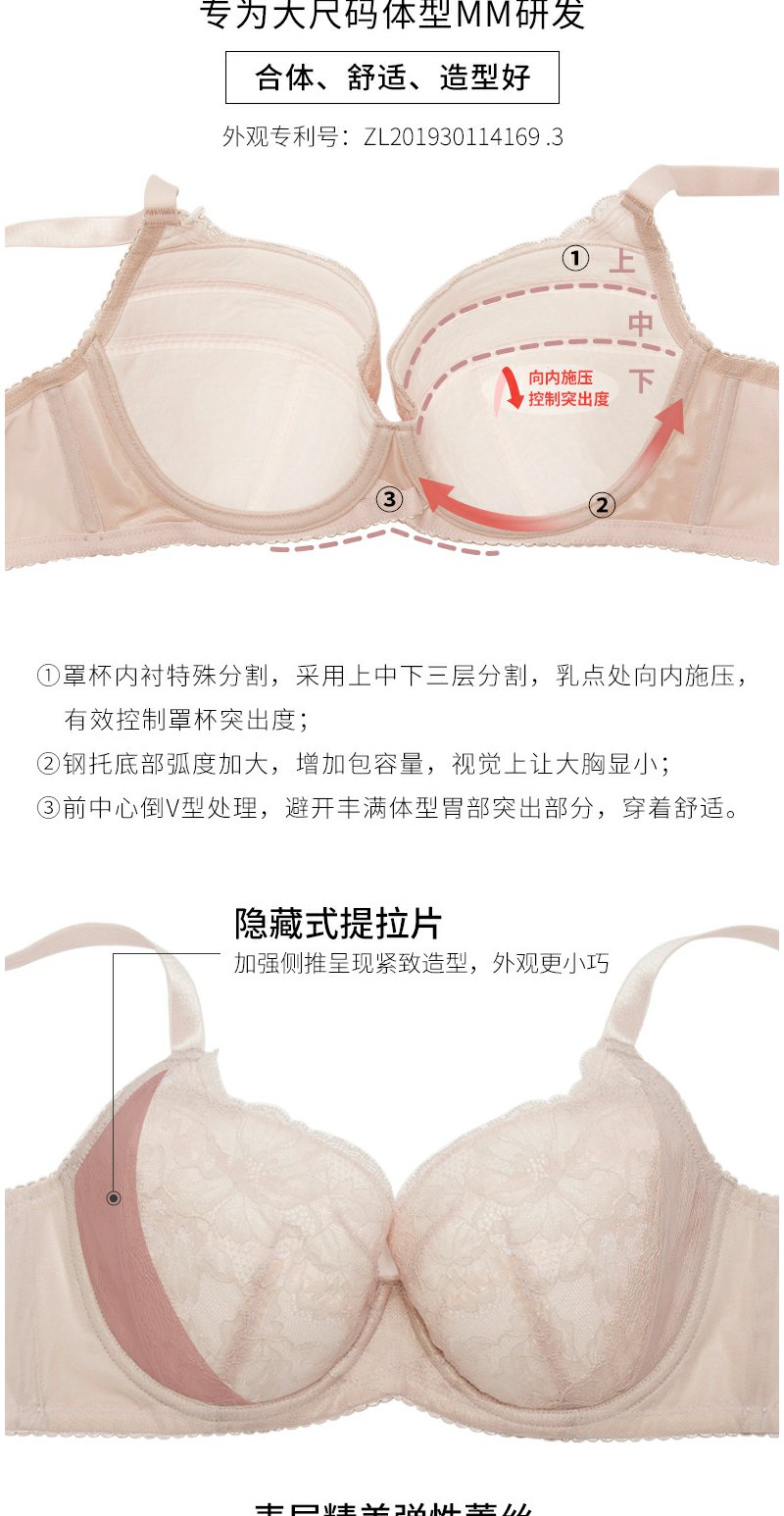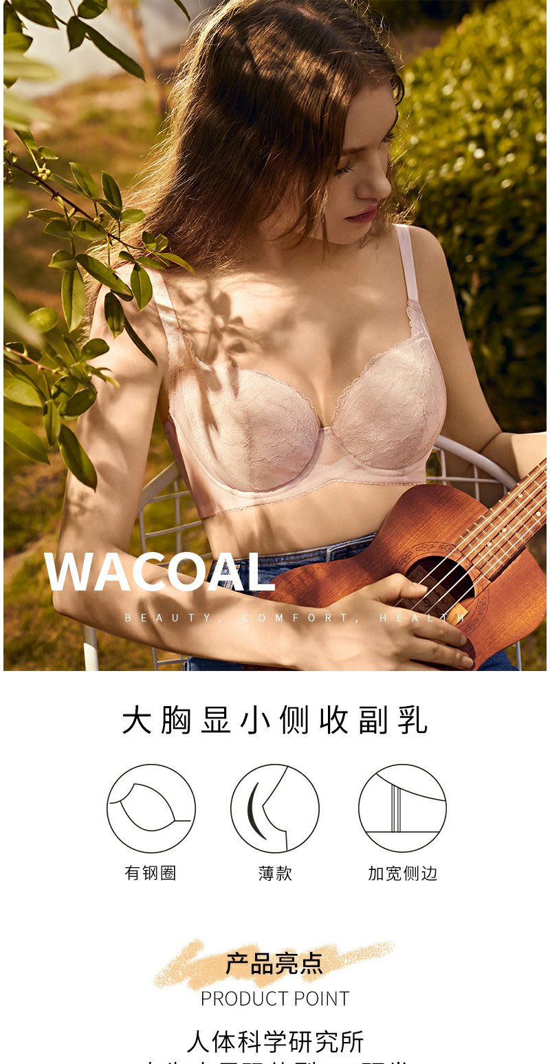 【Wacoal华歌尔】B4F | 薄款大胸显小侧收副乳大杯胸罩女超大码文胸WB8612原价499