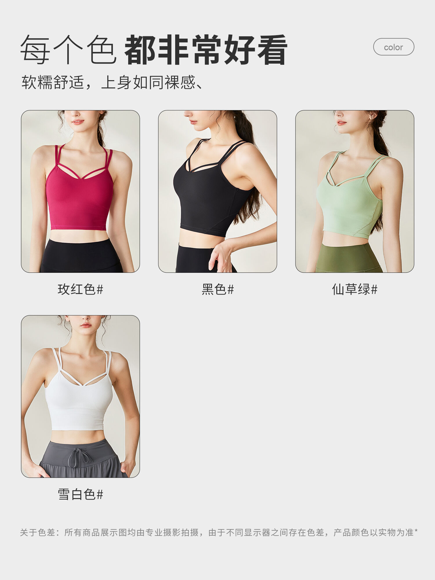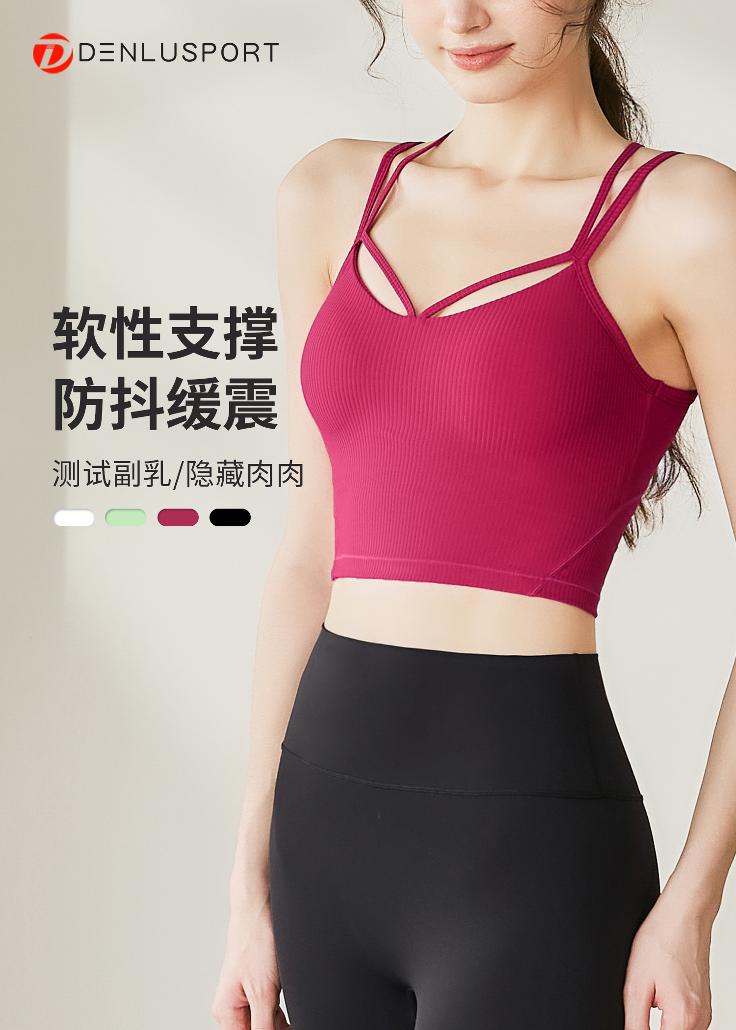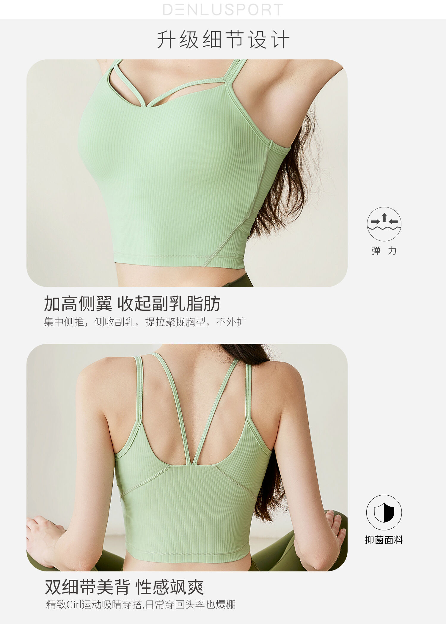 DENLUS瑜伽运动内衣带胸垫定制细螺纹裸感瑜伽服背心DY66176#