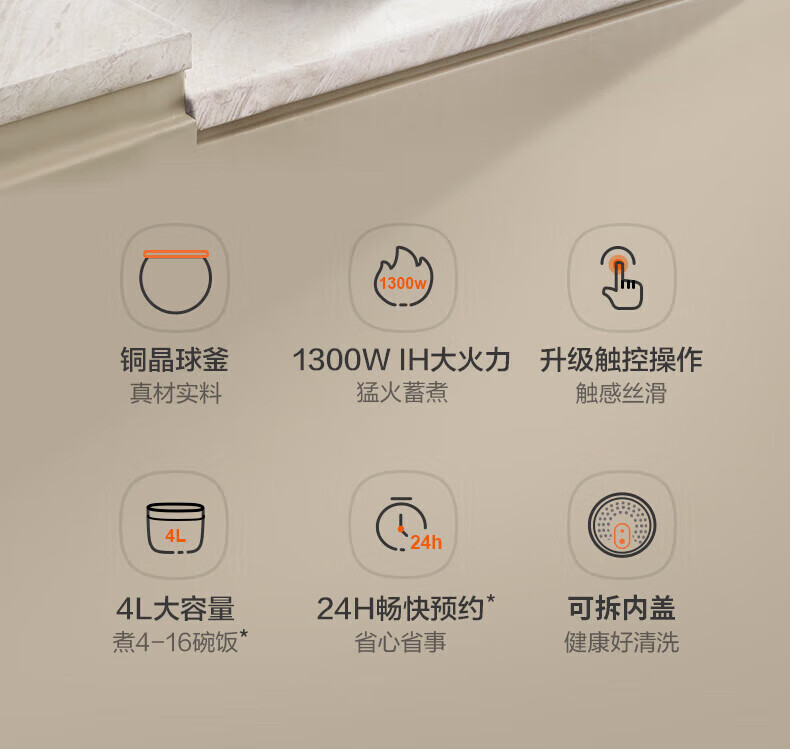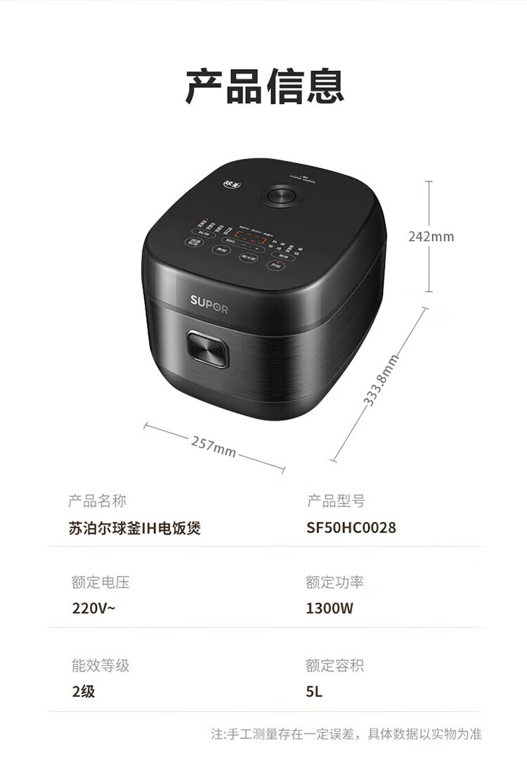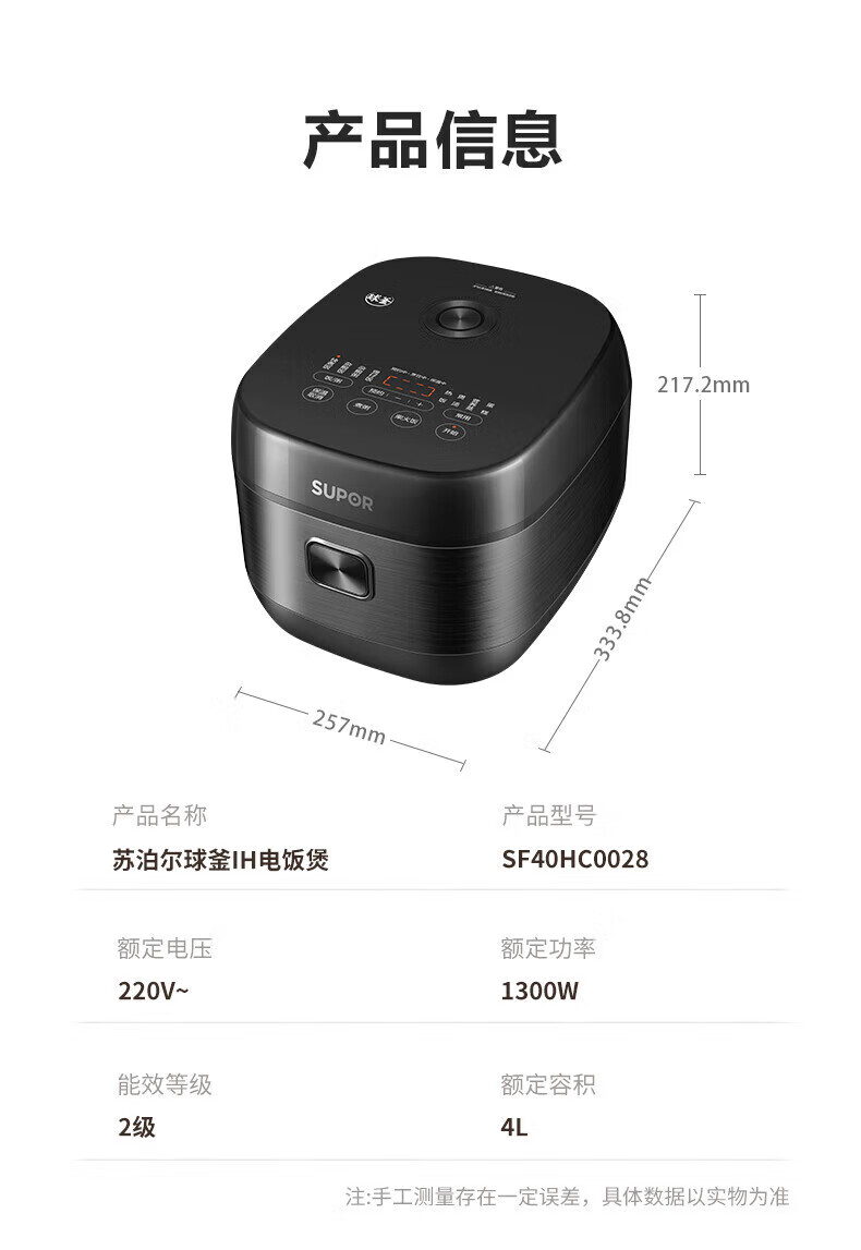 苏泊尔(SUPOR)电饭煲铜晶球釜内胆 1300W IH加热 触控操作 家用智能多功能电饭锅煮饭锅SF40HC0028 适用3-8人