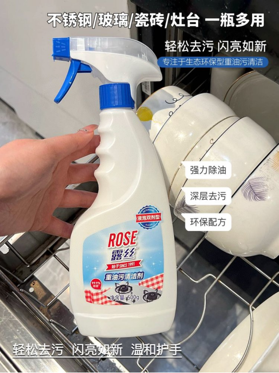 🌻 【ROSE露丝-油污清洁剂】顽固油污 一招解决 采用温和溶油技术💥 强效去污 深层清洁🧹 软化瓦解油烟机 煤气灶等处的粘腻油垢、油渍和油层‼️无需拆洗 ⚡️配方温和 轻松呵护厨具!!