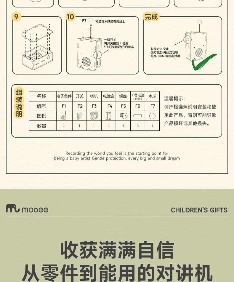 【六一好礼】mobee儿童对讲机DIY套装 儿童节礼物 手工DIY对讲机
