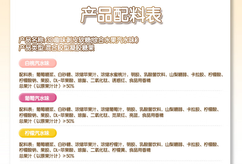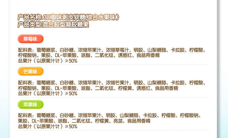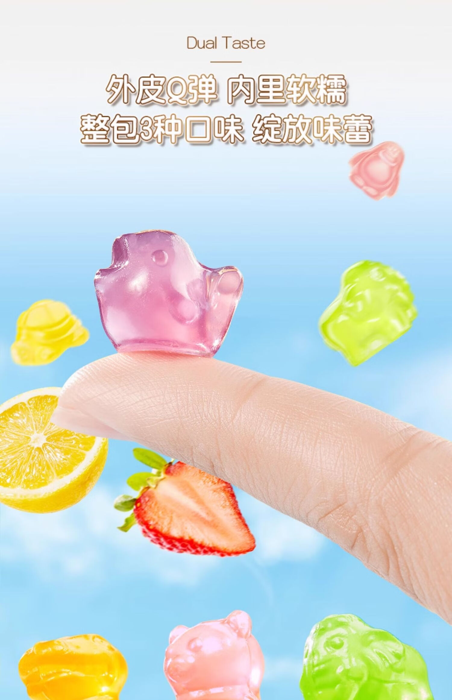 新期天果汁100mini棒棒软糖(白桃味+卡曼橘味)60g/袋