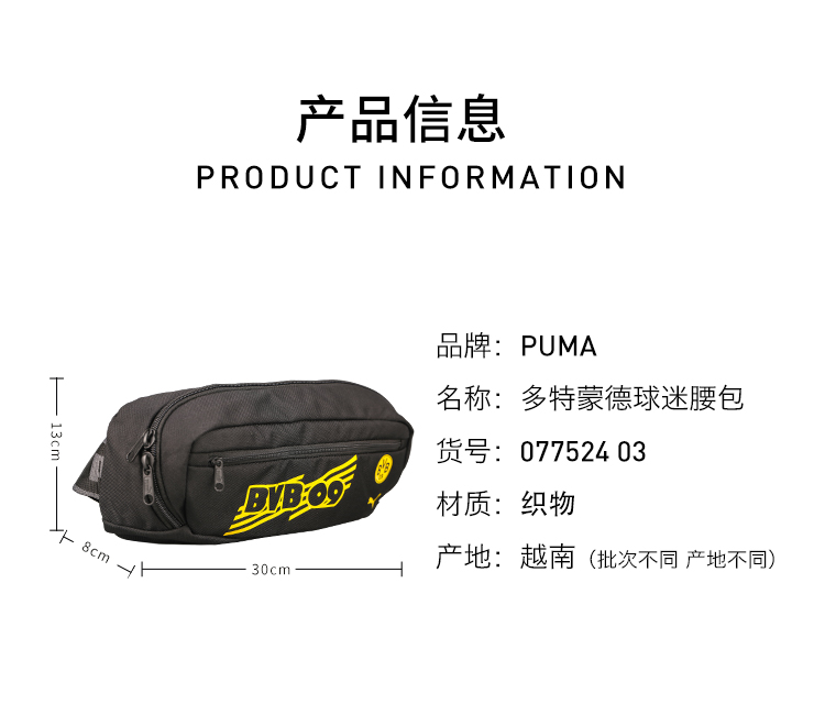 正品PUMA/彪马多特蒙德足球运动训练收纳腰包男077524-03