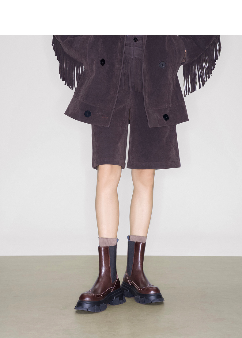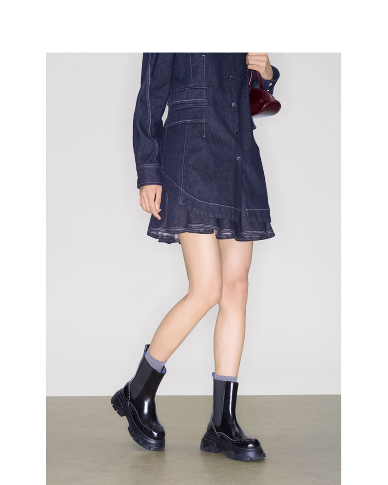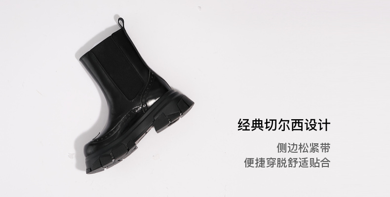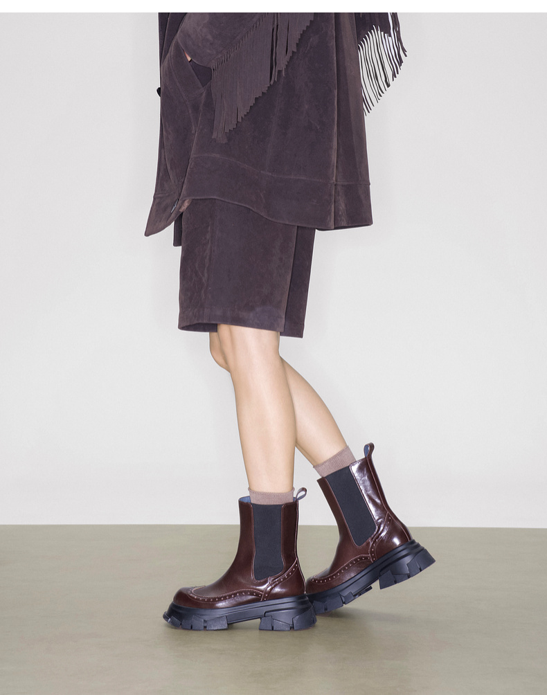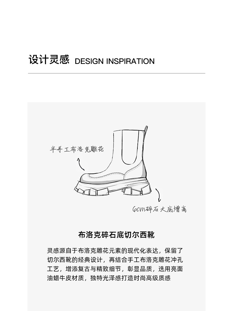 lost in echo2025早秋新款布洛克碎石底牛皮厚底增高短靴切尔西靴