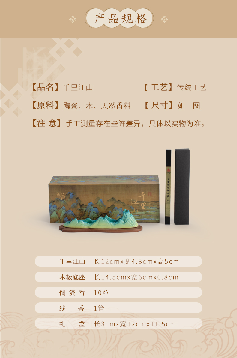 | 【品名】上新了故宫·千里江山熏香套装 【规格】 【材质】陶瓷 【产地】福建 【发货地】福建 【发货快递】邮政、中通、极兔 【不发货区域】新疆,西藏,青海,内蒙古,宁夏,甘肃,港澳台地区不发 【加运费区域】北京+3元/套 【发货时效】72小时,节假日顺延 |