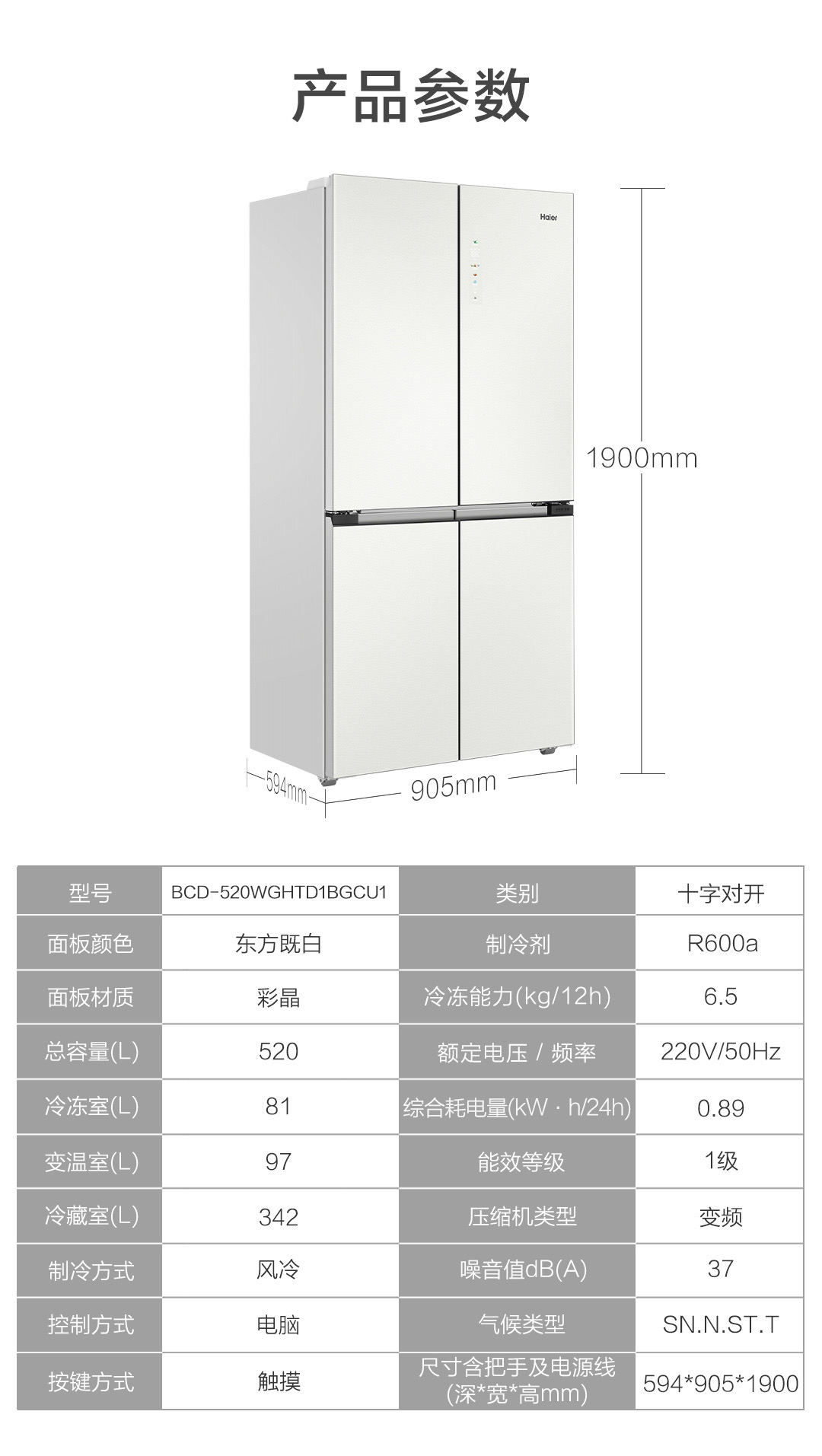 海尔(Haier)冰箱 BCD-520WGHTD1BGCU1