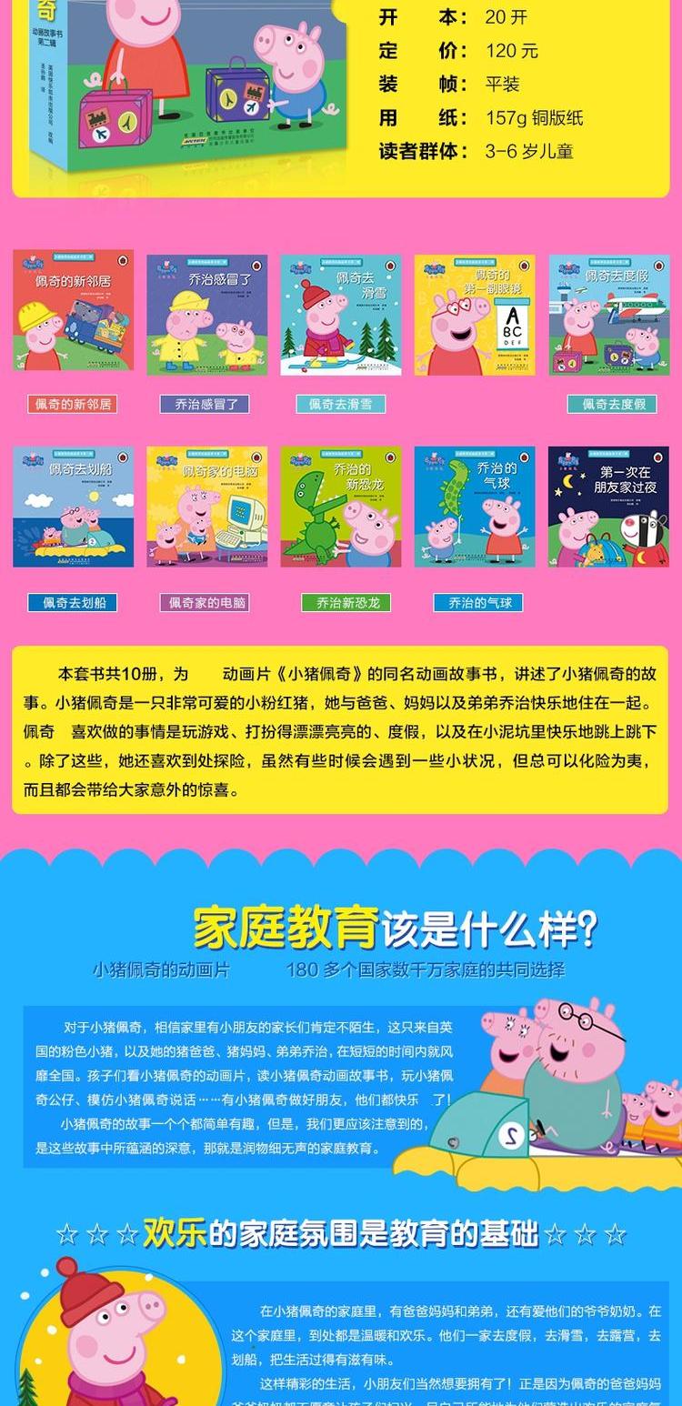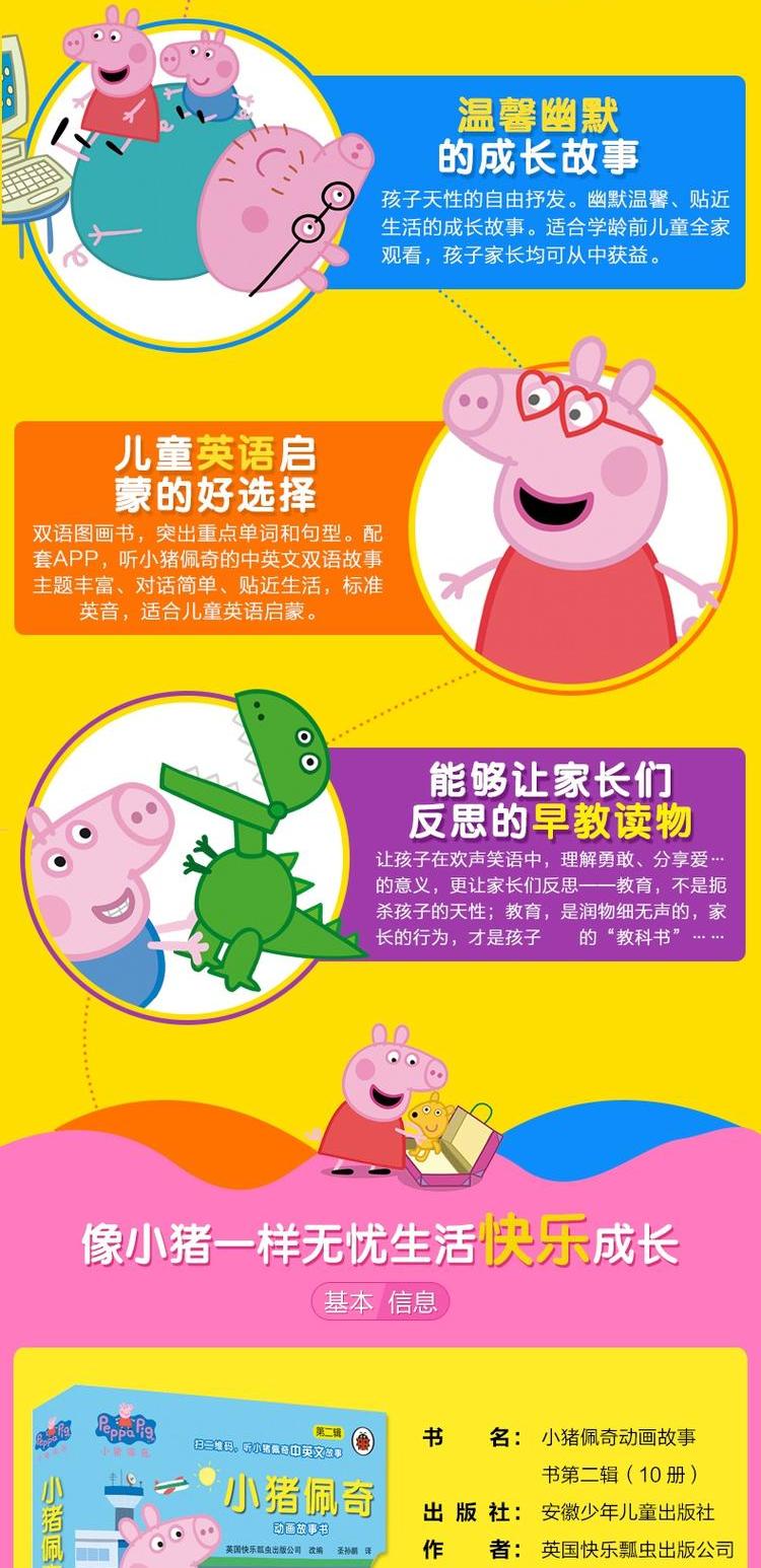 【有声伴读】小猪佩奇书绘本2辑全套10册动画故事书英文主题图书0-3-5岁幼儿园儿童3-6周岁中英文宝宝的小猪佩琪书婴幼儿早教读物