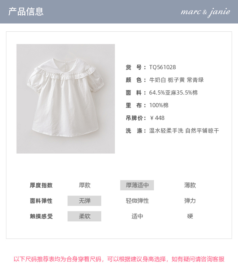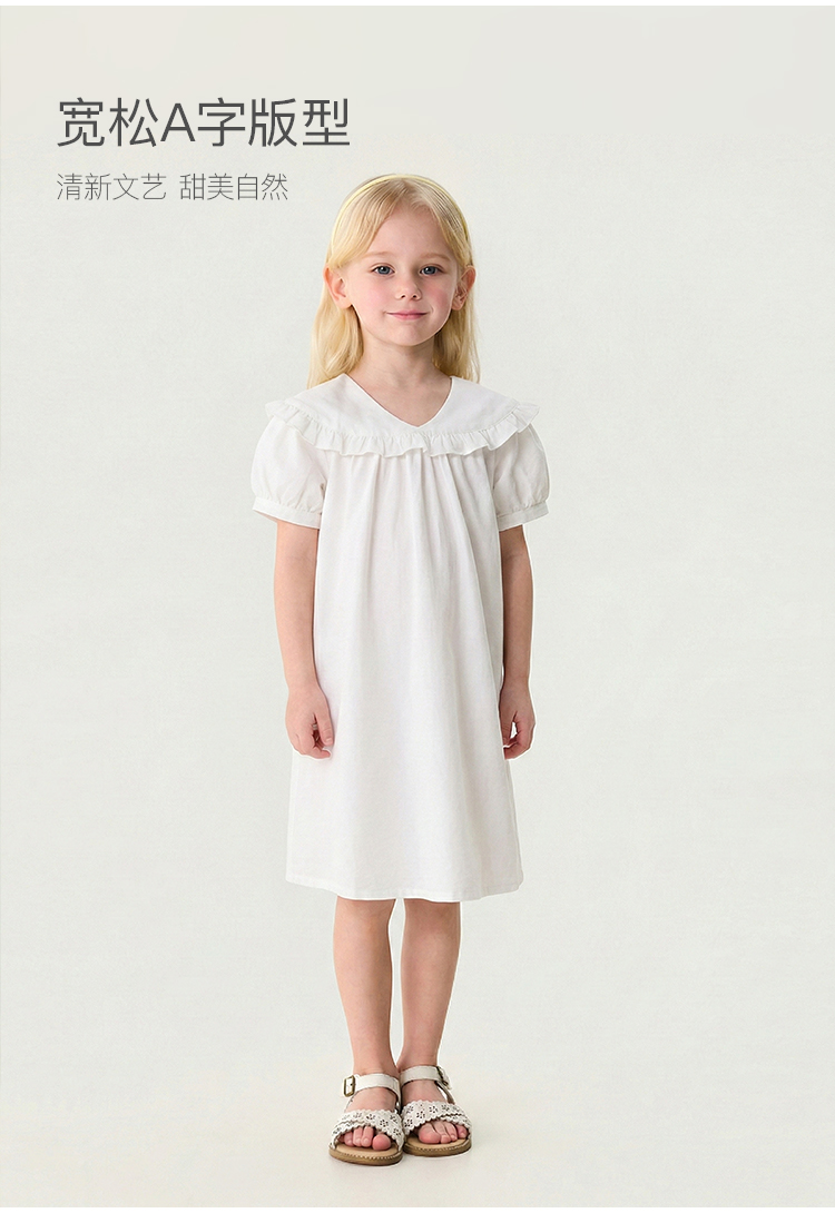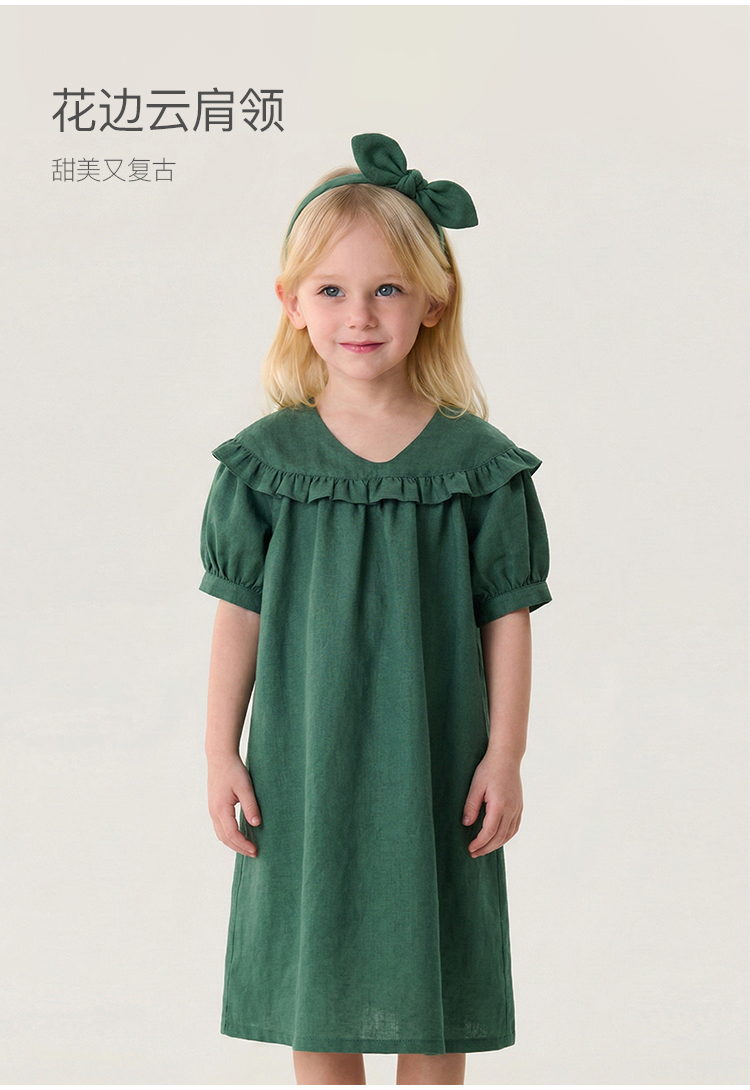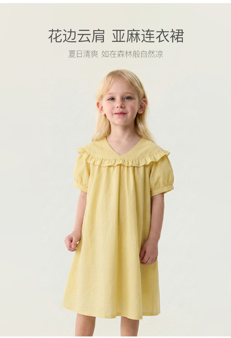 马克珍妮花边云肩女童亚麻连衣裙2026年夏装新款561028